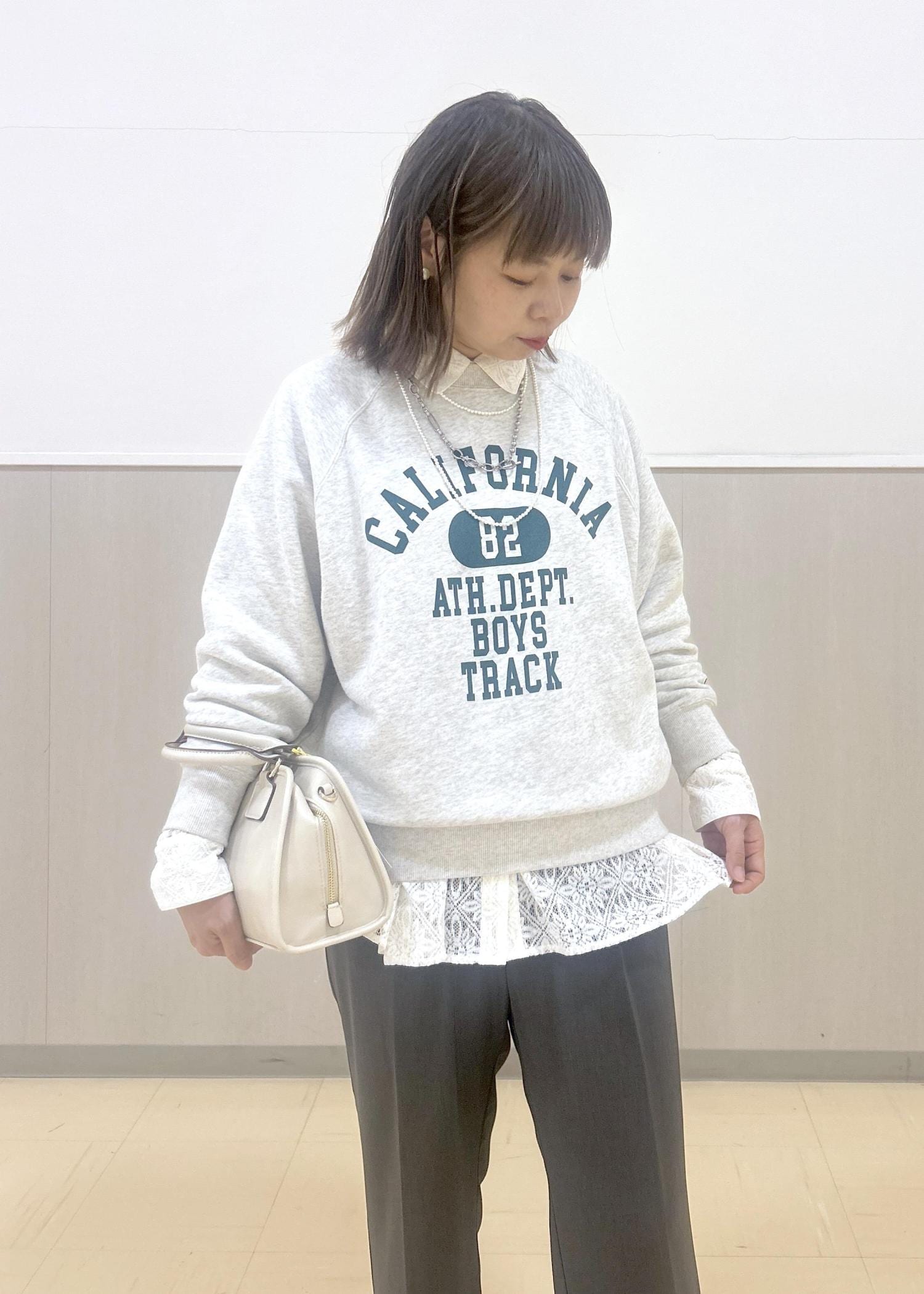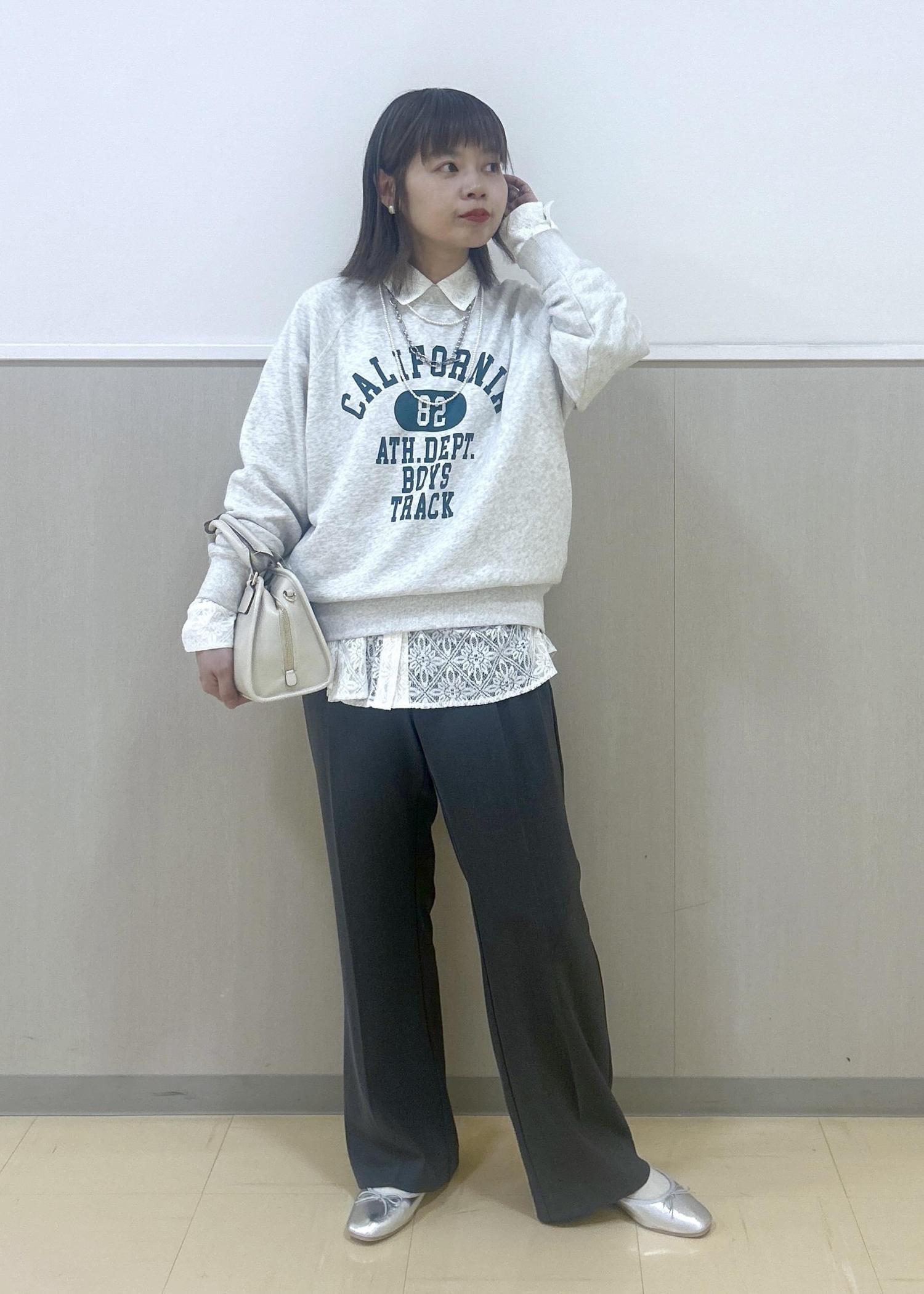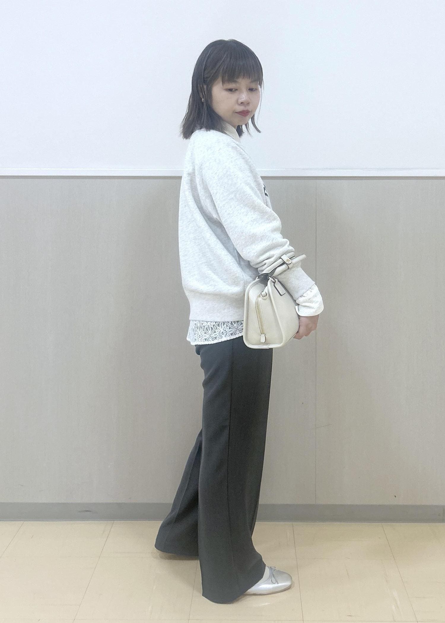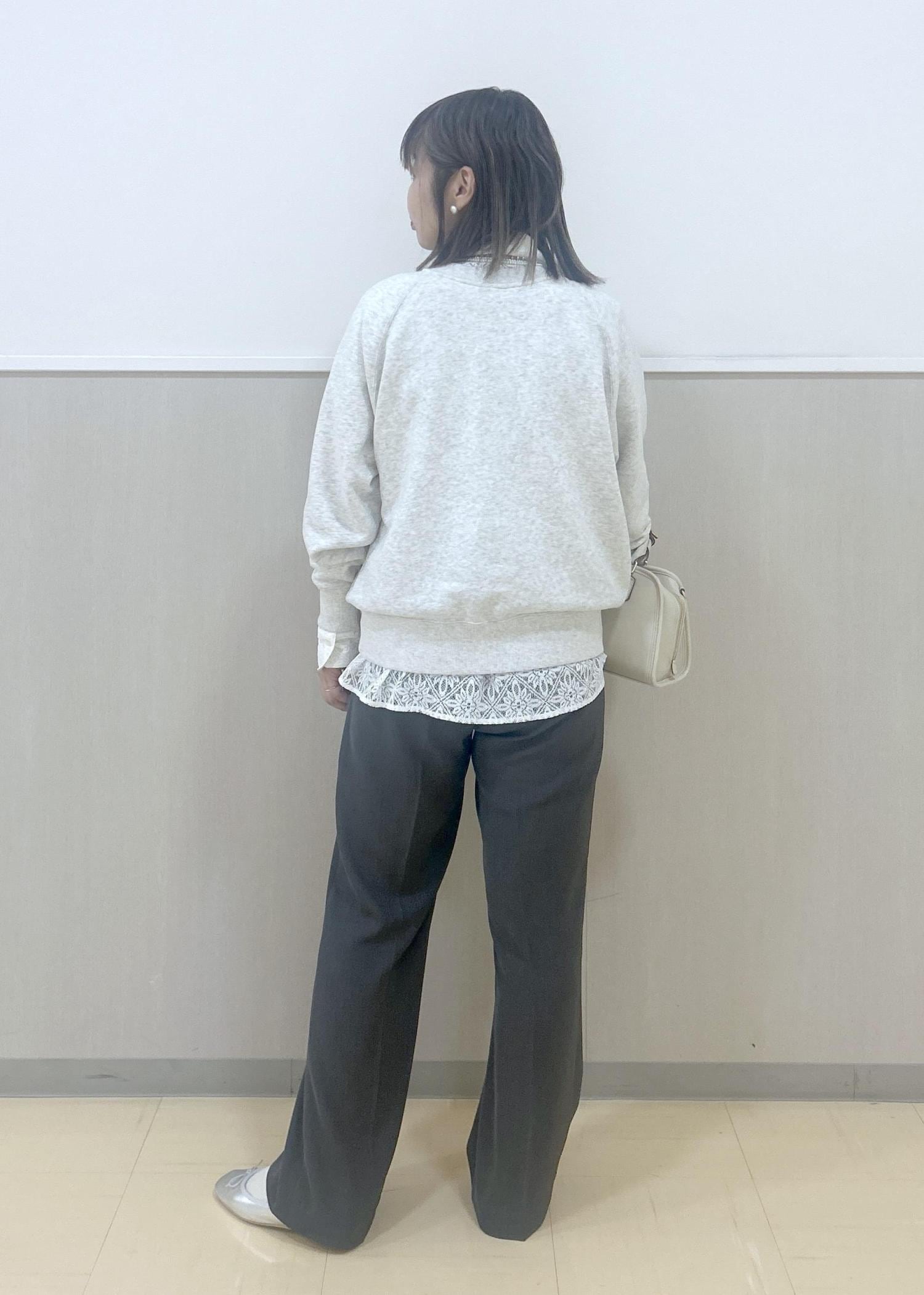 楽なスウェットと楽なパンツですが、きちんと感があるコーデにしました♪