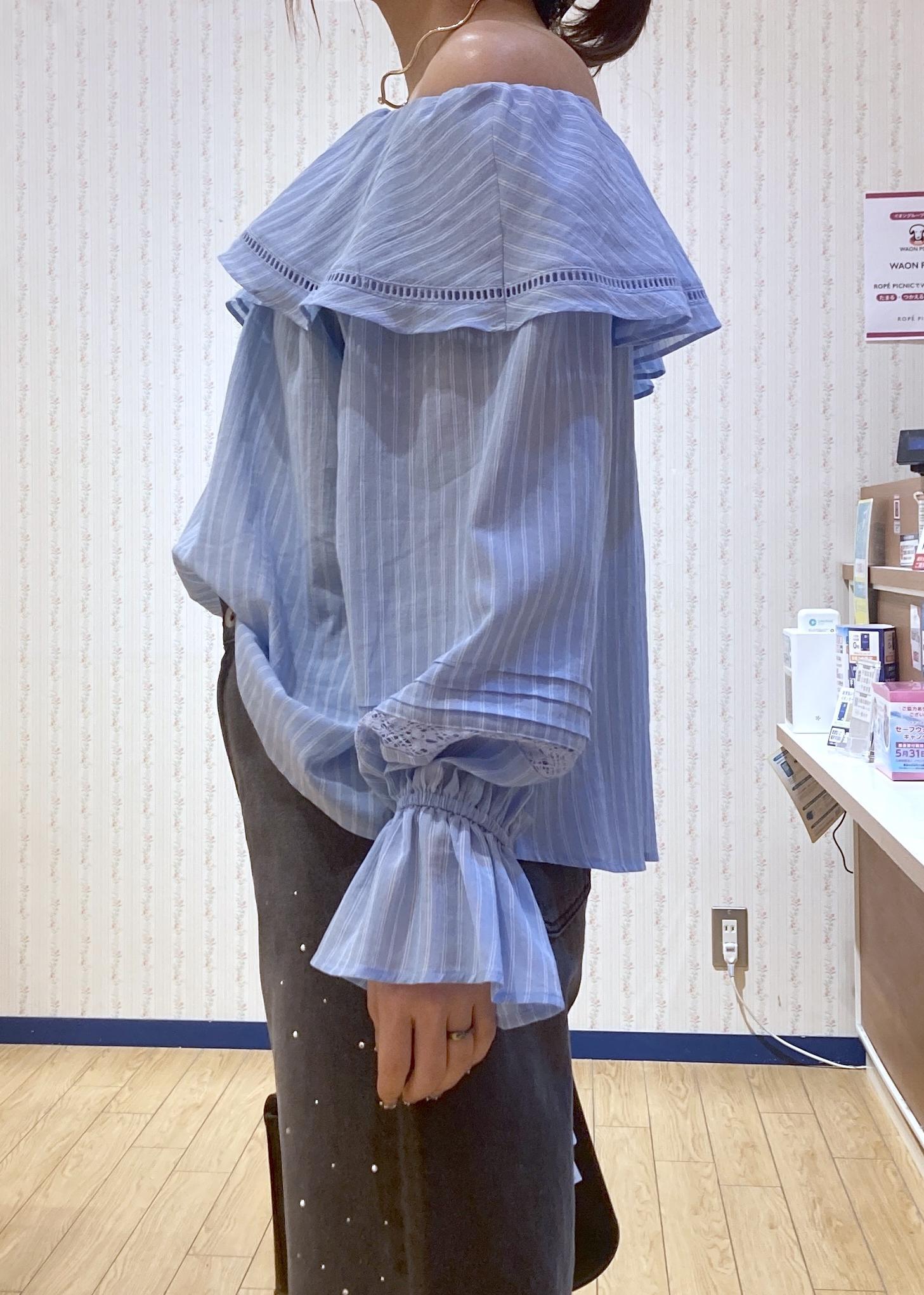 広めに開いた首元にはゴムが入っているのでオフショルにしても使えます!