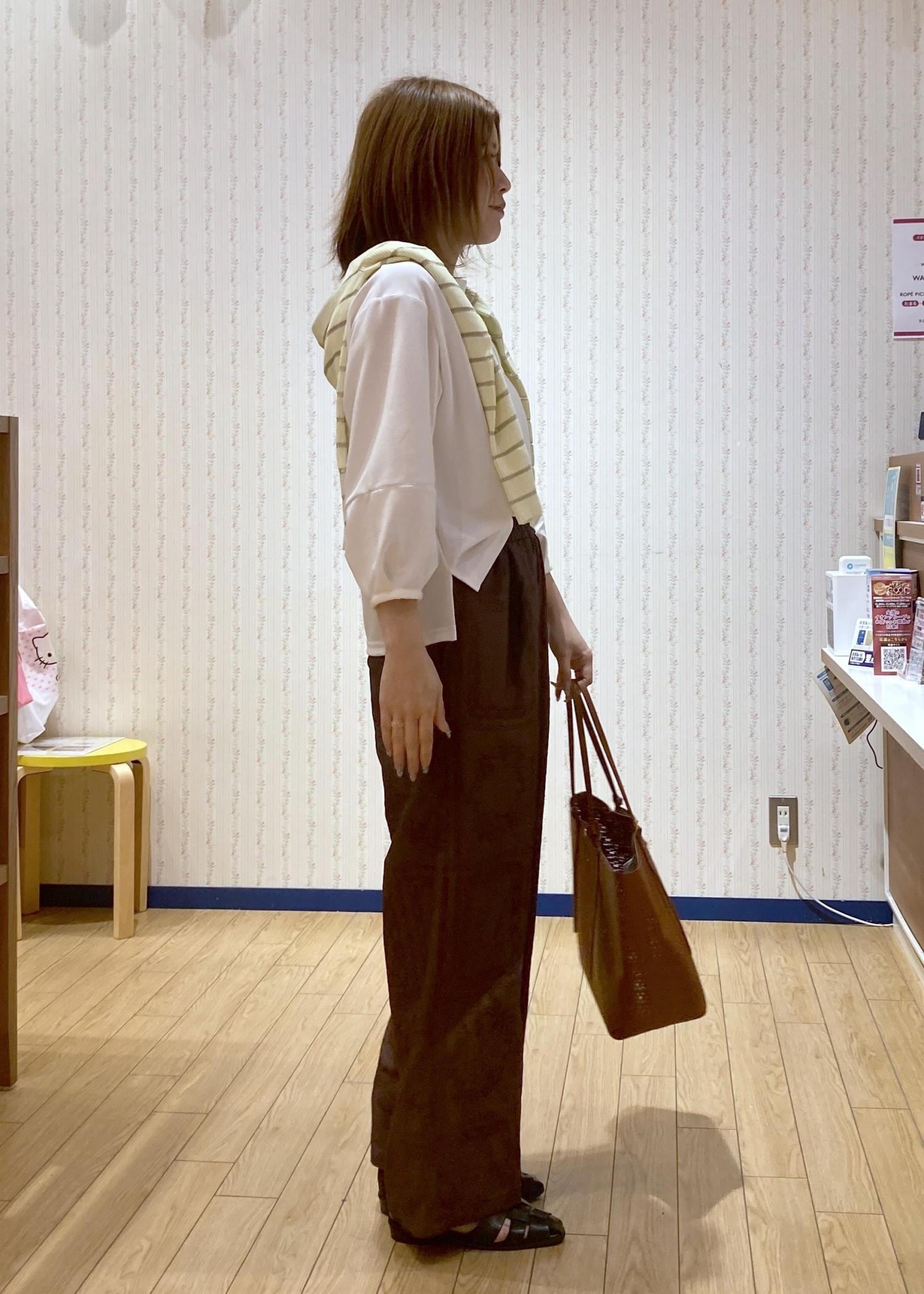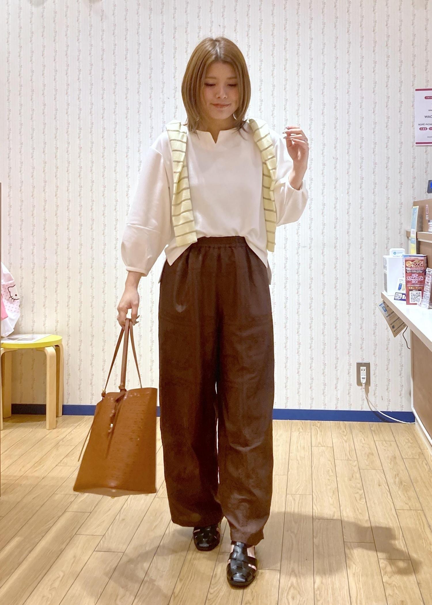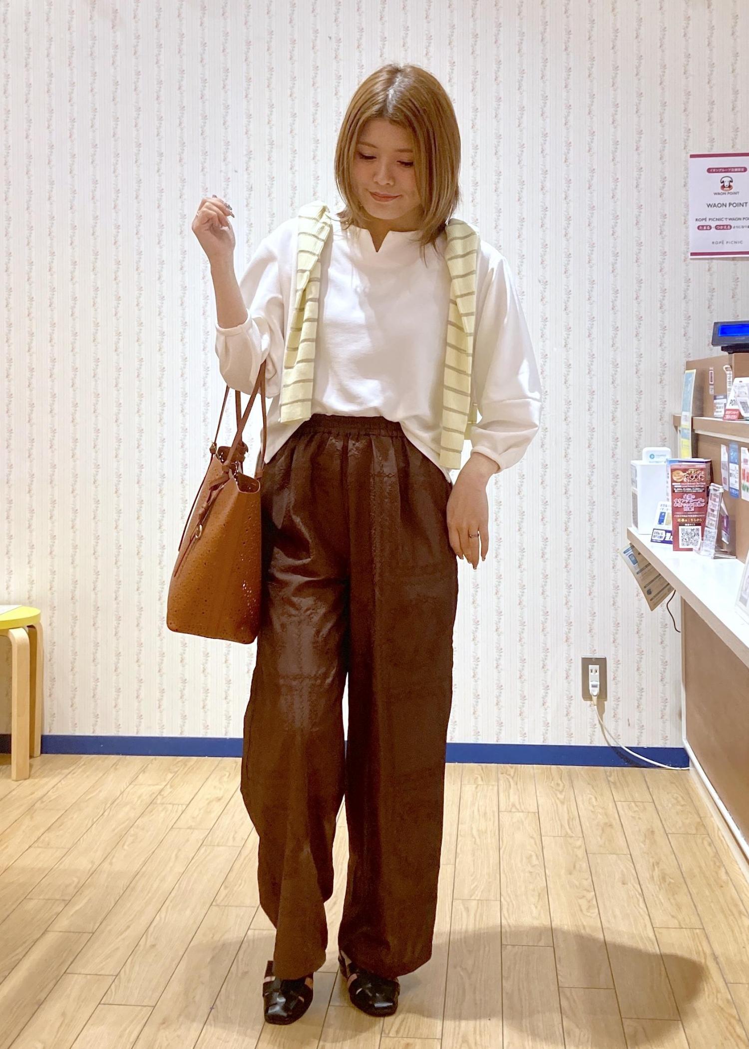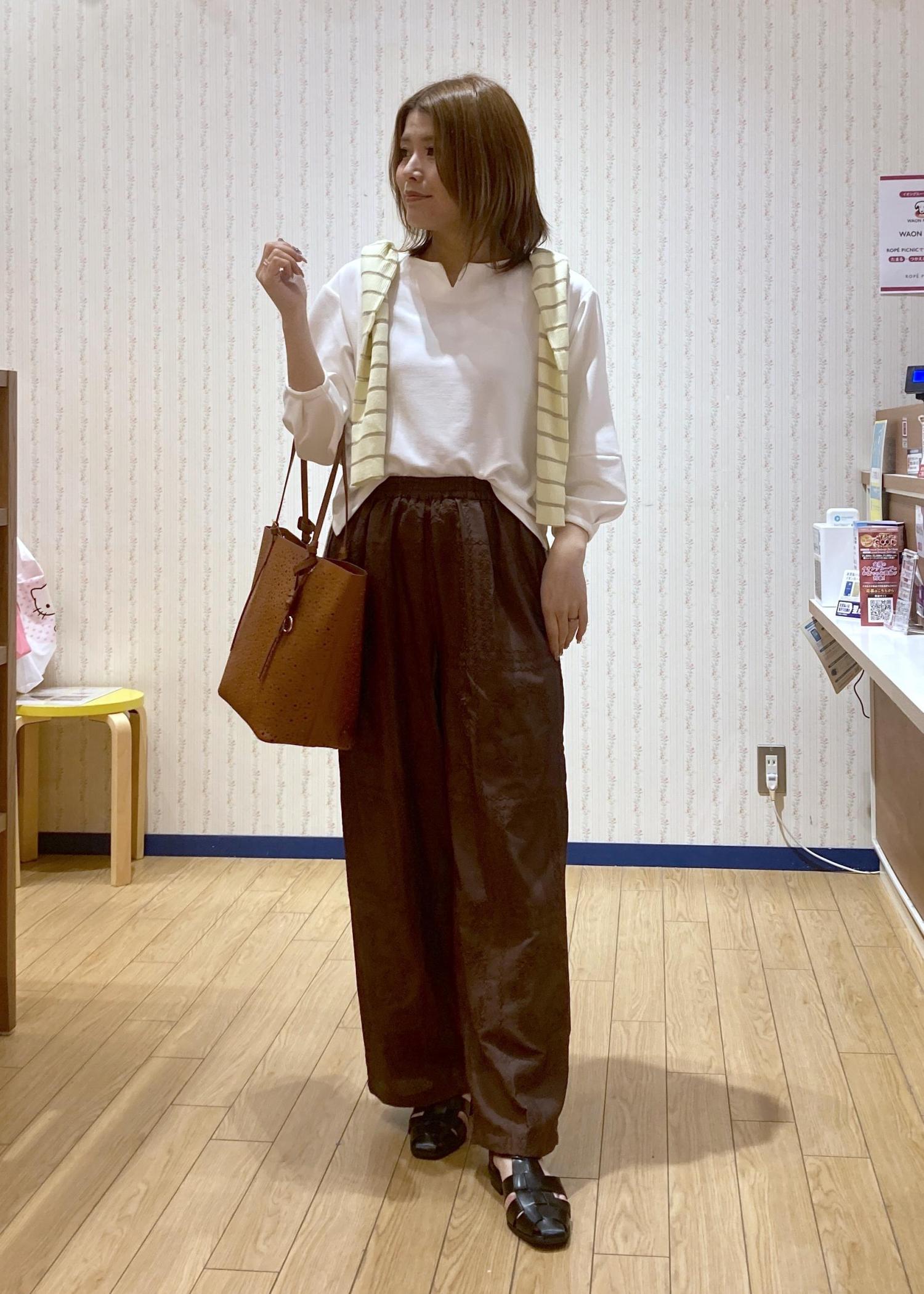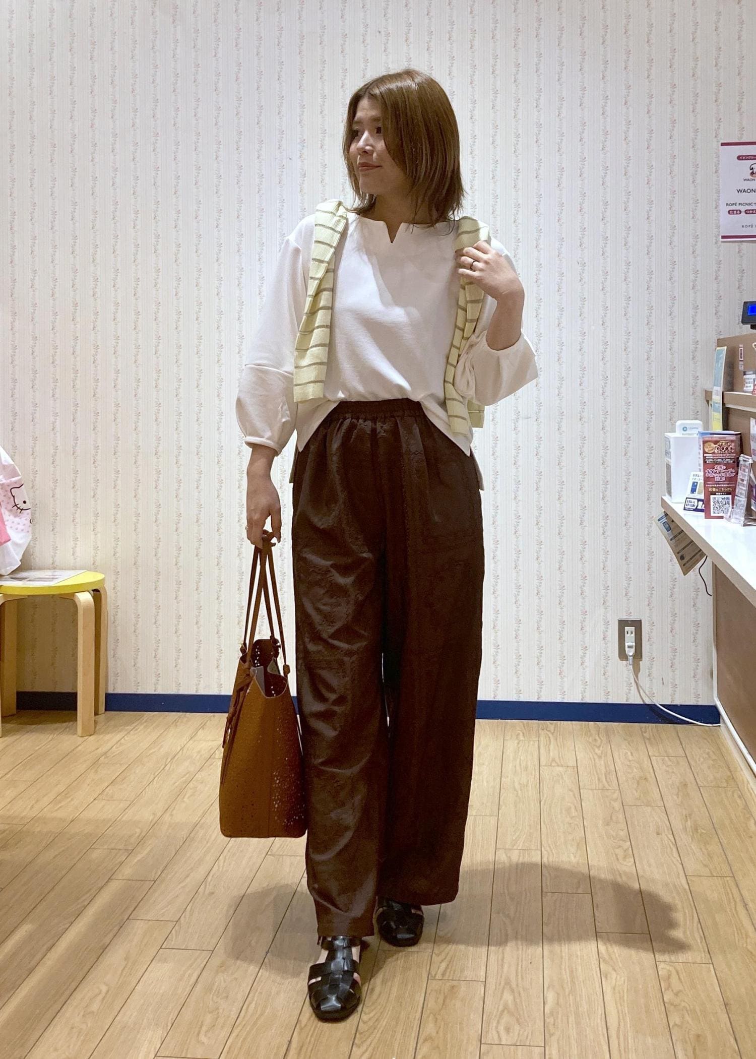 ホワイト×ブラウン系でシンプルにまとめた大人カジュアルコーディネートです!