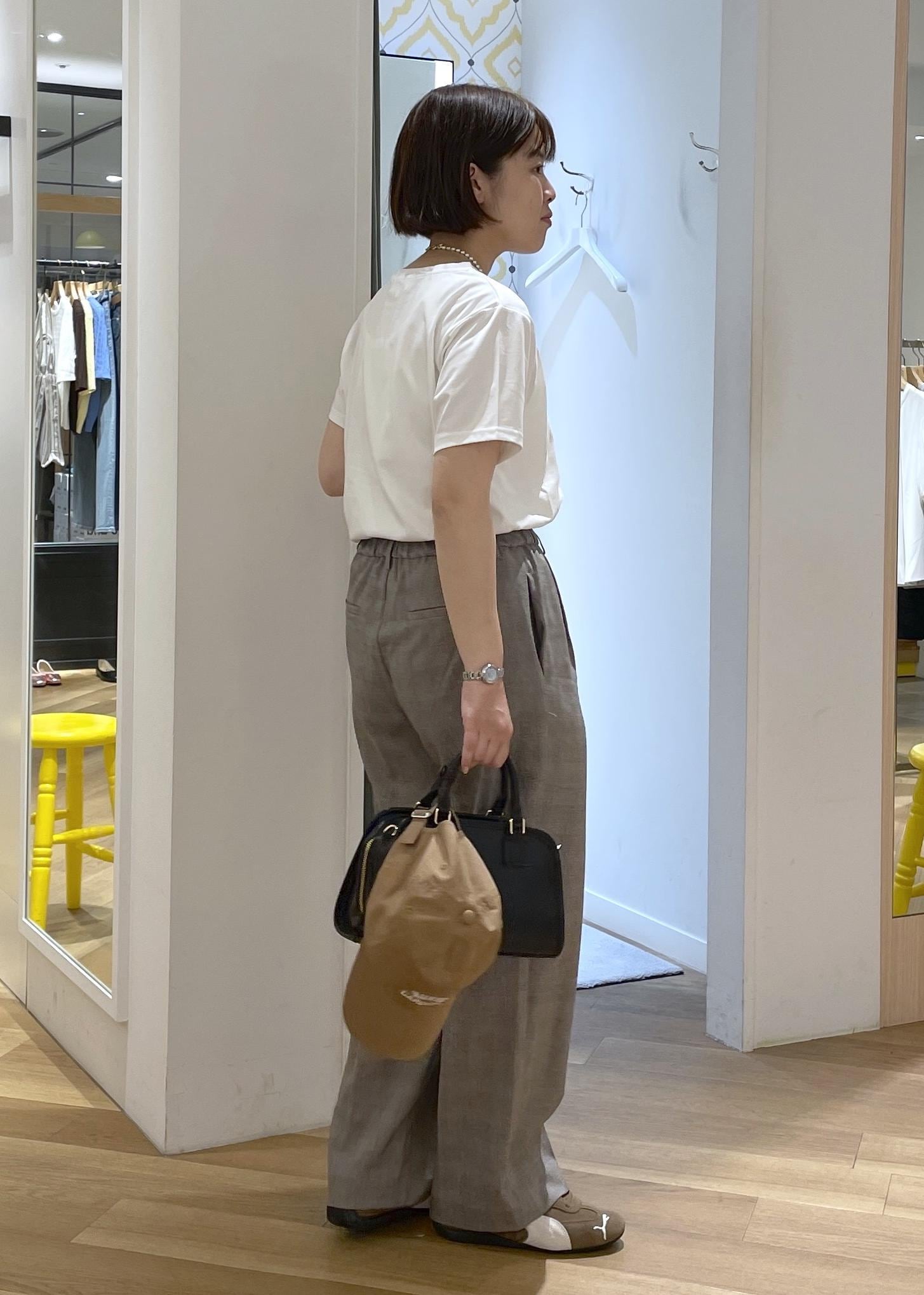 足元はスニーカー、バッグにキャップを合わせてスポーティーな印象でまとめました◎