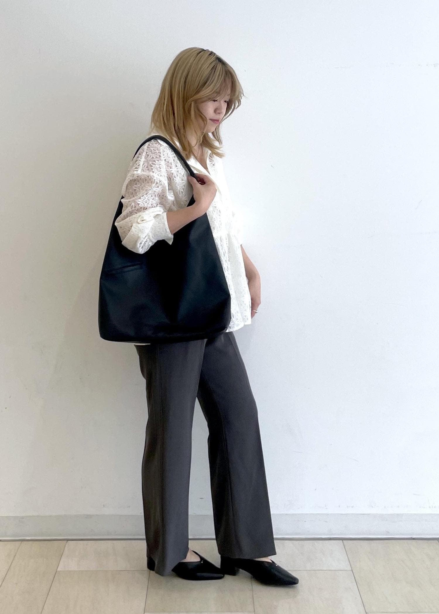 ワンショルダーなので肩にかけやすく、ガバッと開くので、物を出し入れしやすいです◎