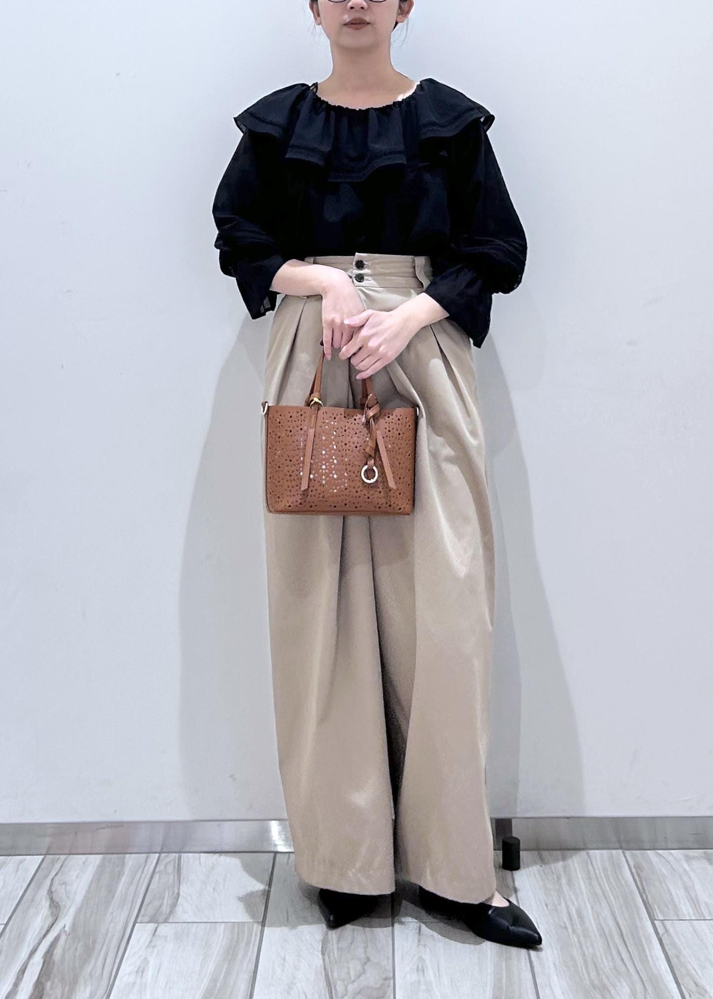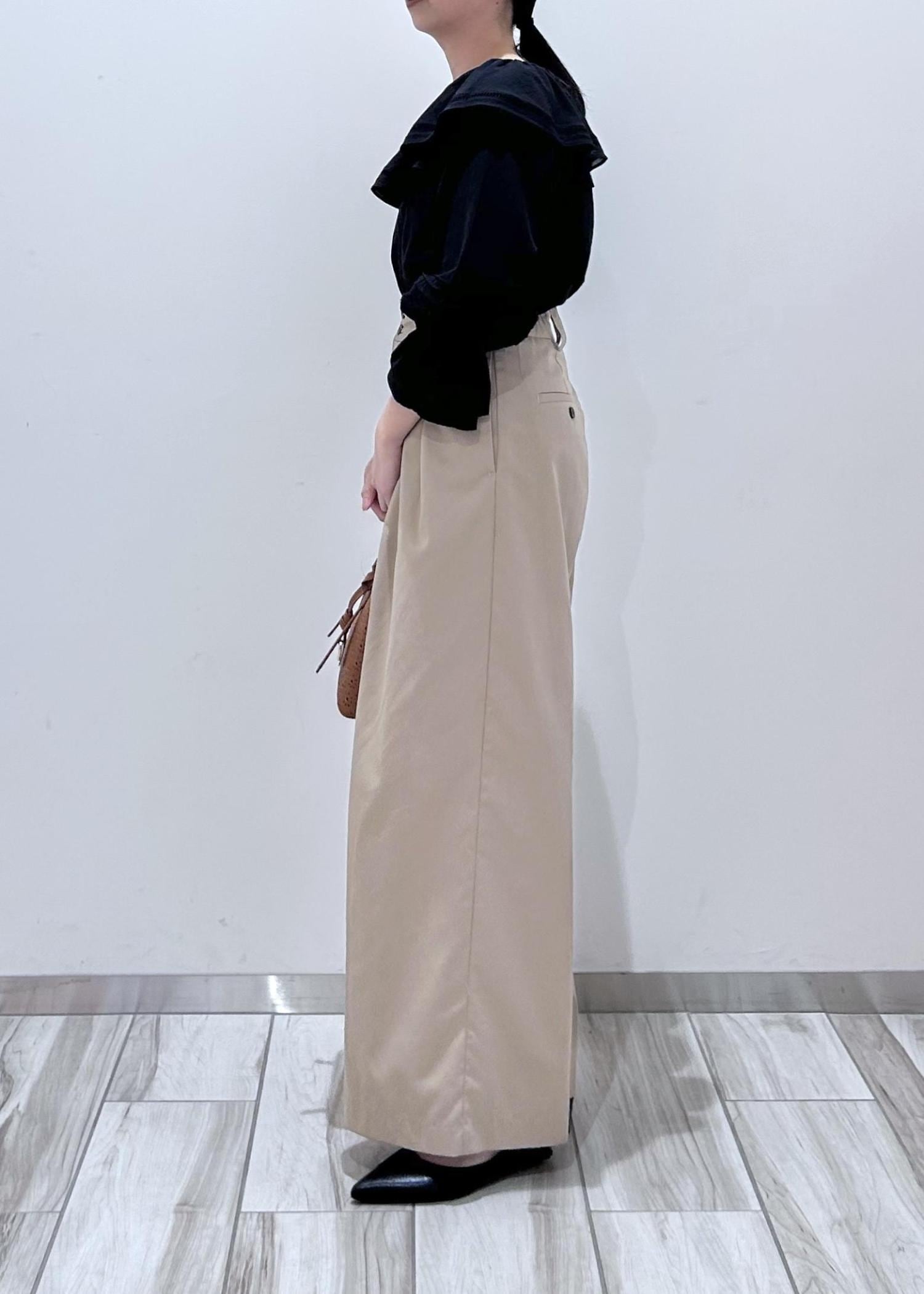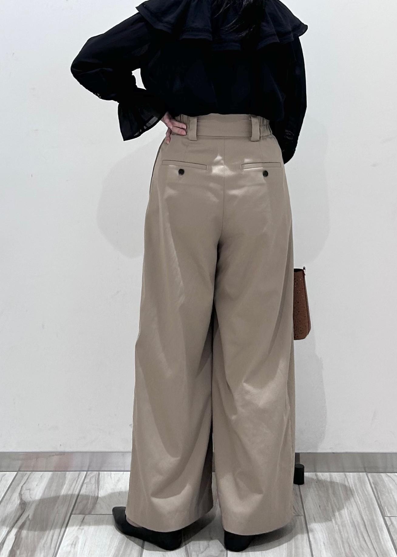 ウエストのタック部分とハイウエストの作りが脚長効果抜群のパンツです!