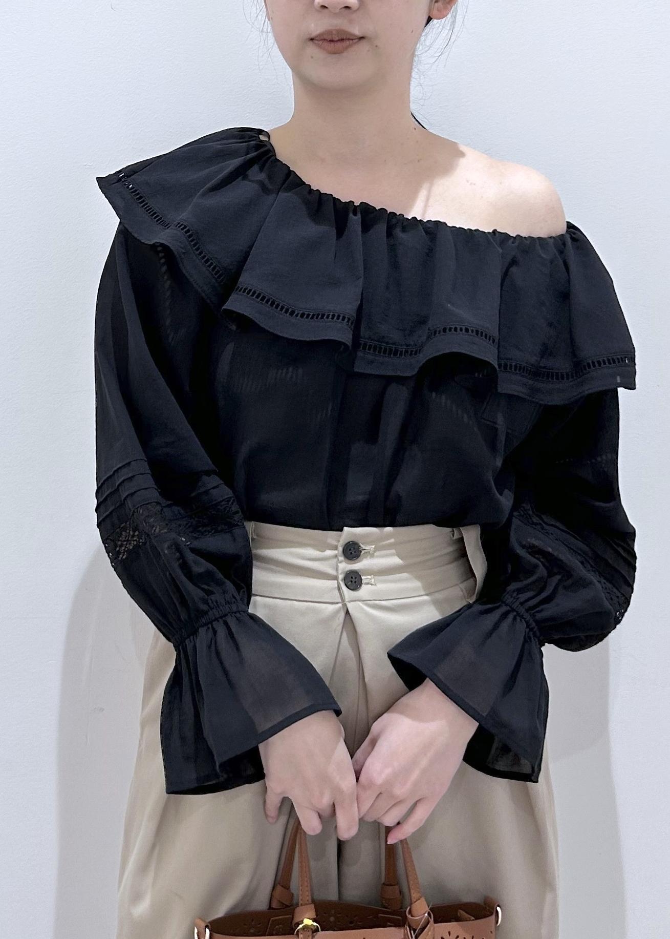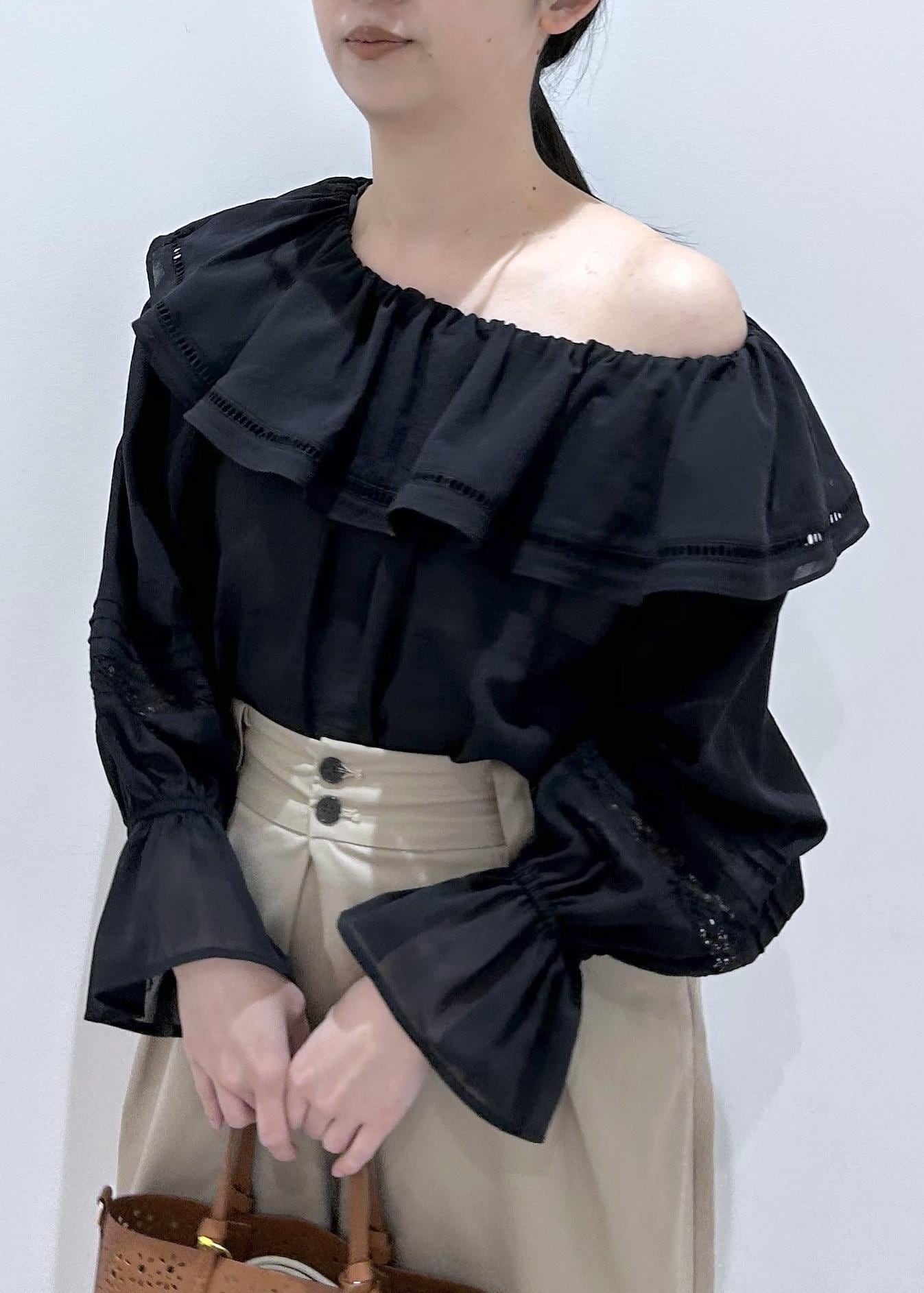 ROPÉ PICNICお着軽シャツシリーズ レース使い2WAYオフショルシアーブラウス/接触冷感・通気性ブラック / F¥5,995レビューオフショルにもなるブラウス
