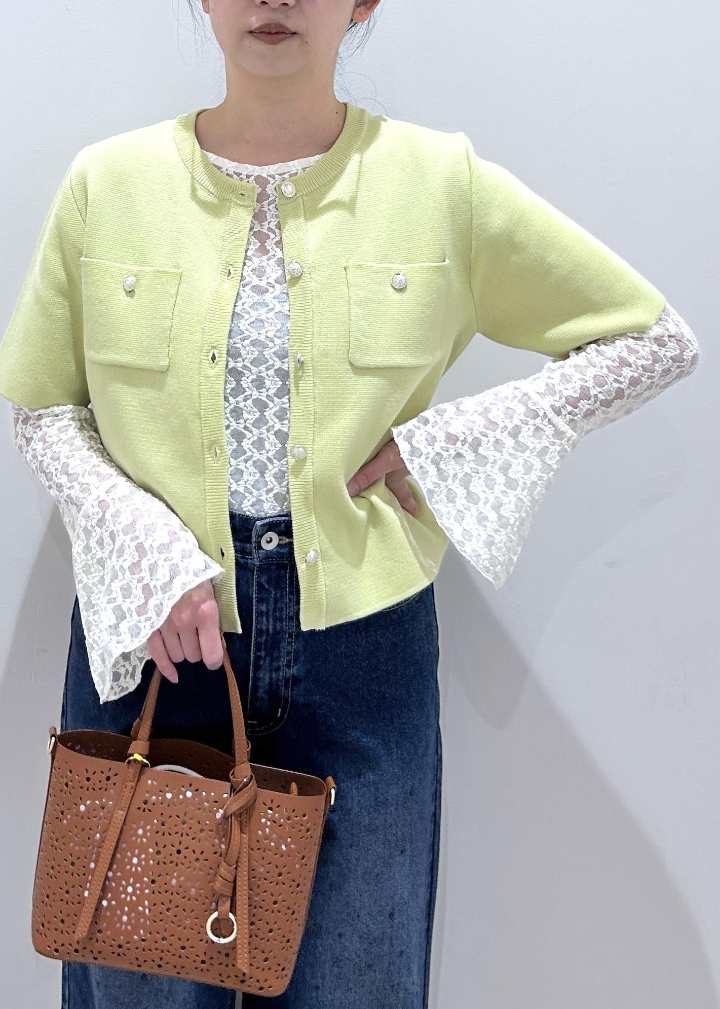 ROPÉ PICNICミラノリブ金ボタン半袖カーディガンキミドリ / F¥5,489レビュー腰あたりの長さでちょうどいい着丈感◎