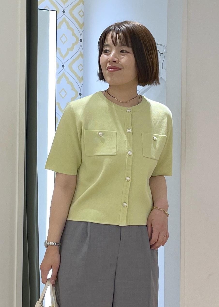 ROPÉ PICNICミラノリブ金ボタン半袖カーディガンキミドリ / F¥5,489レビュー大人気のミラノリブシリーズのハーフスリーブのカーディガンです。柔らかくハリのある生地感で、着心地は良くきれい見えも叶うカーディガンです。着丈はウエストくらいのコンパクトな丈感なのですっきりと合わせて頂けます。