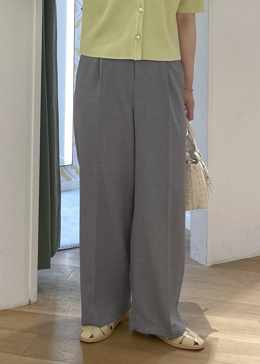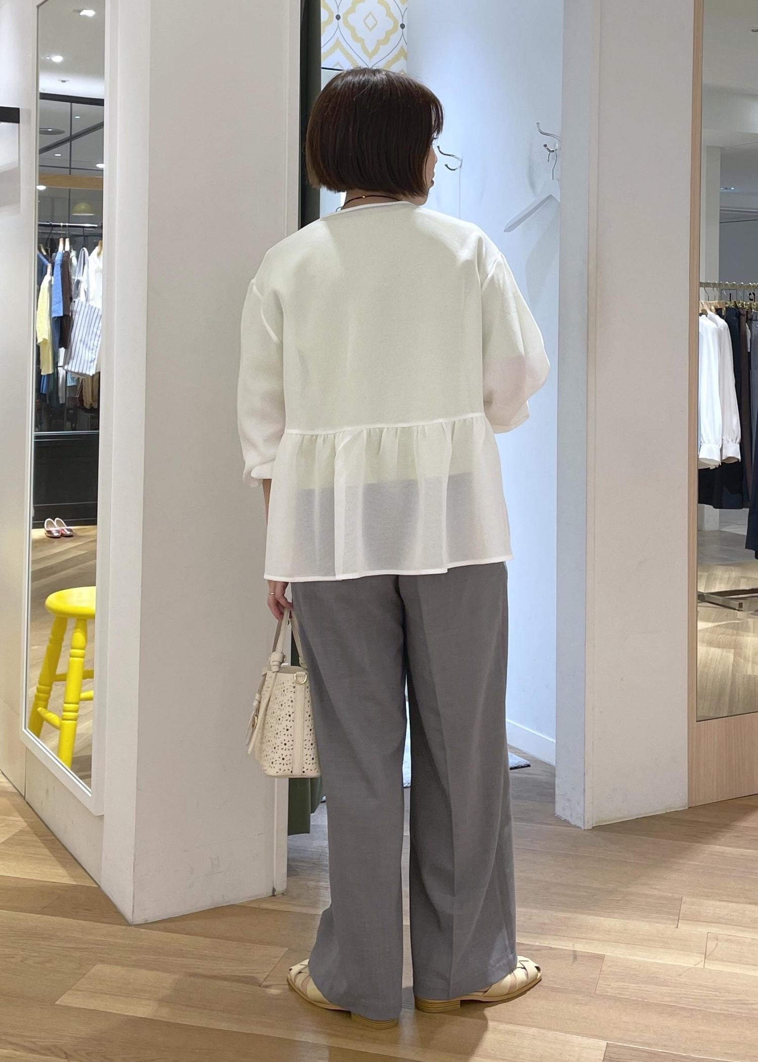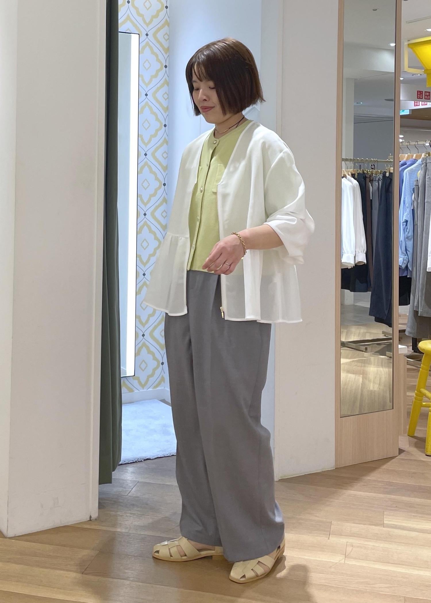 ボトムはグレーのワイドパンツを合わせて、甘過ぎないスマートな印象もプラスしました◎