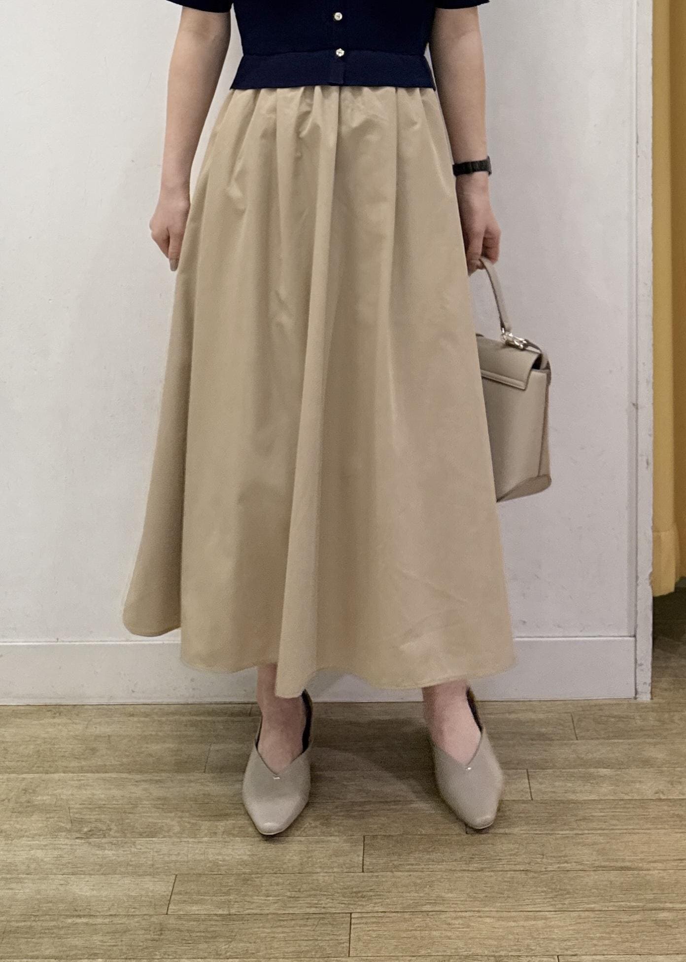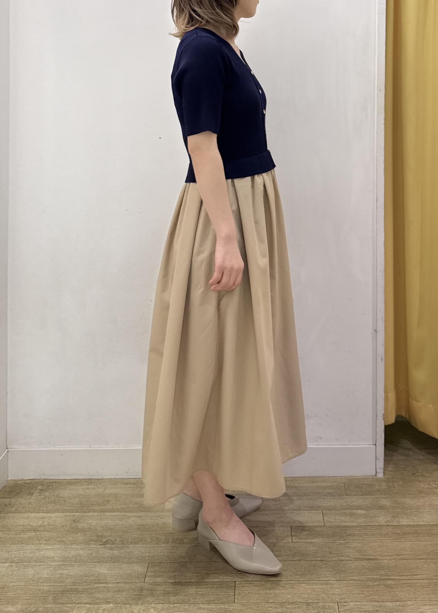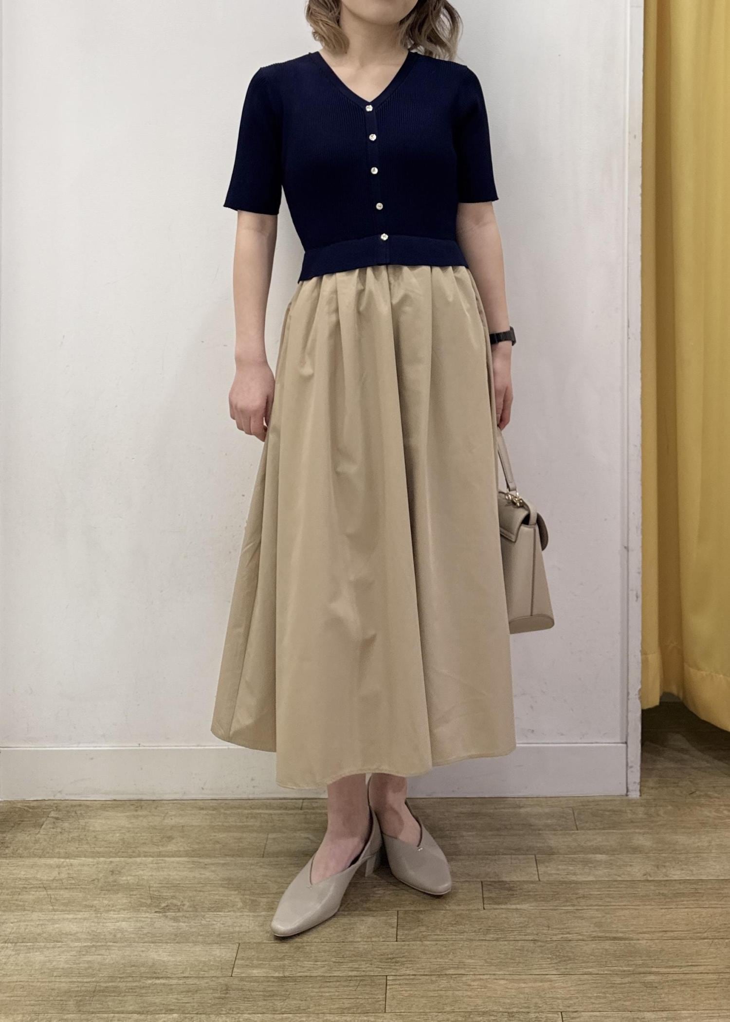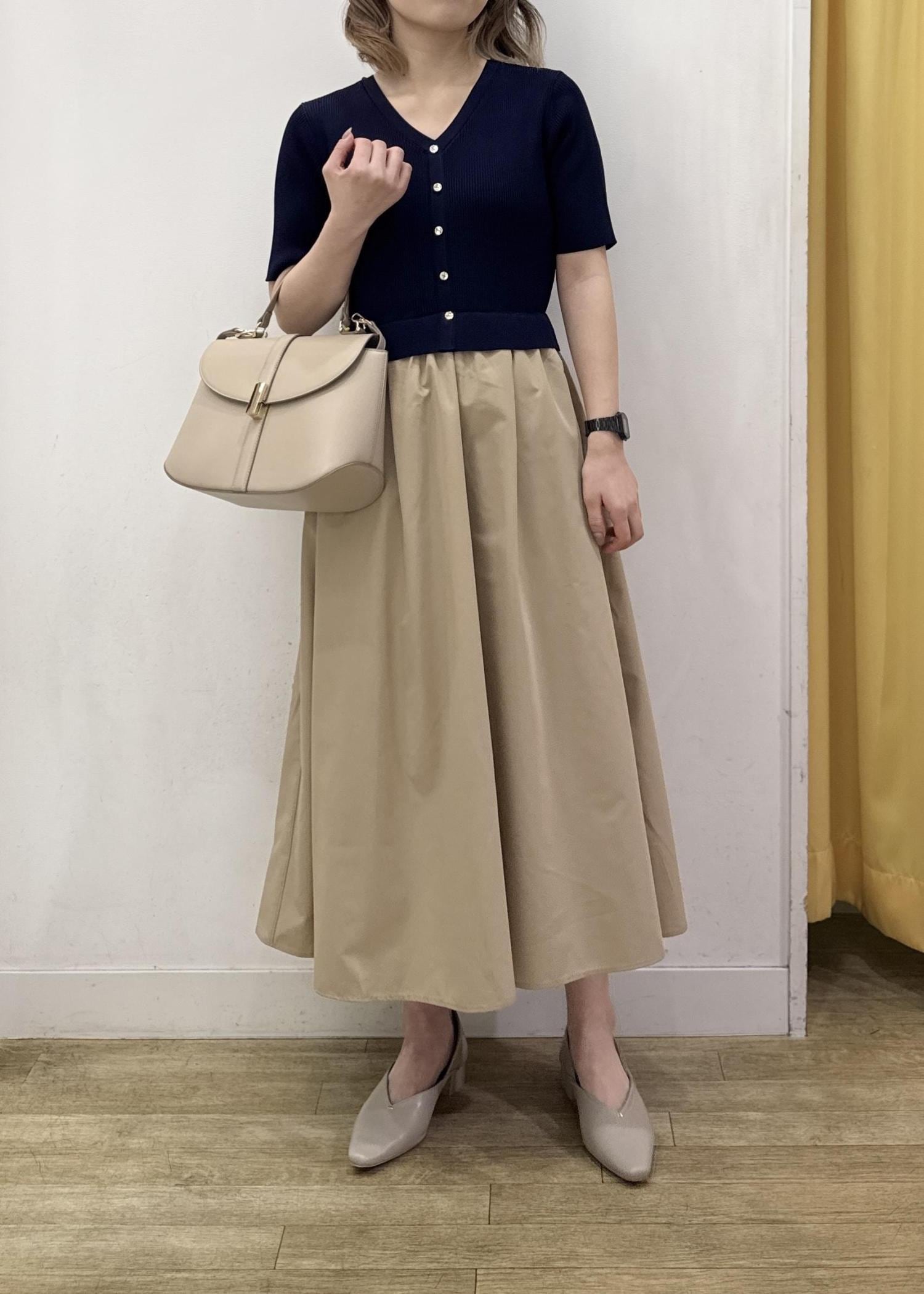 スカート部分がふんわりとフレアなシルエットで、着るだけでメリハリの出せるワンピースになります。