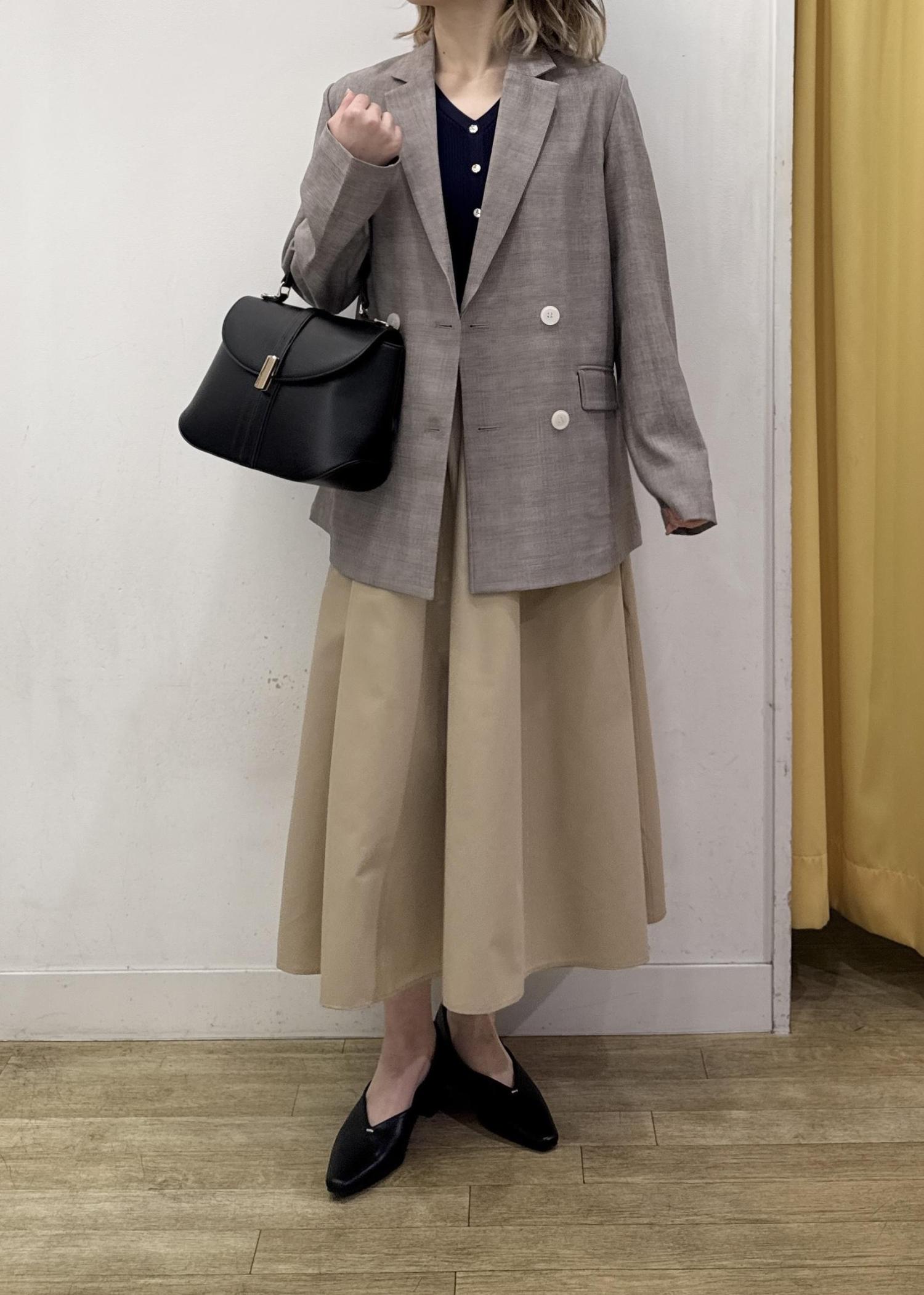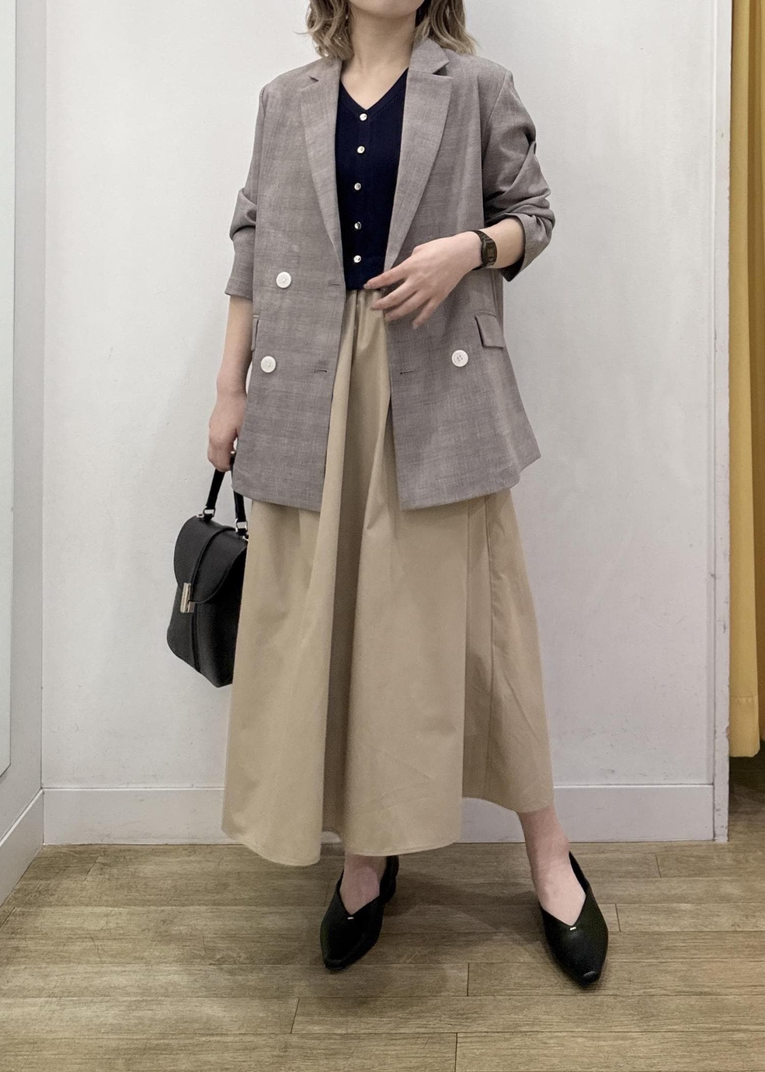 シルエットがキレイなワンピースは1枚で着てもちゃんと見えするアイテムですが、ジャケットを合わせればより様々なシーンで着用できるコーディネートに☺︎