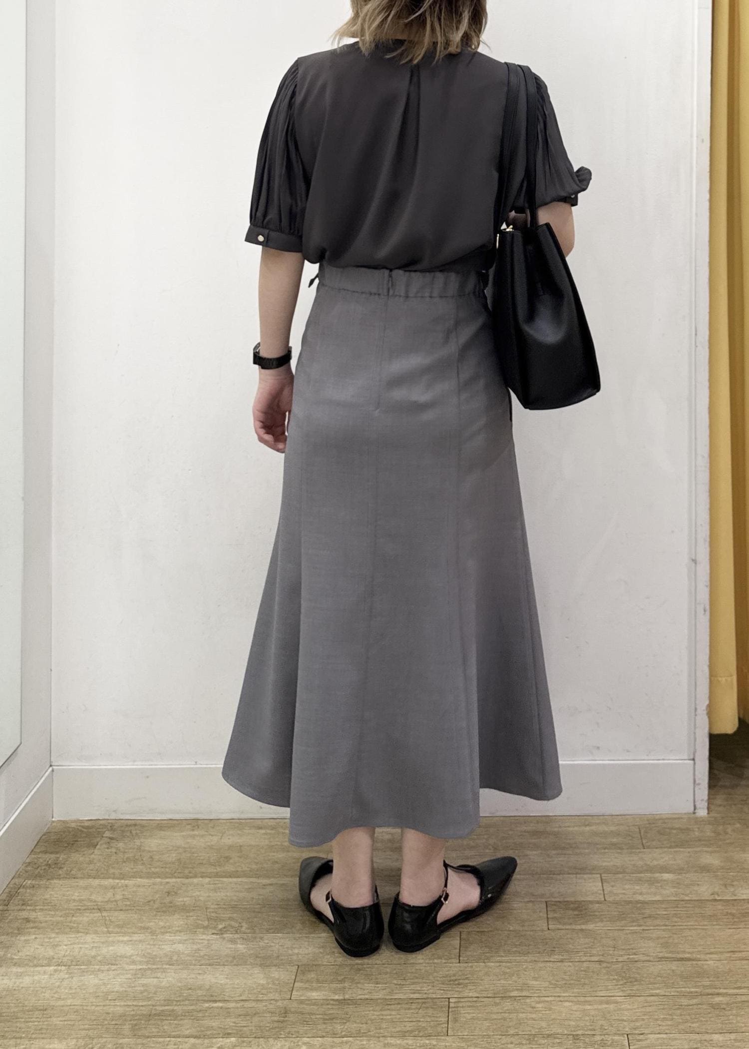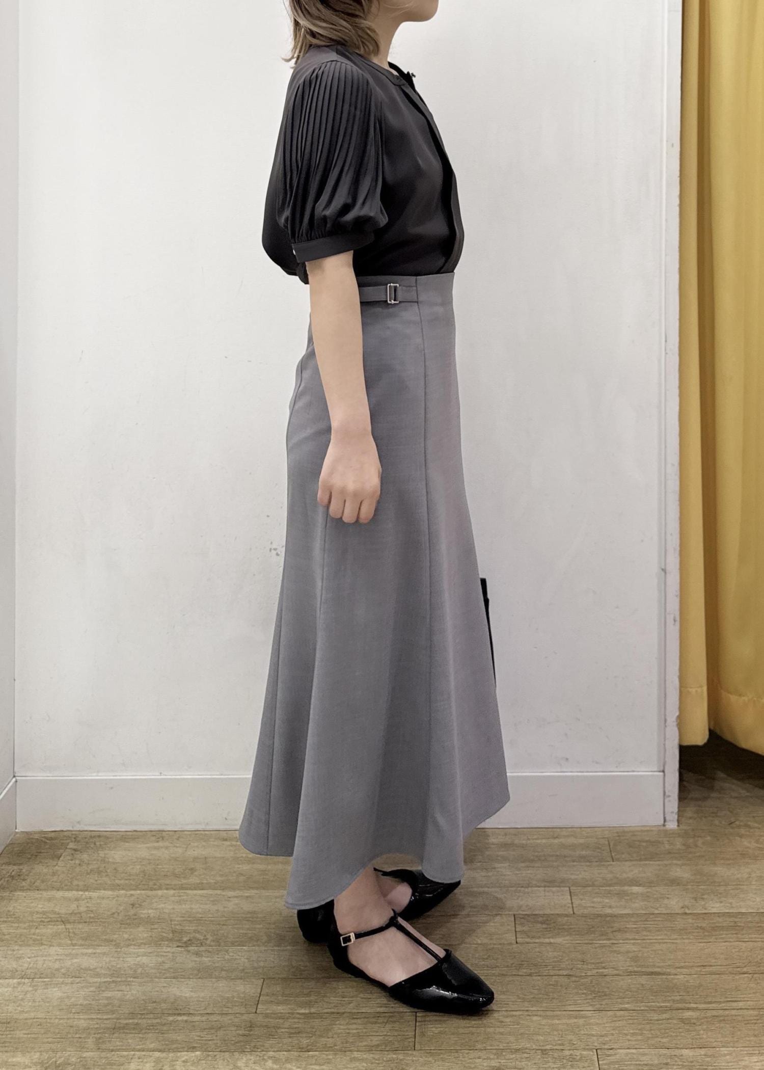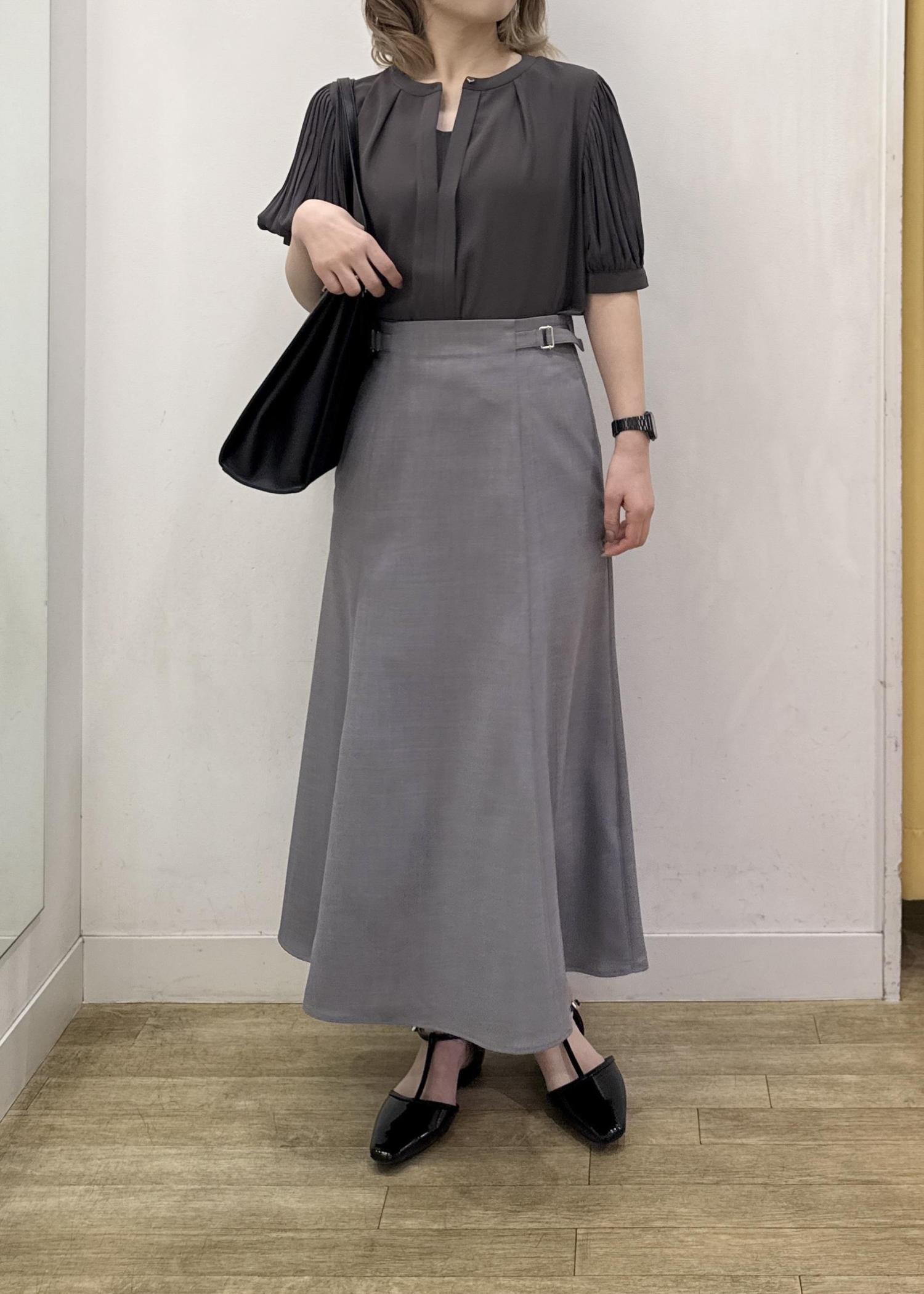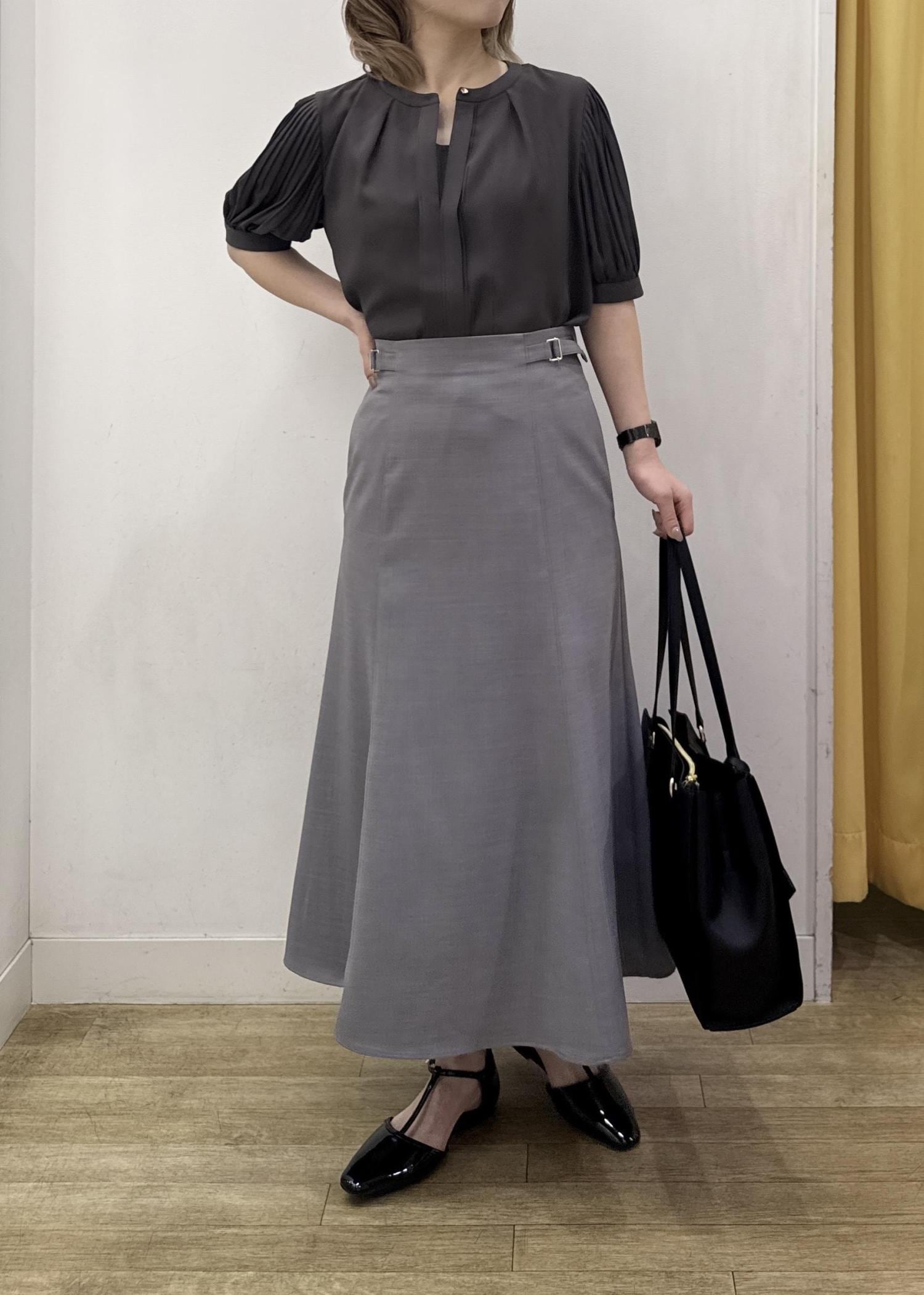 サラッとした薄手の素材感で春から秋まで使えるオンオフ兼用のスカートです。 -