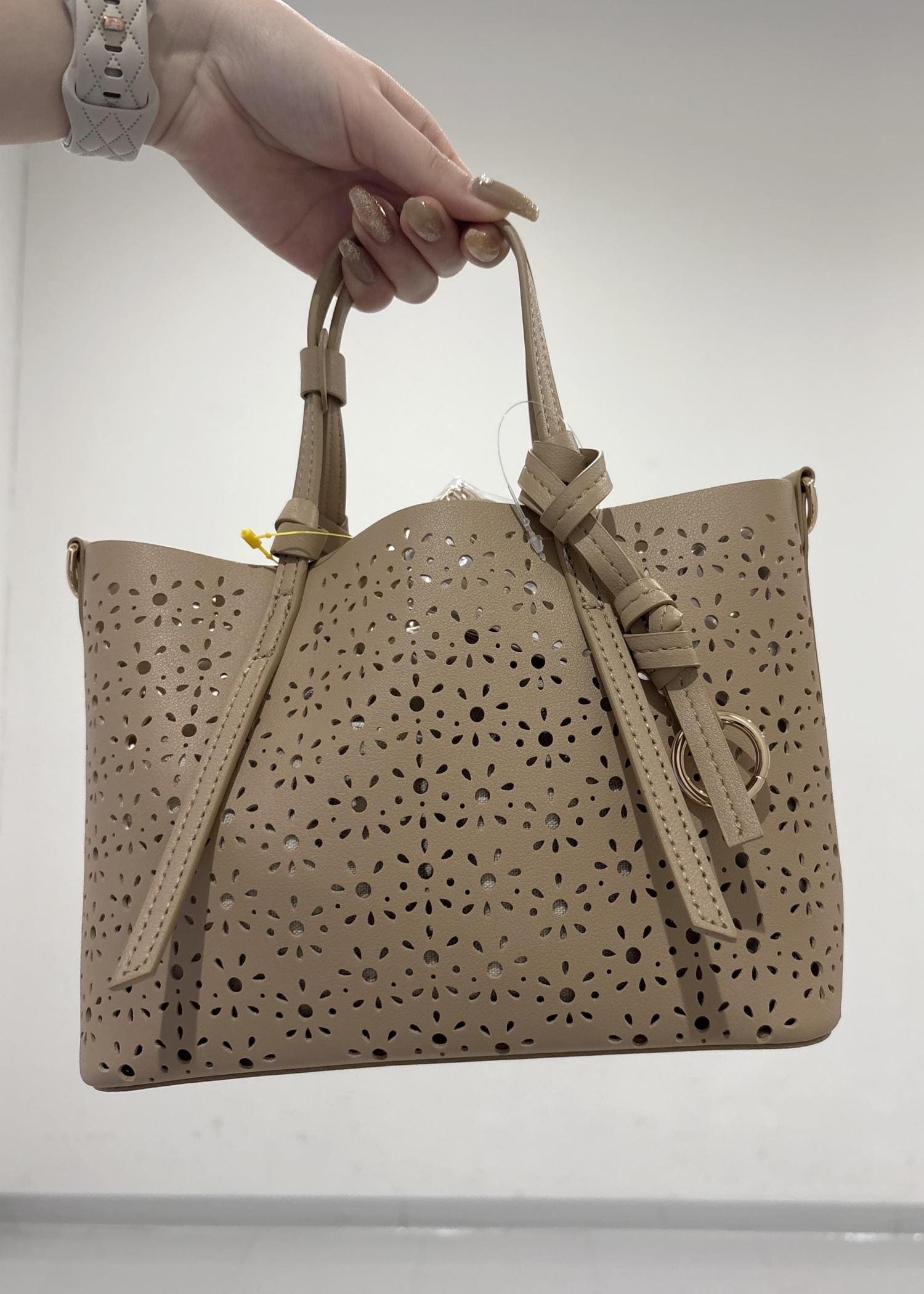 ROPÉ PICNIC PASSAGEフルーレットパンチングレースミニショルダーバッグ/2WAYベージュ系 / F¥6,490レビューこちらのバッグは、パンチングレースで春っぽく華やかな印象になります!バッグインポーチとして使える麻混素材の巾着付きで中身が見えないのも嬉しいポイントです◎