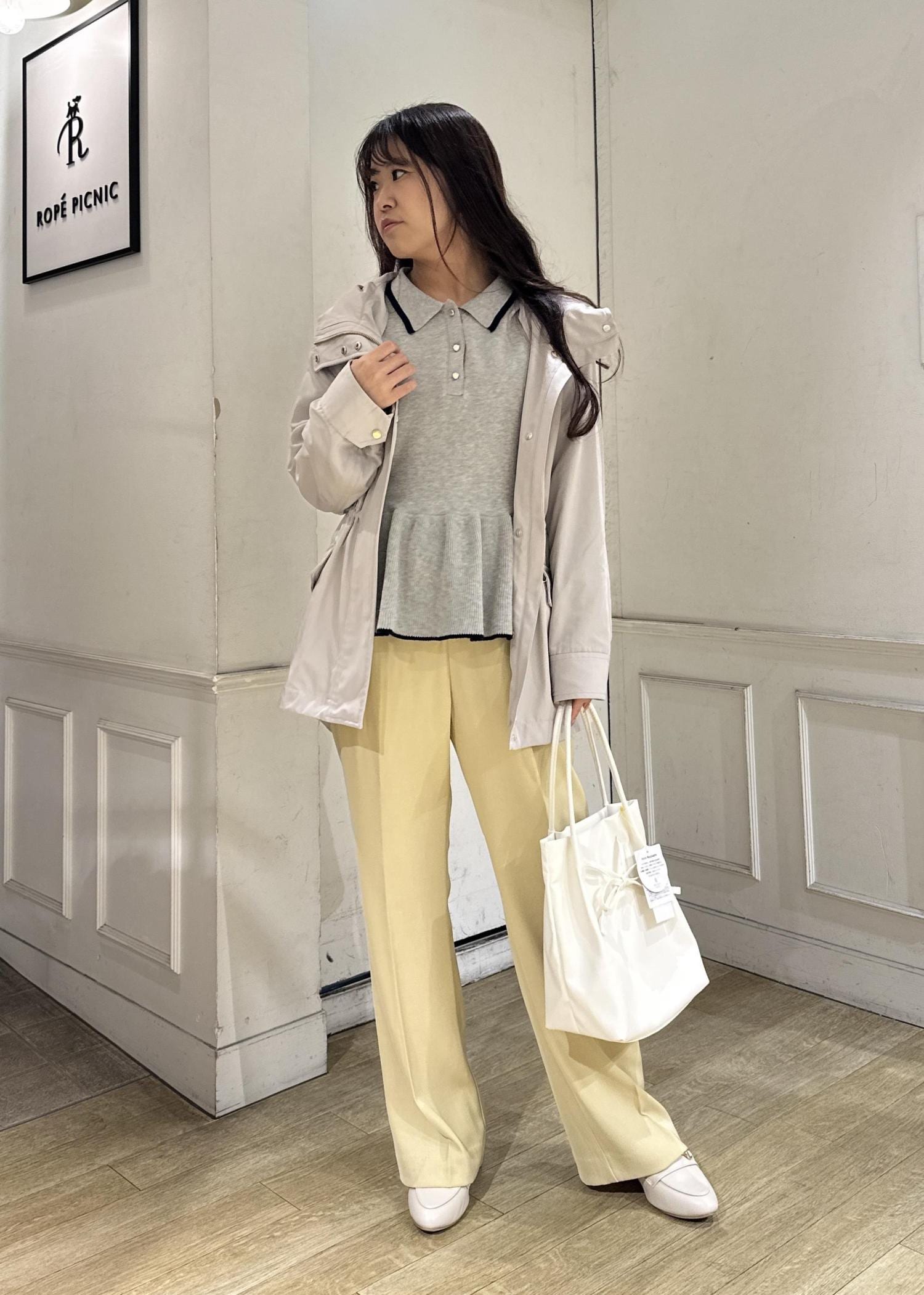 ROPÉ PICNICペプラムポロカラーニットグレー / F¥4,391レビューペプラム型なのでウエストマークしてくれて、脚長効果抜群です。
