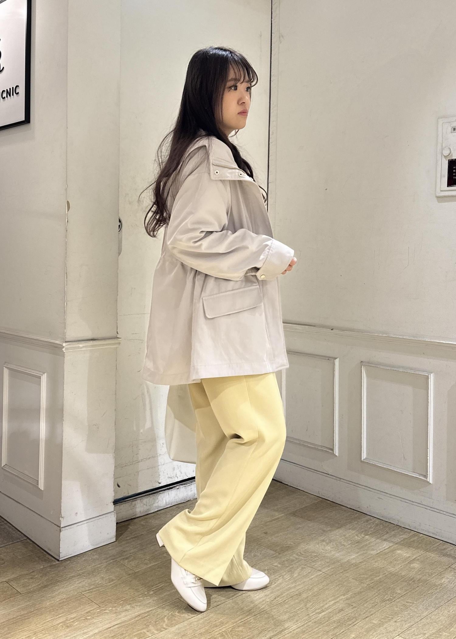 イエローカラーのパンツが可愛い春コーデ。
