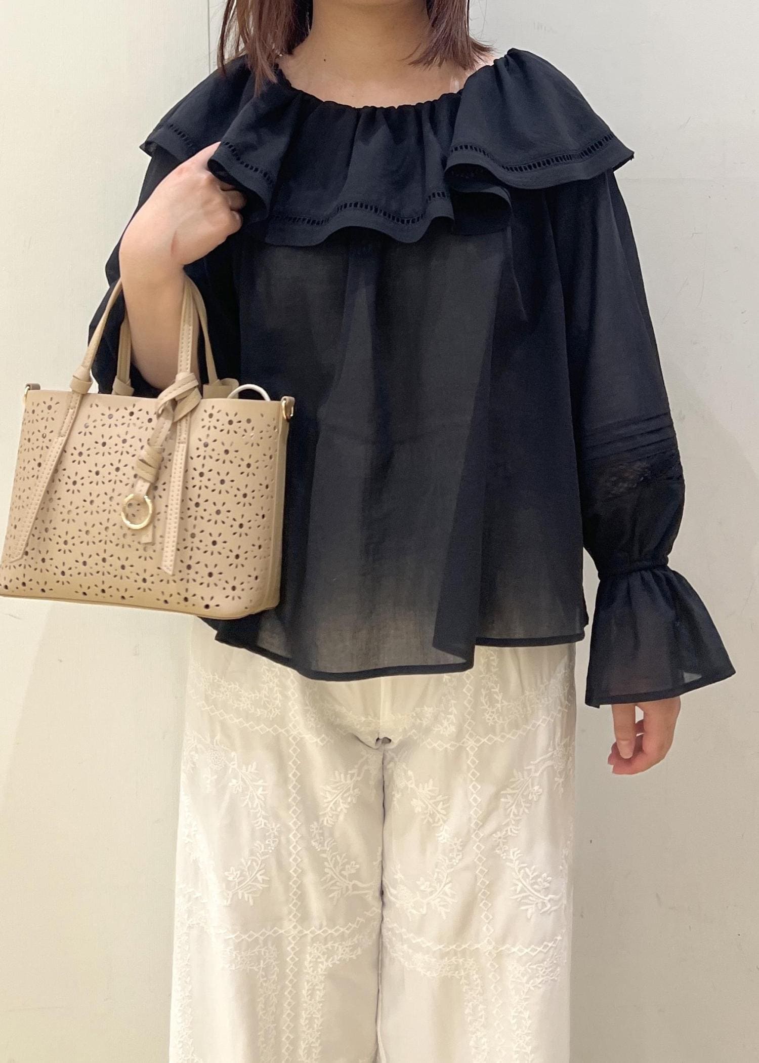 普段全くと言っていいほど黒を着ない私がこのブラウスだと程よい透け感があるので挑戦することができました◎