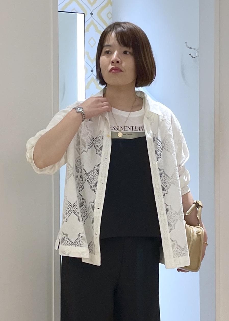 ROPÉ PICNICレースシャツオフホワイト / F¥6,490レビュートレンド感のある総レースのシャツです。透け感を抑えてあるので、大人も着やすいシャツです。少し張りがありレースシャツの中ではしっかりめの生地の印象です。着丈は腰にかかるくらいの長さで、身頃はゆとりがありボディラインを拾わない長さです。
