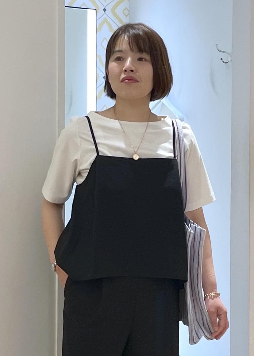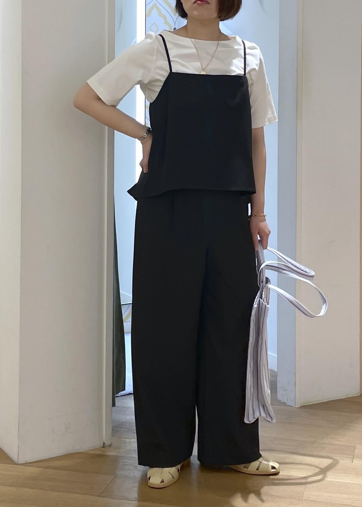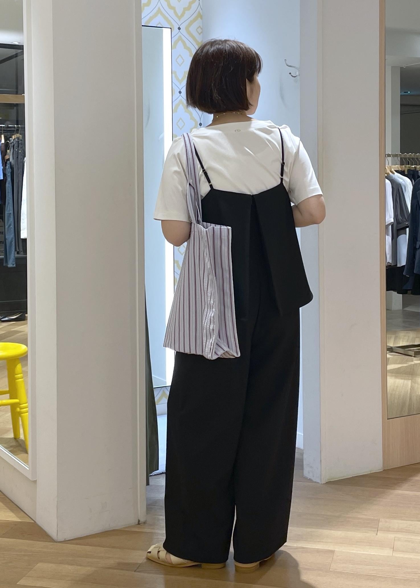 ROPÉ PICNICレイヤードオールインワンブラック / M¥7,997レビューさらっとした素材感のオールインワンで、肌離れも良く夏まで涼しく着用できます。落ち感のある素材なので、すっきりとお召し頂けます。レイヤードデザインで気になるお腹周りもカバーしてくれます。肩紐部分がアジャスター付きなので、着丈も調節できます。
