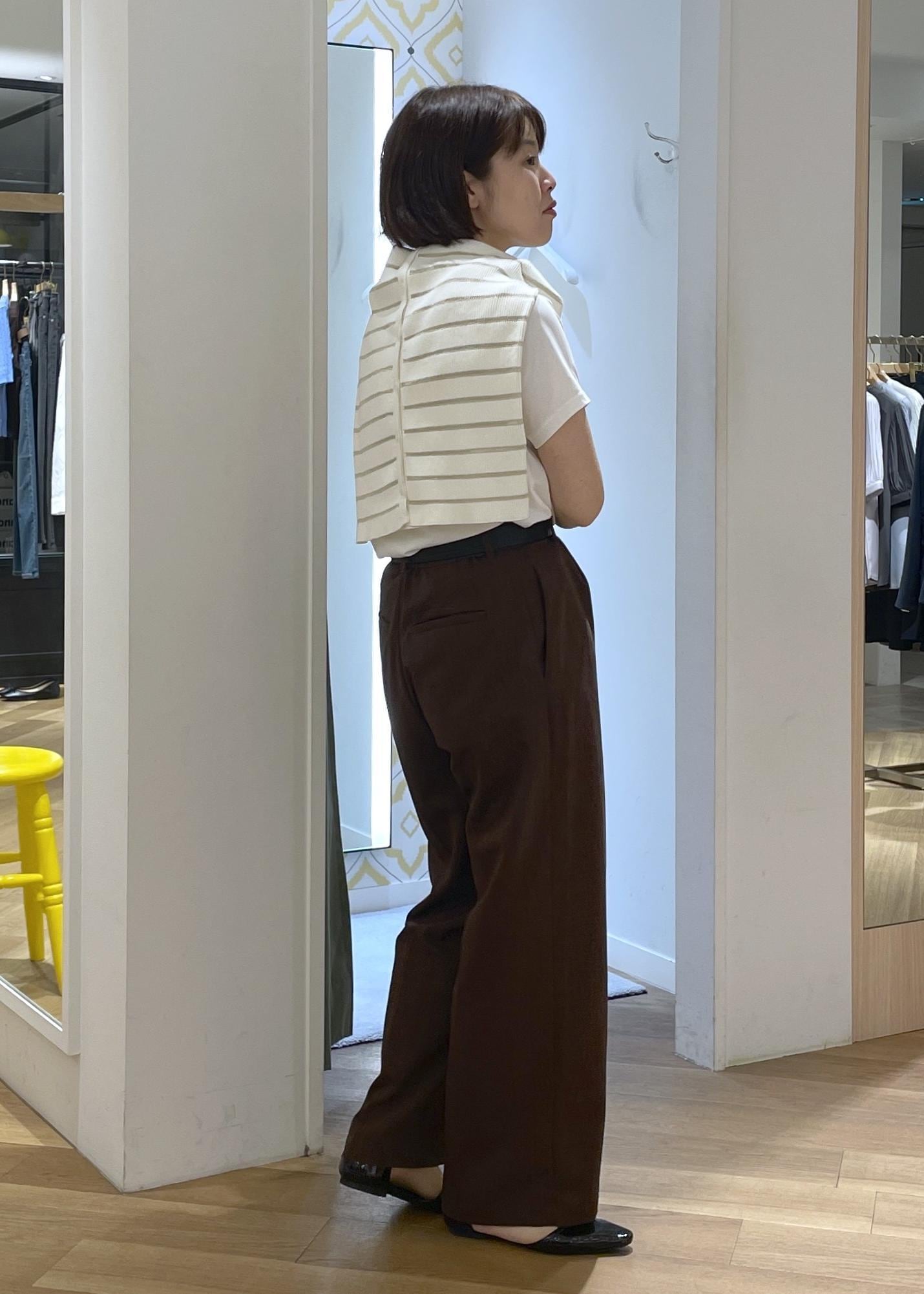 ROPÉ PICNICカナパ ベルト付きワイドパンツ/セットアップ対応・UV・抗菌防臭・接触冷感ダークブラウン / M¥5,995レビュー少しシャリ感のある薄めの生地で夏までの長い期間でお召し頂けるパンツです。ワイドシルエットなので、脚のラインは拾わず透け感も気にならなかったです。ウエストはトップスインできるゆとりがあります。着丈は160cm、Mサイズ着用でフラットシューズでも擦らない長さでした。