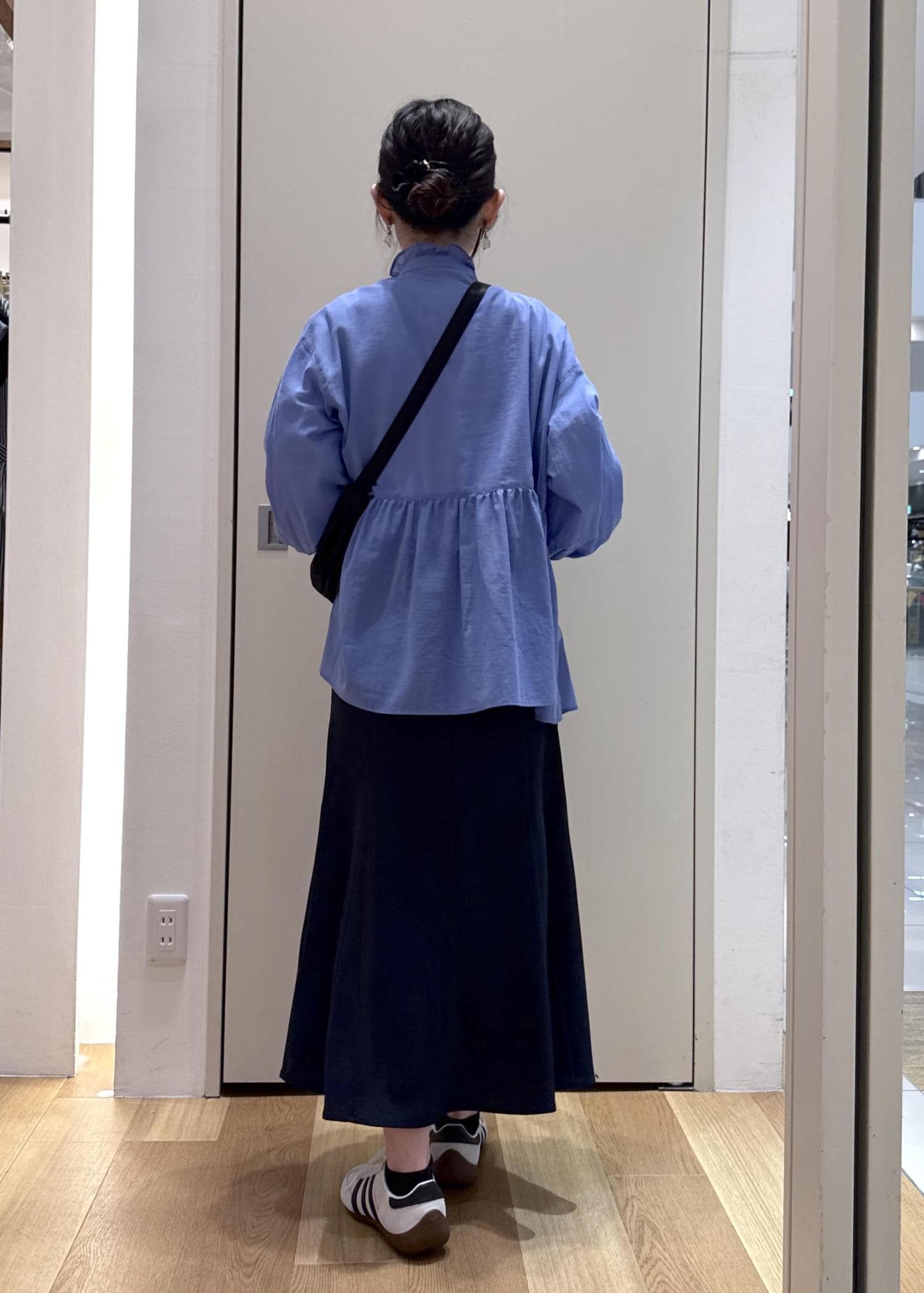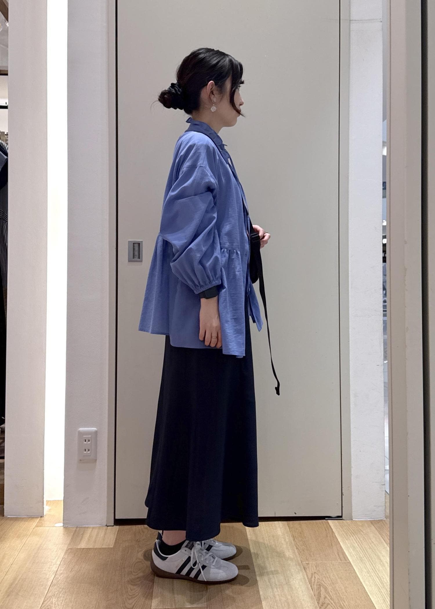 袖も身幅も程よくゆとりがあり、裾がヒップに隠れるほど安心感があります。