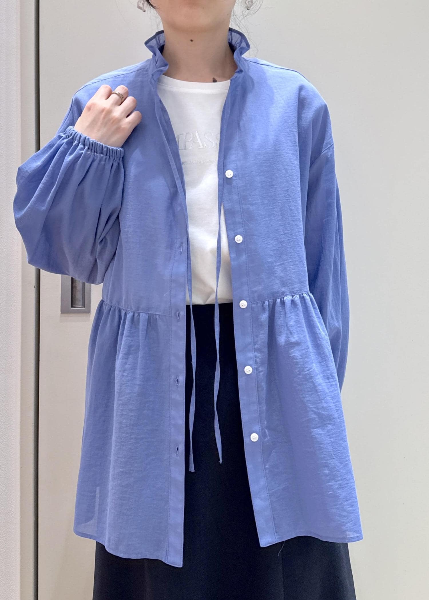 フリルシャツを羽織りで着てみた