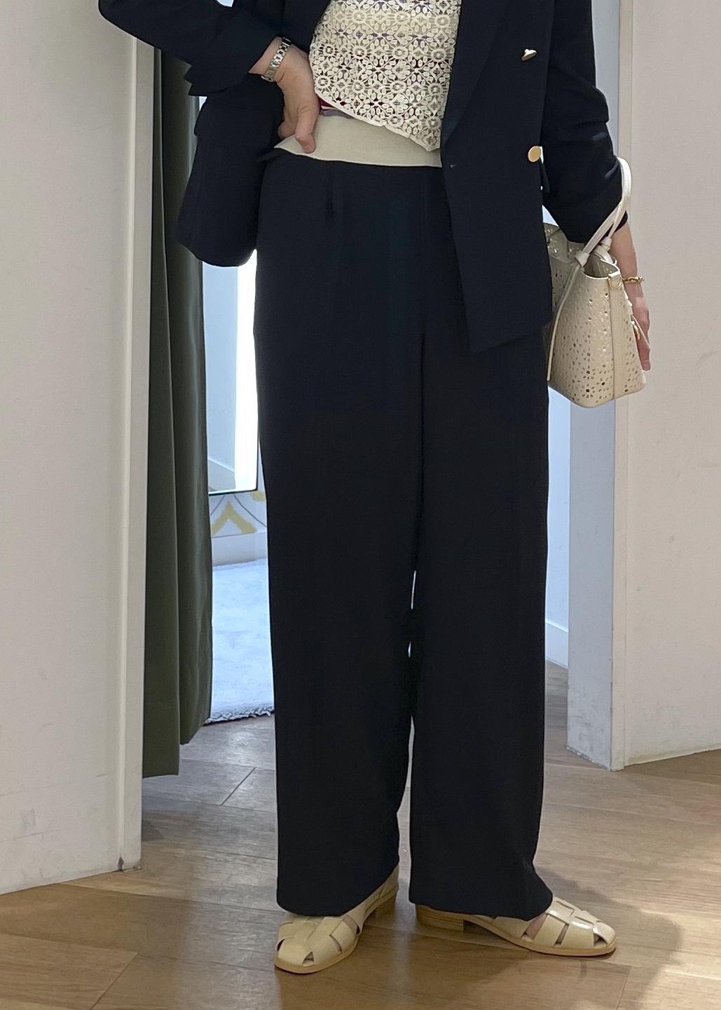 ROPÉ PICNICカナパ ベルト付きワイドパンツ/セットアップ対応・UV・抗菌防臭・接触冷感ネイビー / M¥5,995レビュー少しシャリ感のある薄めの生地で夏までの長い期間でお召し頂けるパンツです。ワイドシルエットなので、脚のラインは拾わず透け感も気にならなかったです。ウエストはトップスインできるゆとりがあります。着丈は160cm、Mサイズ着用でフラットシューズでも擦らない長さでした。