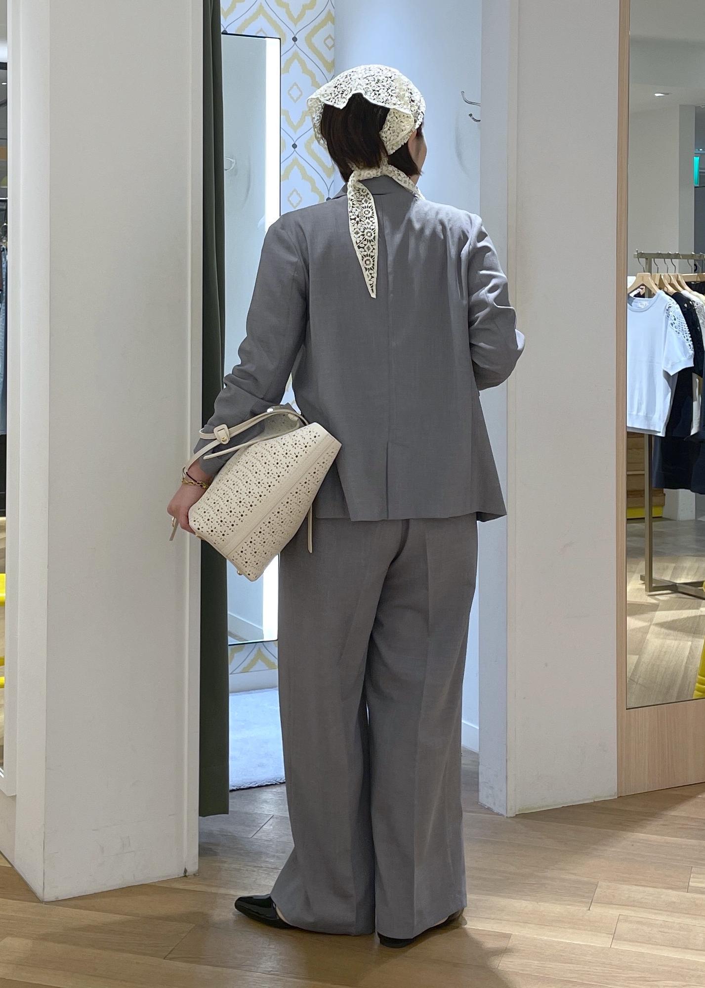 レースのスカーフを取り入れて、より春っぽくトレンド感のあるスタイルになってます!