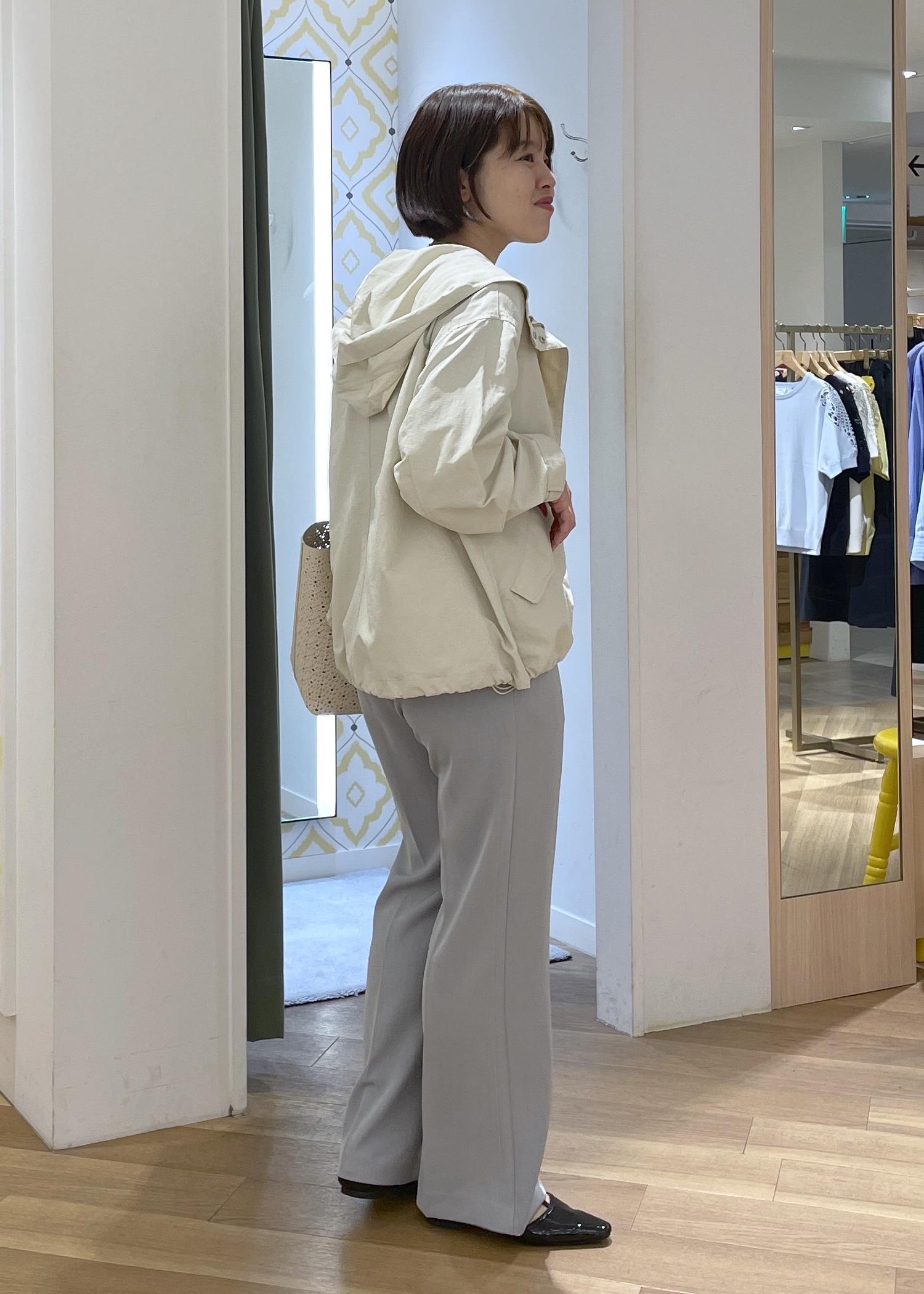 美脚見えが叶う!美フレアパンツにマウンテンパーカーを合わせた、春の休日コーデです!