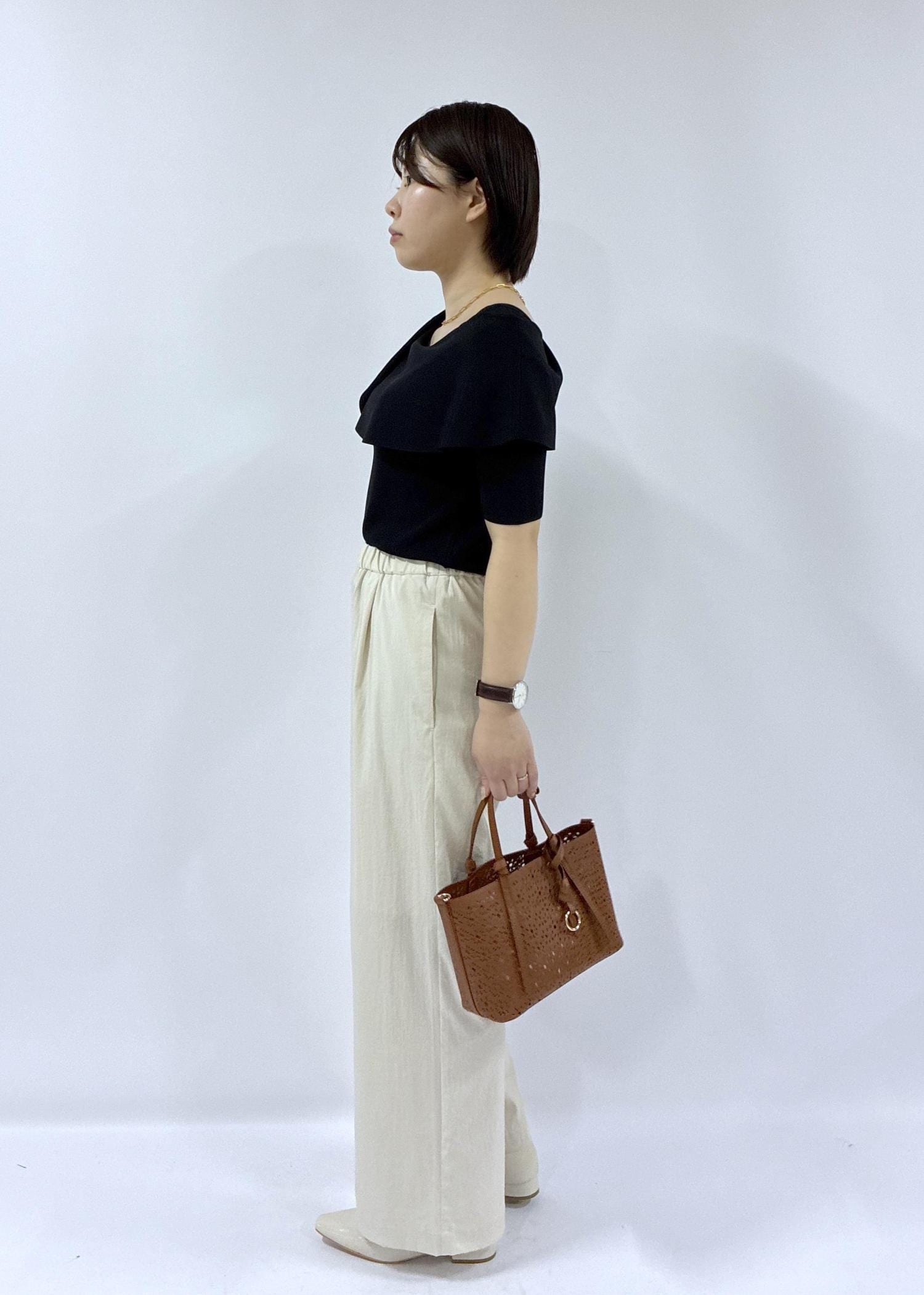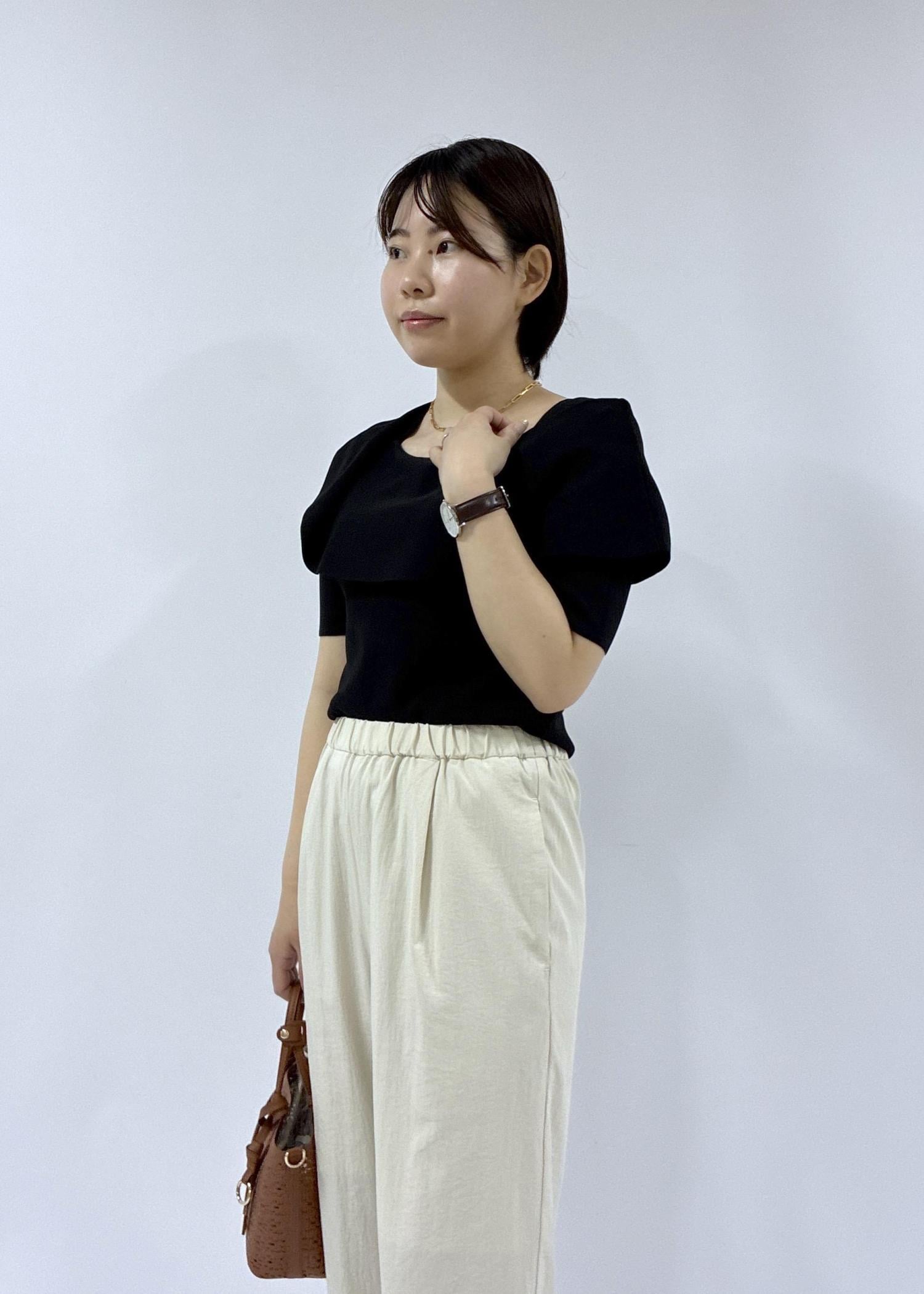 色味はシンプルですが、きれいめ大人カジュアル対応のニットトップスで大人かわいいコーディネートにしてみました♪
