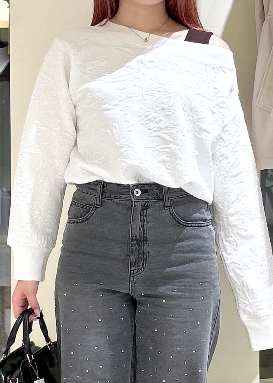 ボートネックなので、ワンショルダーにしてもかわいいです◎ -