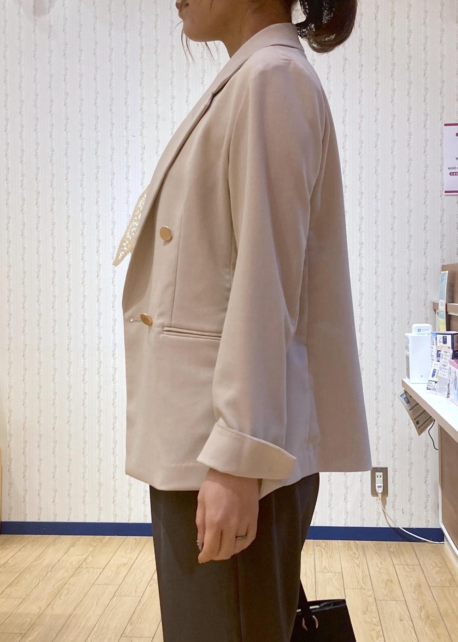 裏地がないのでシャツ感覚で羽織るだけできちんと感がプラスできる万能アイテムです。 -