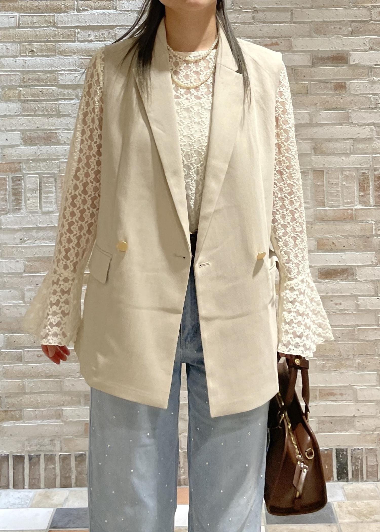 サラッと軽い素材で、きちんと感がありつつも快適に着用することができるジレです♫ -