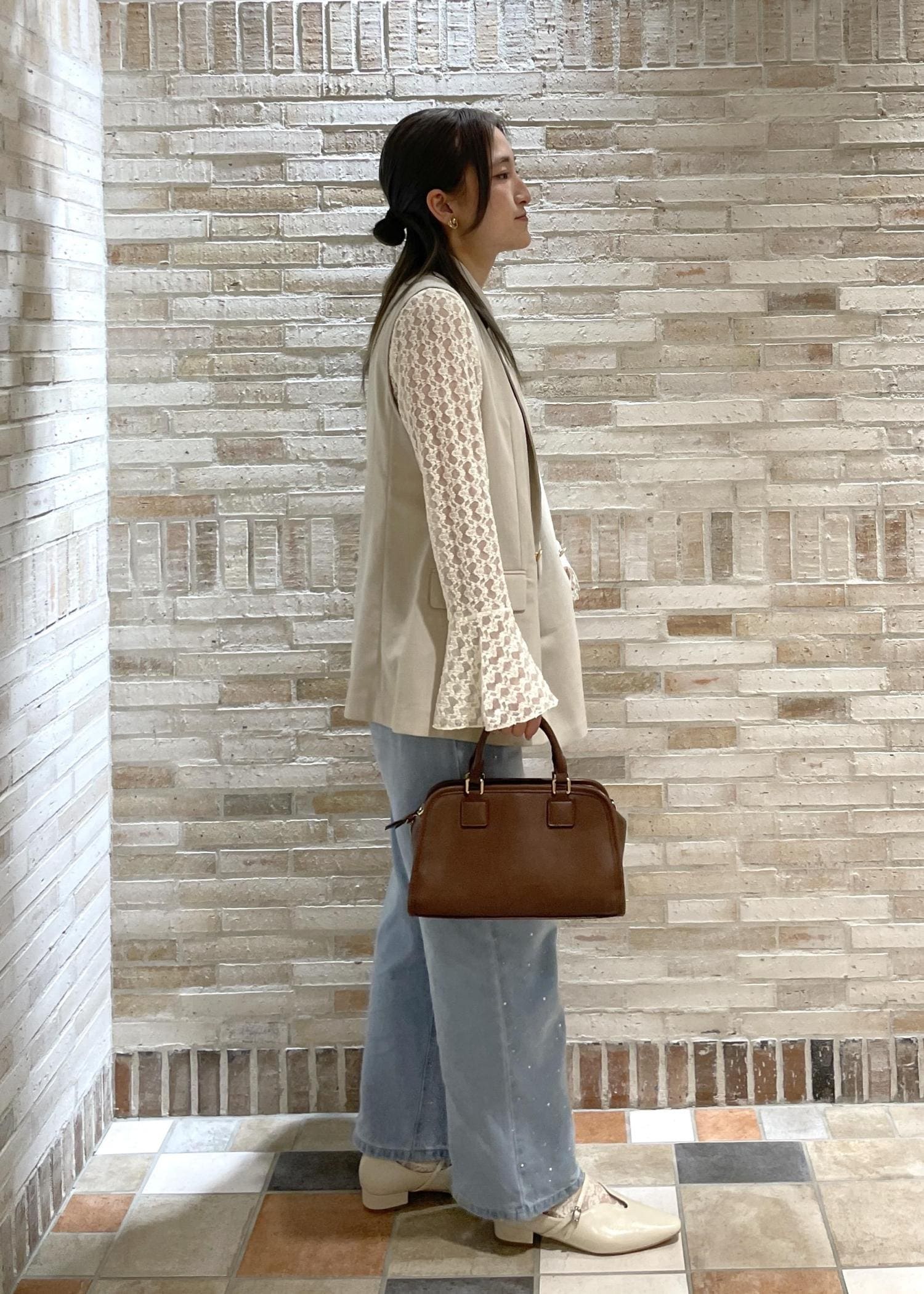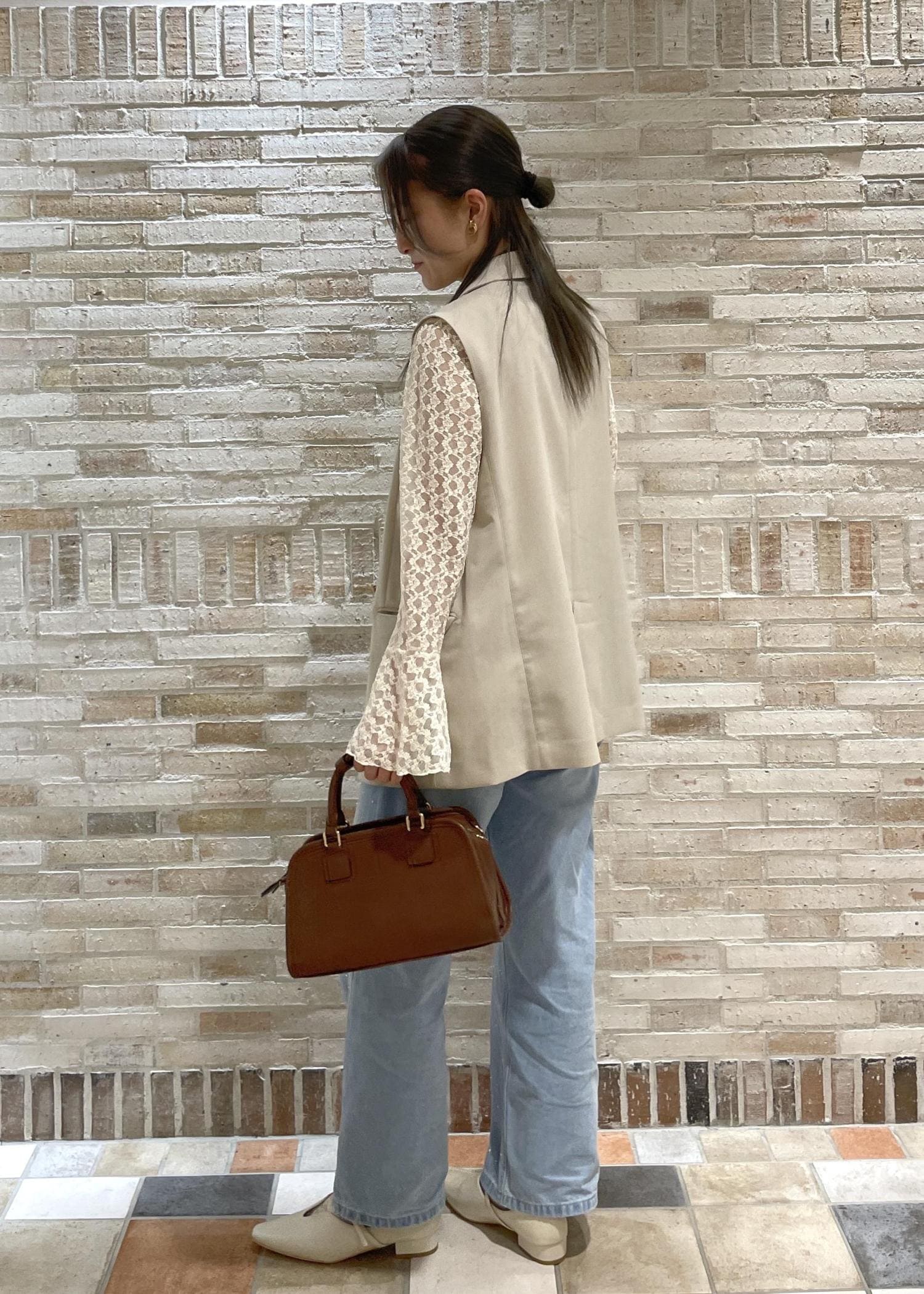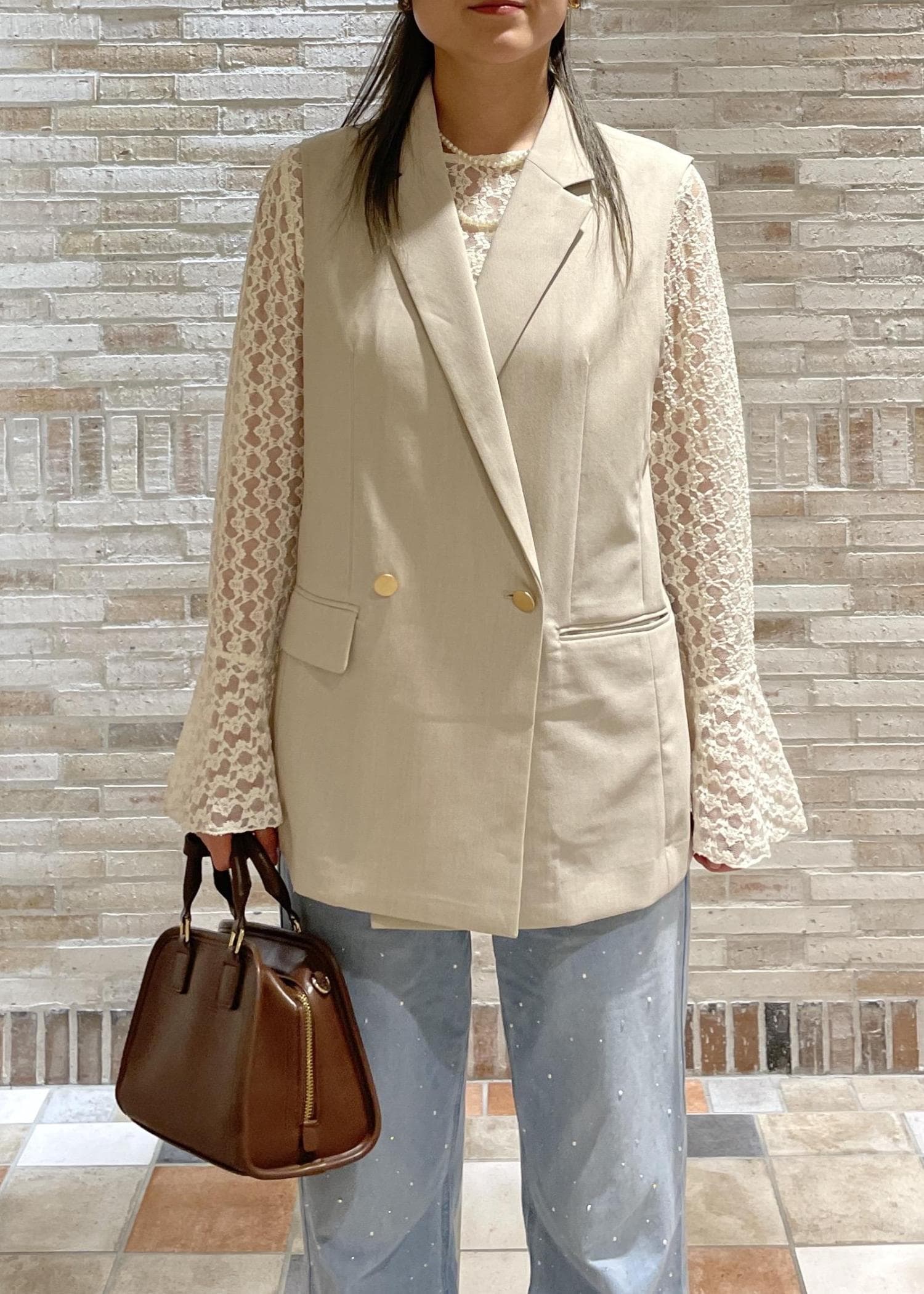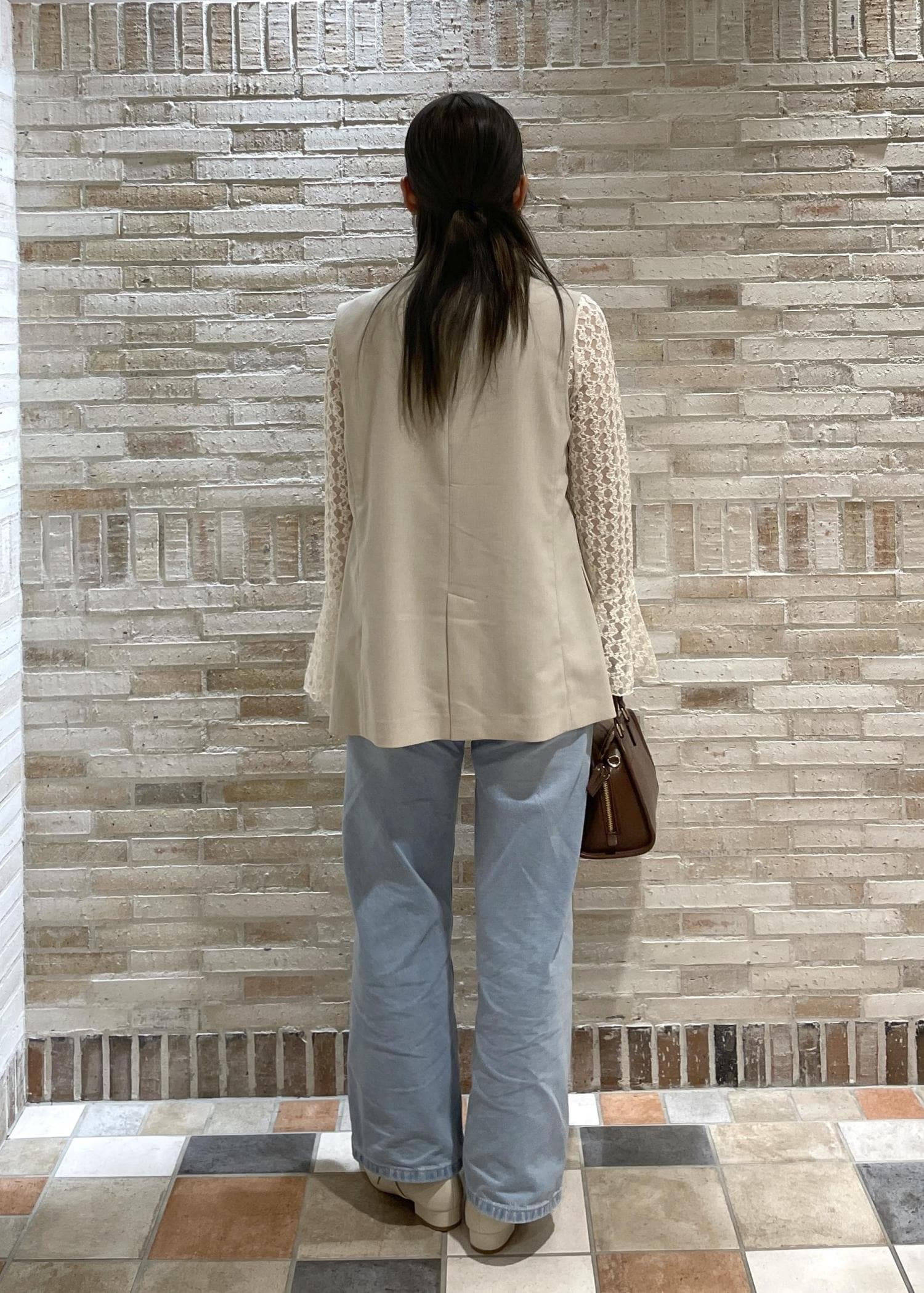 お仕事でも使えるきちんと感のあるスリーブレスジレに、デニムを合わせることで春のお出掛けコーディネートに仕上げました♡