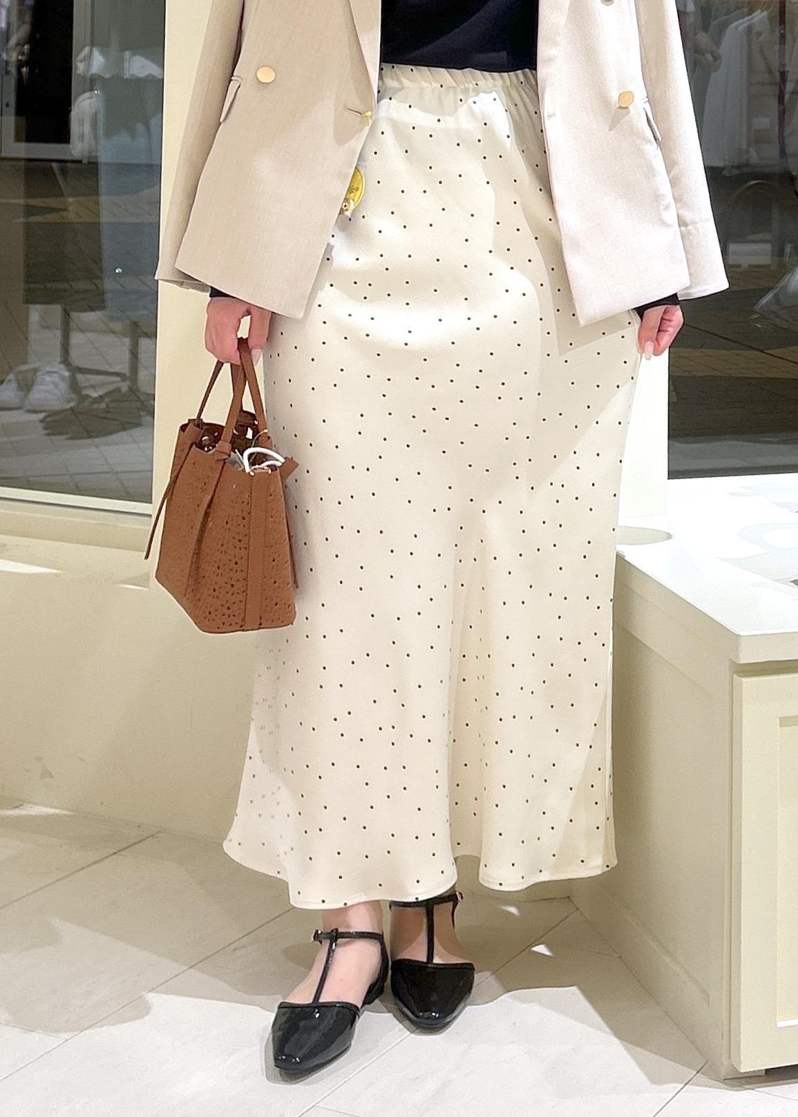 ROPÉ PICNIC細見えバイアスサテンドットスカートキナリ系 / F¥6,490レビュー160センチでくるぶしあたりの丈感です。
