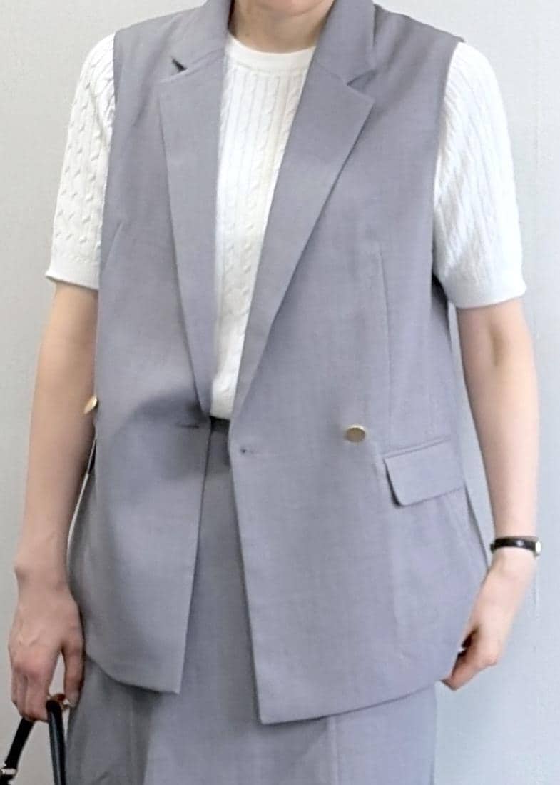ROPÉ PICNICカナパ スリーブレスジレ/セットアップ対応・UV・抗菌防臭・接触冷感グレー / F¥6,996レビュー腰回りの隠れる長さがあり、特に高身長さんはパンツ・スカート選ばずバランスや良く着こなせます。UVカットや接触冷感素材で春〜秋まで長く着れます。