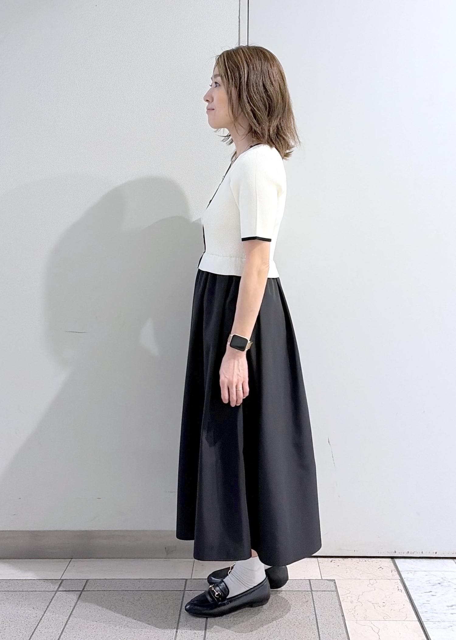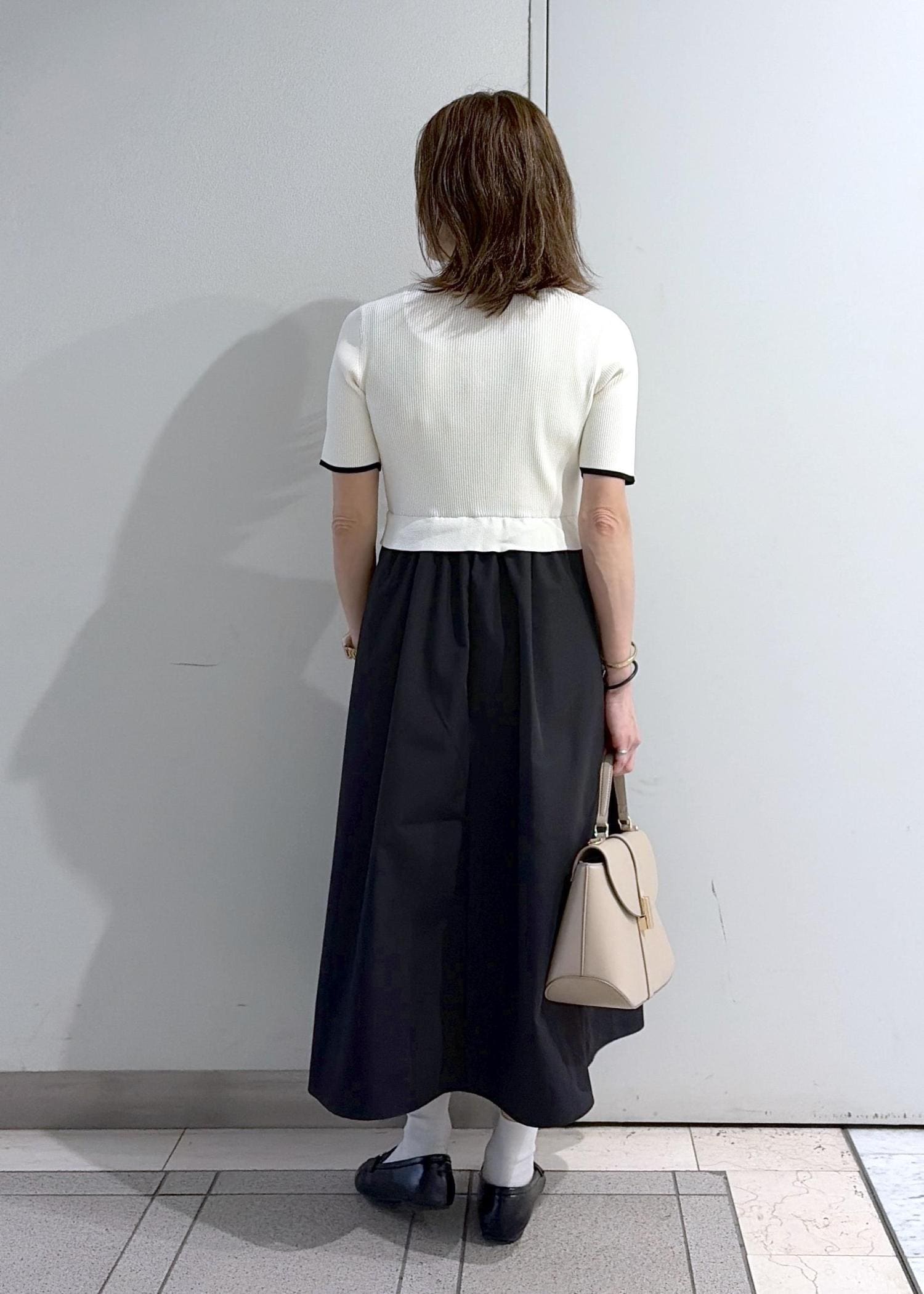 ROPÉ PICNICメタル釦布帛ドッキングハーフスリーブニットワンピースキナリ系 / S¥7,491レビュー異素材デザインでニット部分は程よくフィット感があり、スカート部分はややハリ感がありふんわりと広がります。