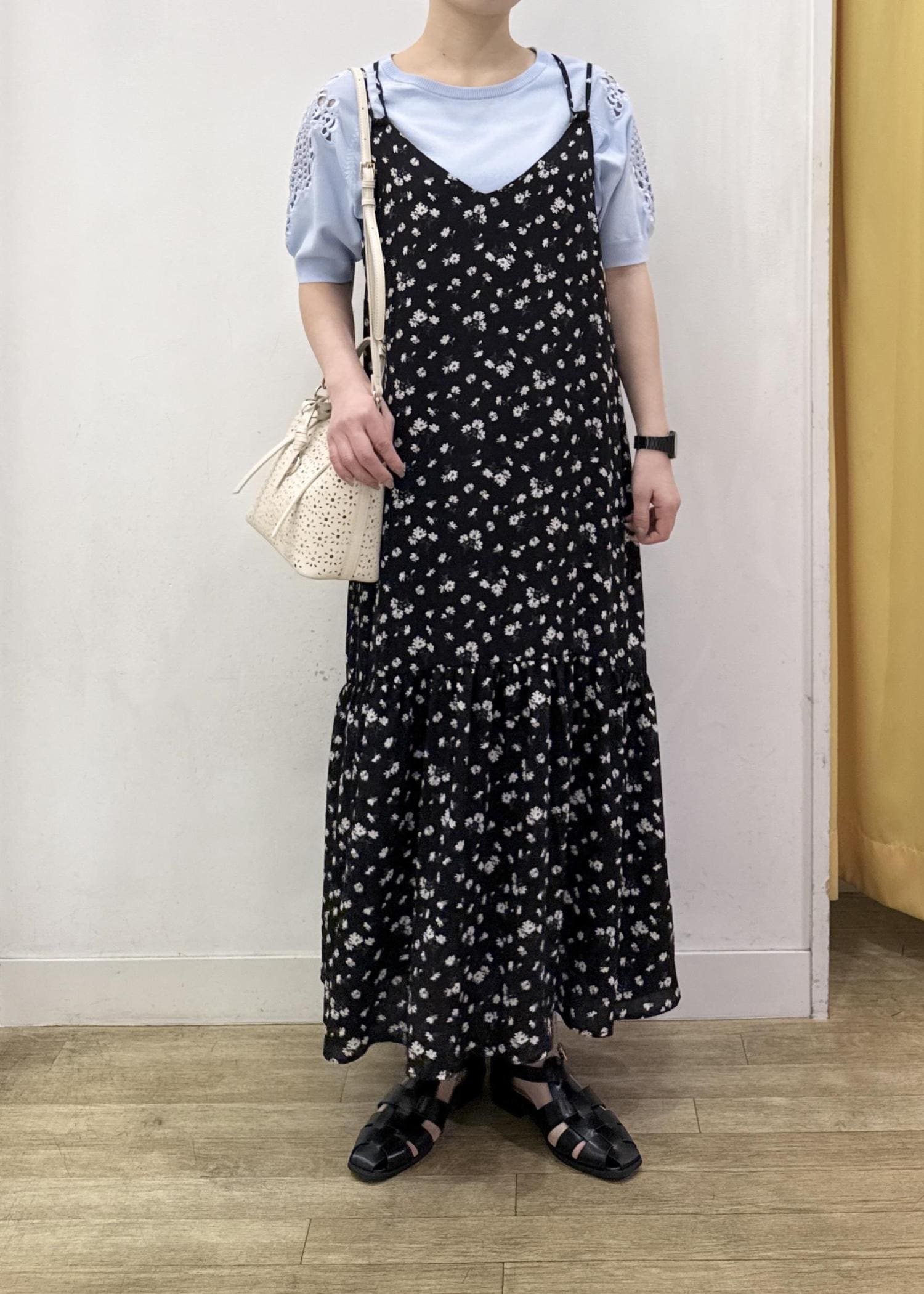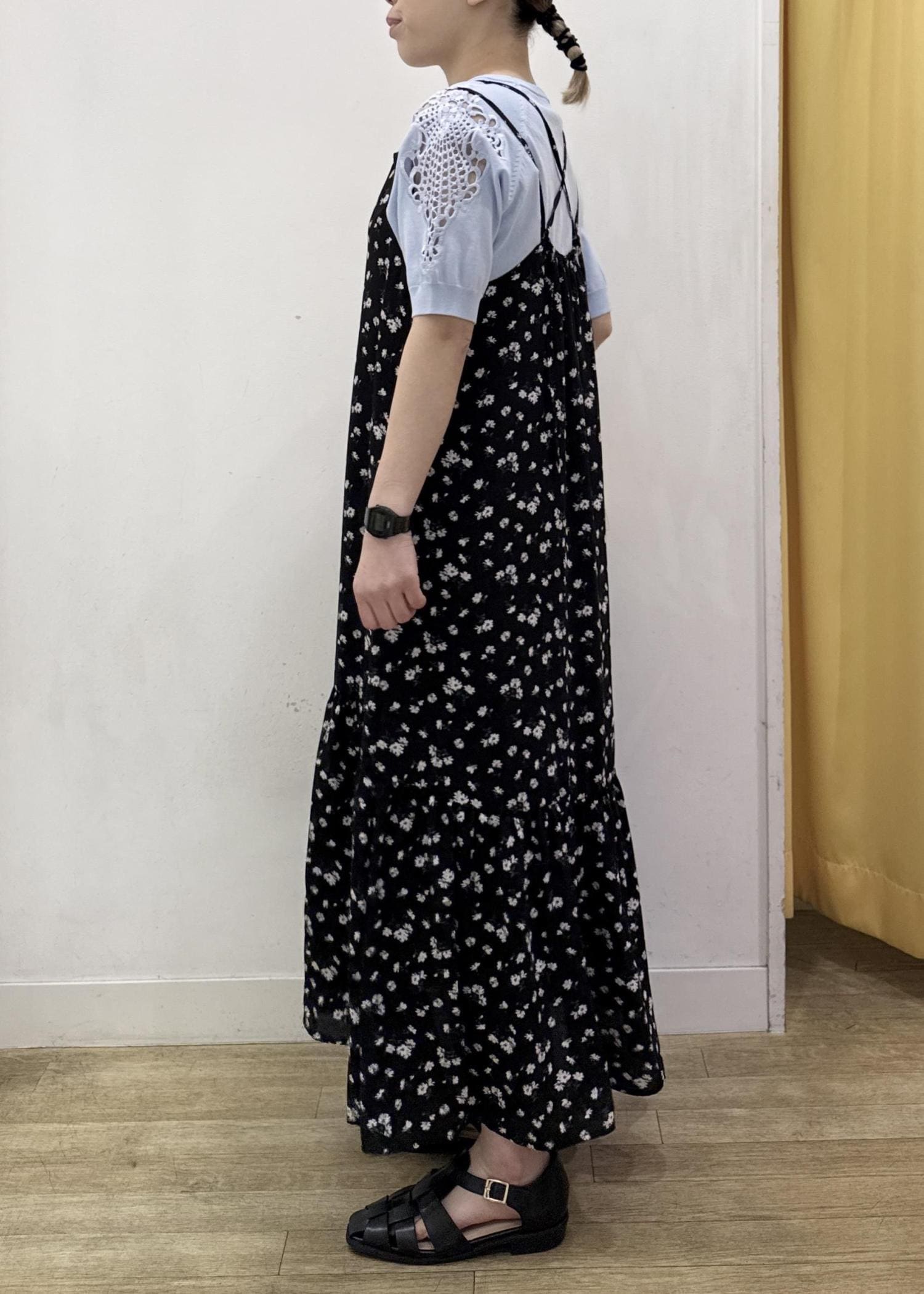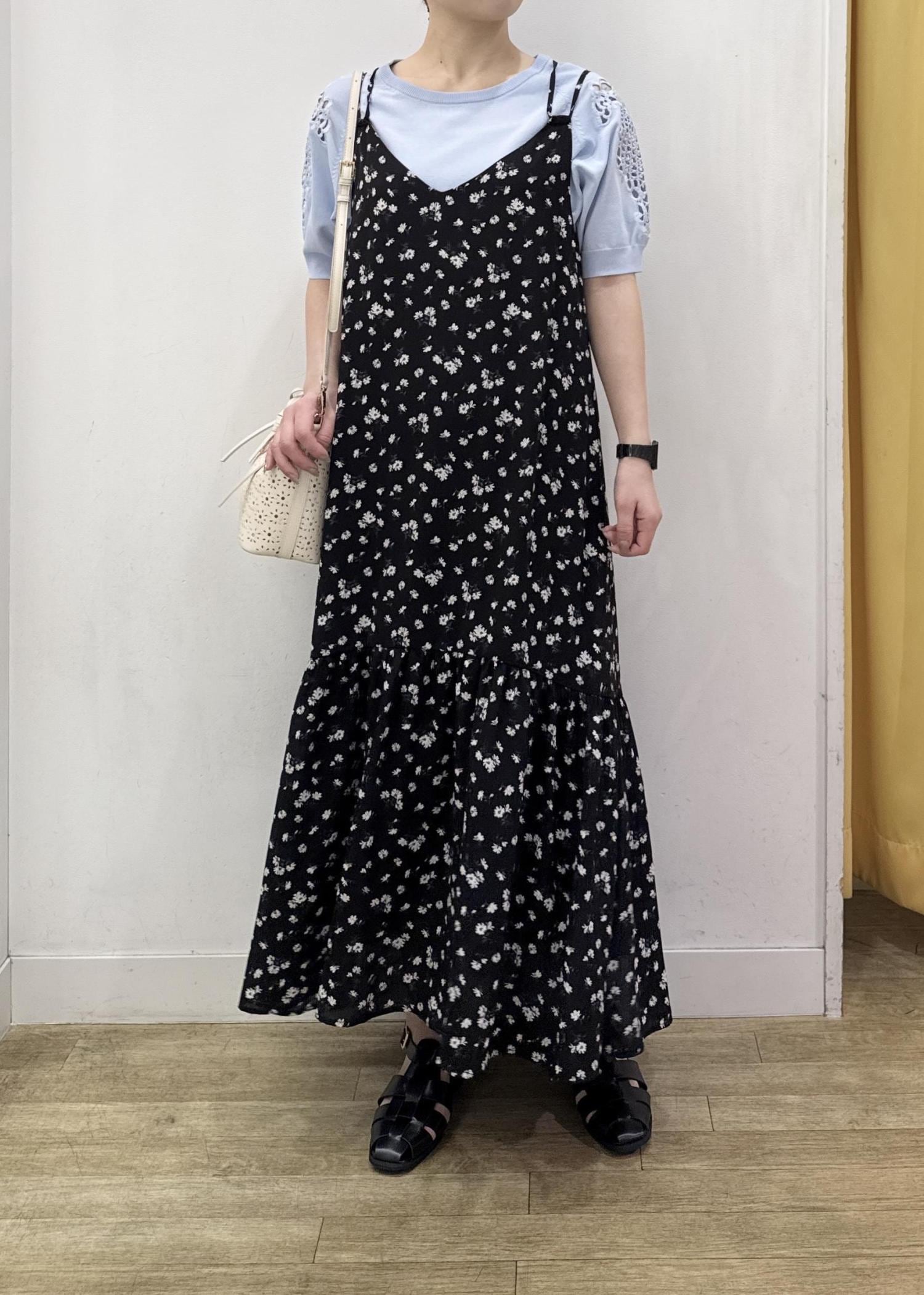 ROPÉ PICNIC花柄ティアードダブルストラップキャミワンピースブラック系 / F¥6,490レビューゆるっとラクに着られるサイズ感!