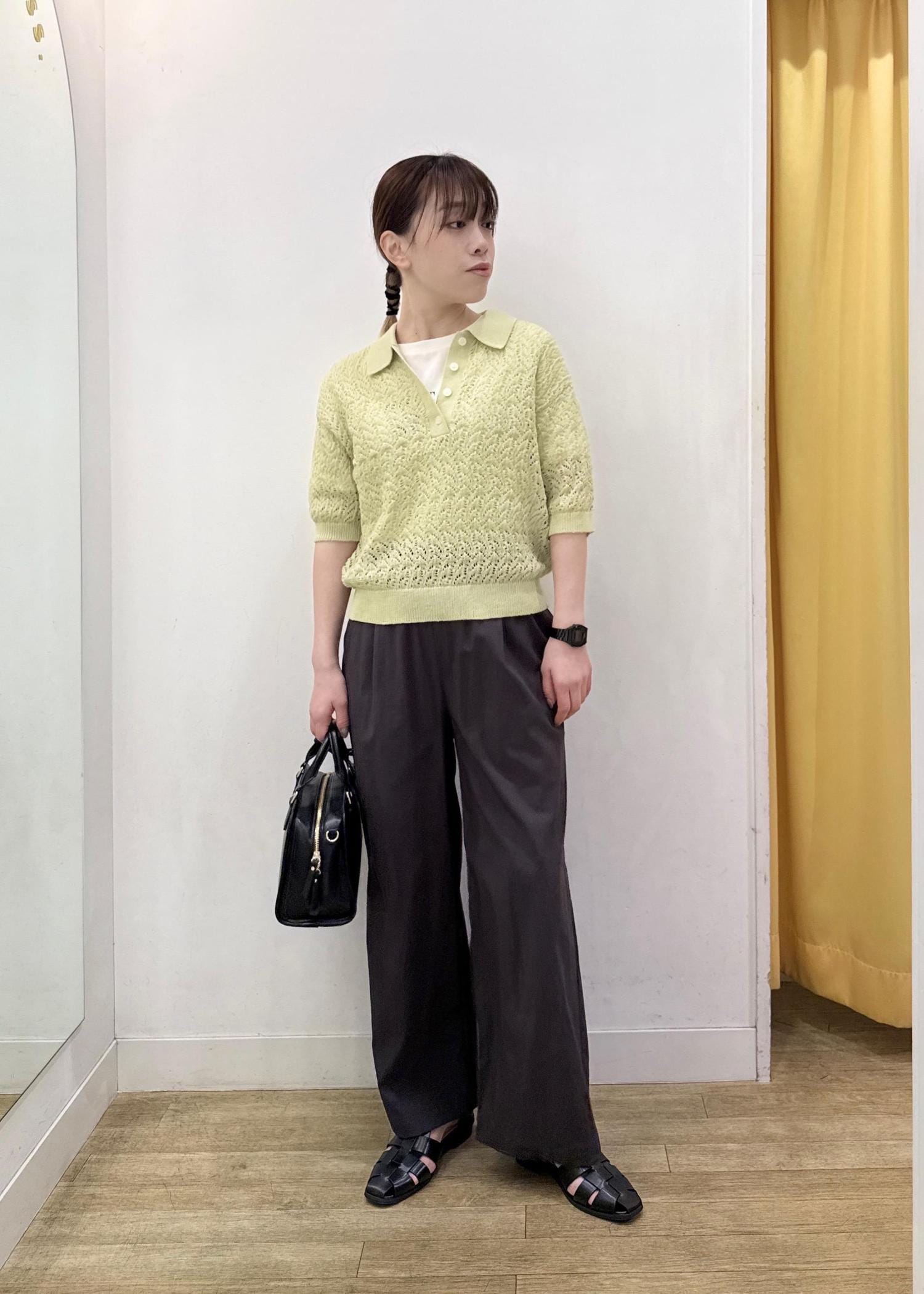 サラッとした素材感で、UVカットや接触冷感など夏に嬉しい機能性付きなのも嬉しいポイント! -