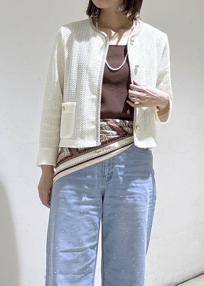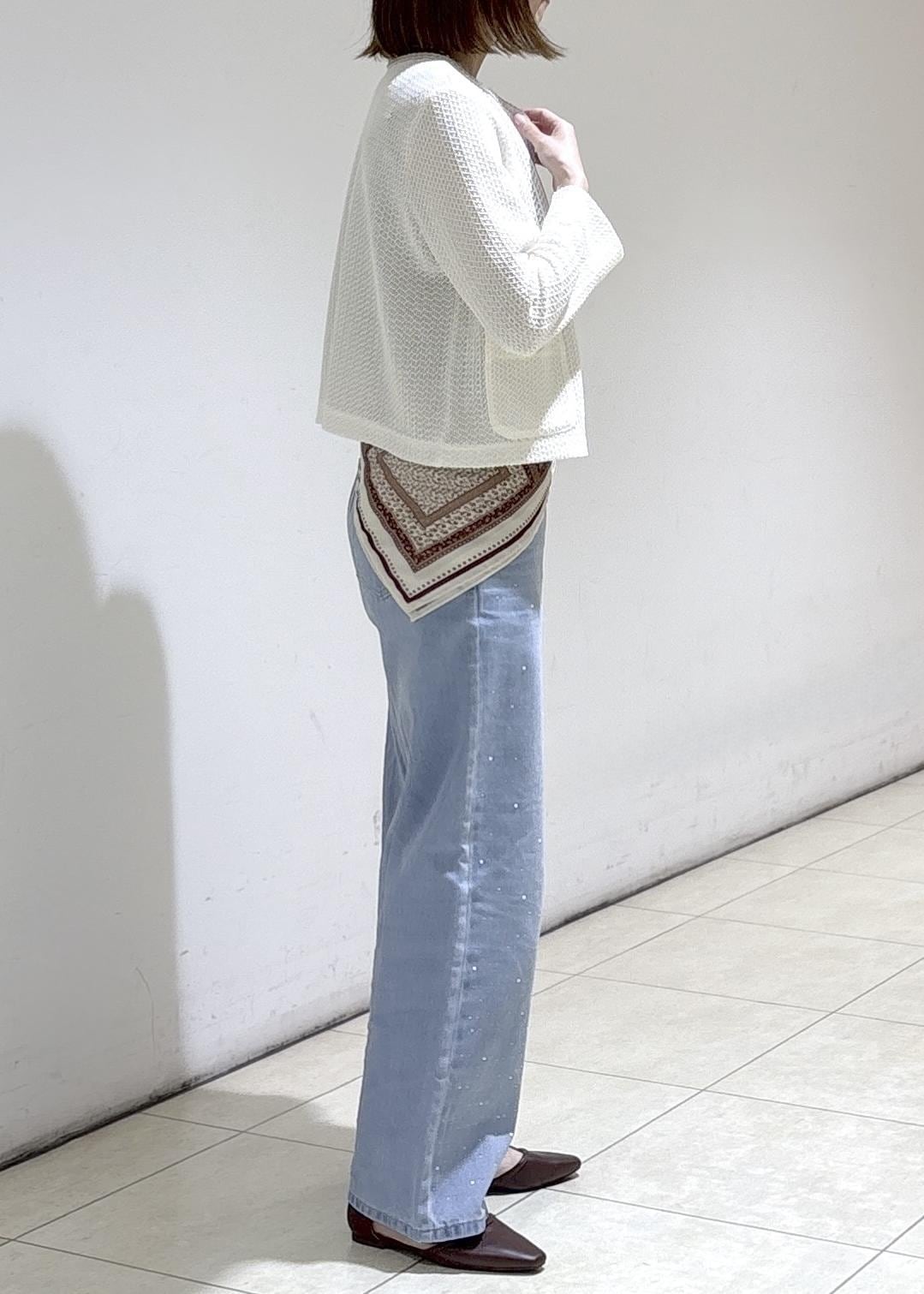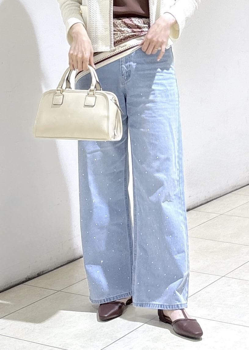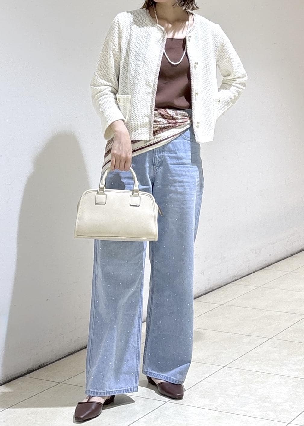 ビジューデニムを合わせた大人カジュアルコーデ。
