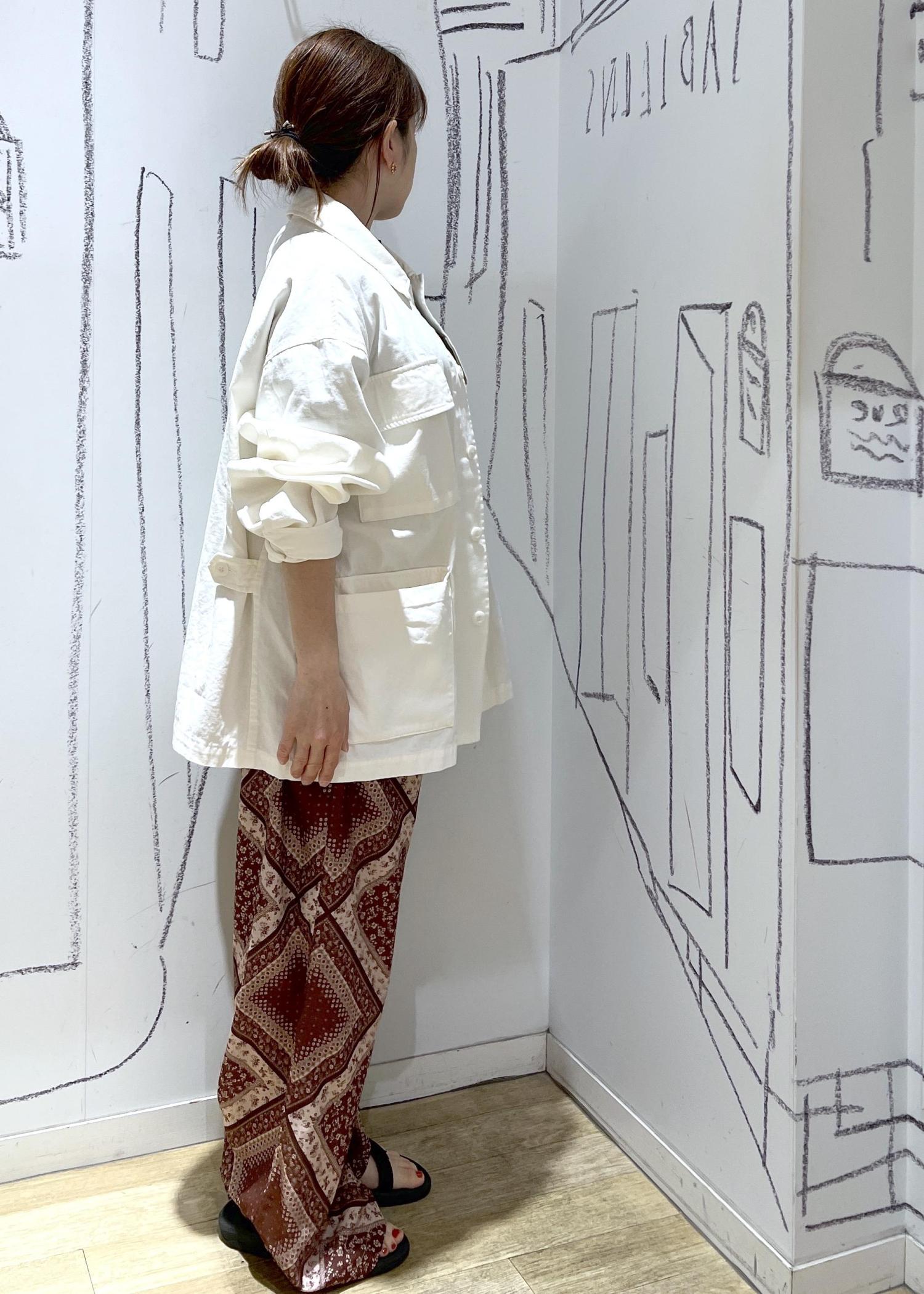 2BUY10%OFFROPÉ PICNICミリタリーブルゾンオフホワイト / F¥8,492レビューオーバーサイズが可愛いミリタリージャケット。見た目より薄く春の寒暖差も調整しやすい袖周り、身周りのゆとりがあります。袖口は2ボタンあるので、袖元もロールアップしやすく快適です◎