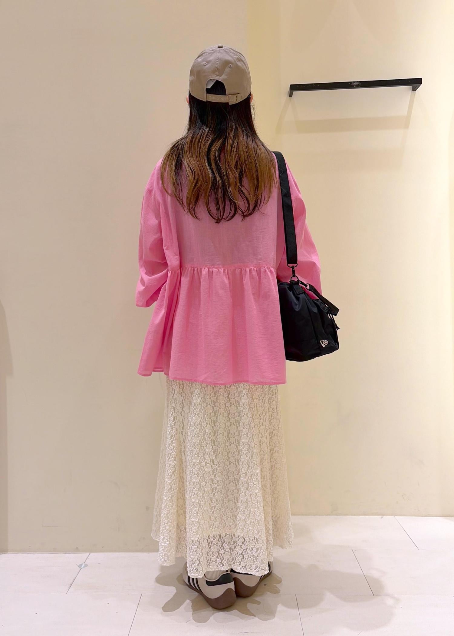 主役カラーのピンクを主役にスカート派の方も着回ししやすいカジュアルコーデ◡̈