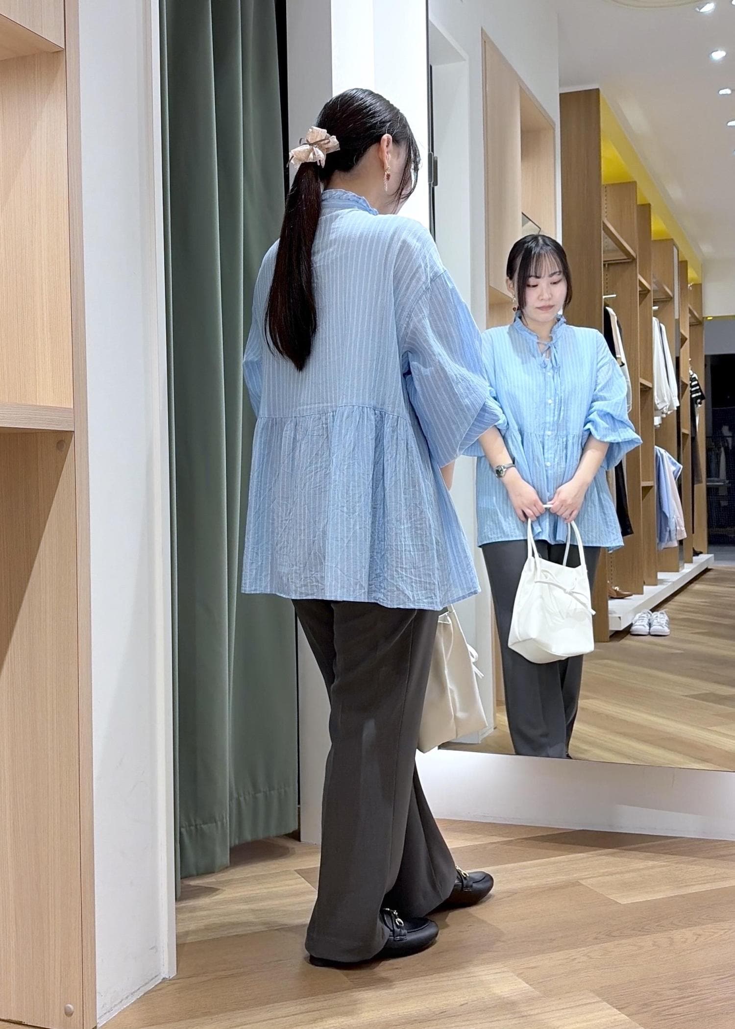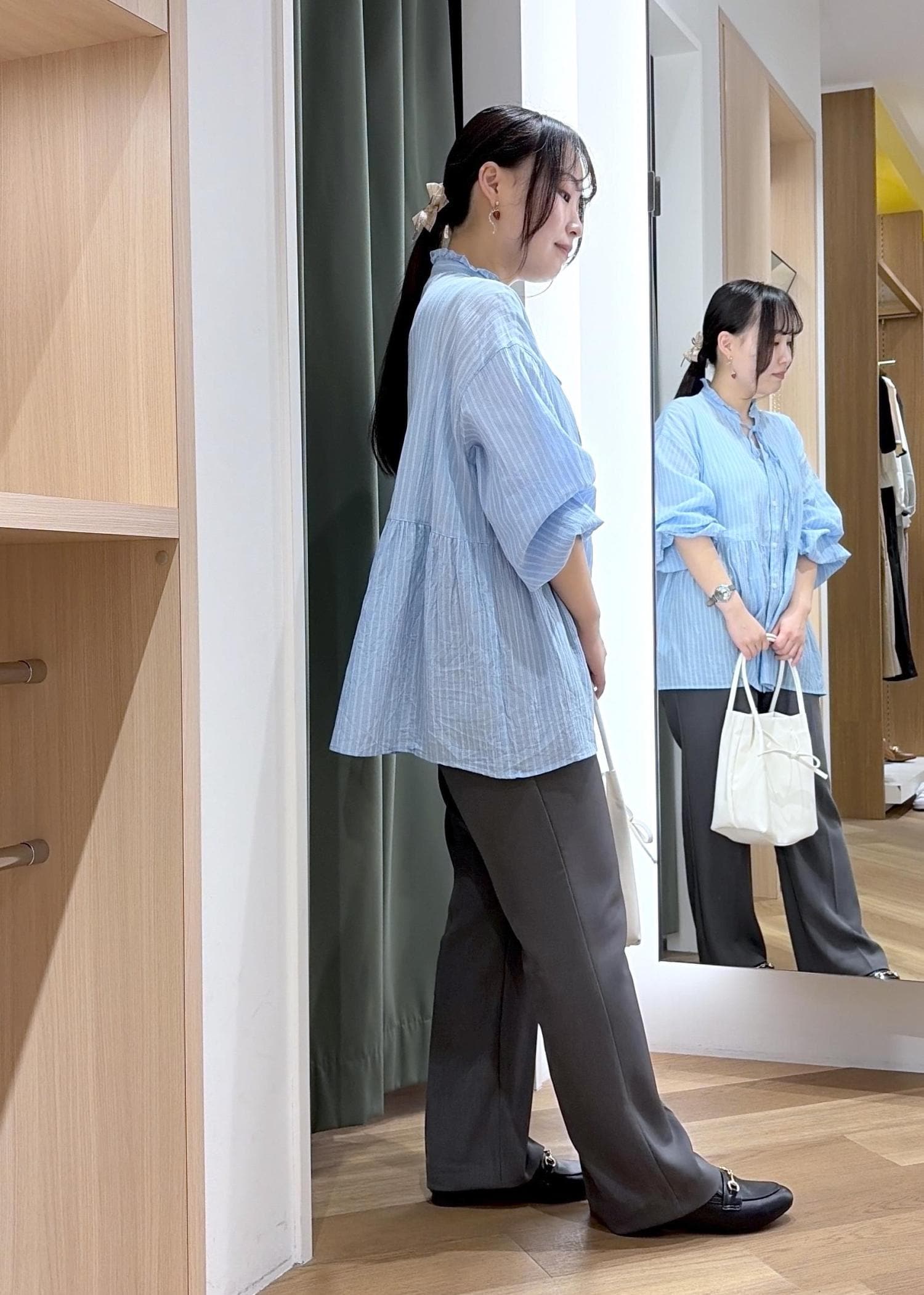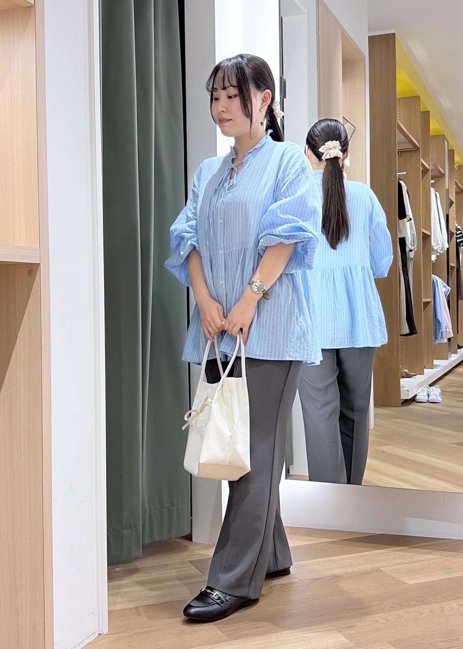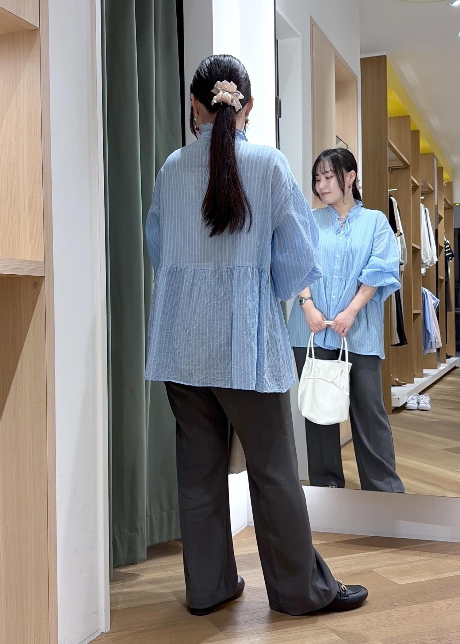 ROPÉ PICNICお着軽シャツシリーズ フリルカラーシアーペプラムブラウス/接触冷感・通気性ブルー系 / F¥4,994レビュー一枚着はもちろん、羽織としても着用できます◎