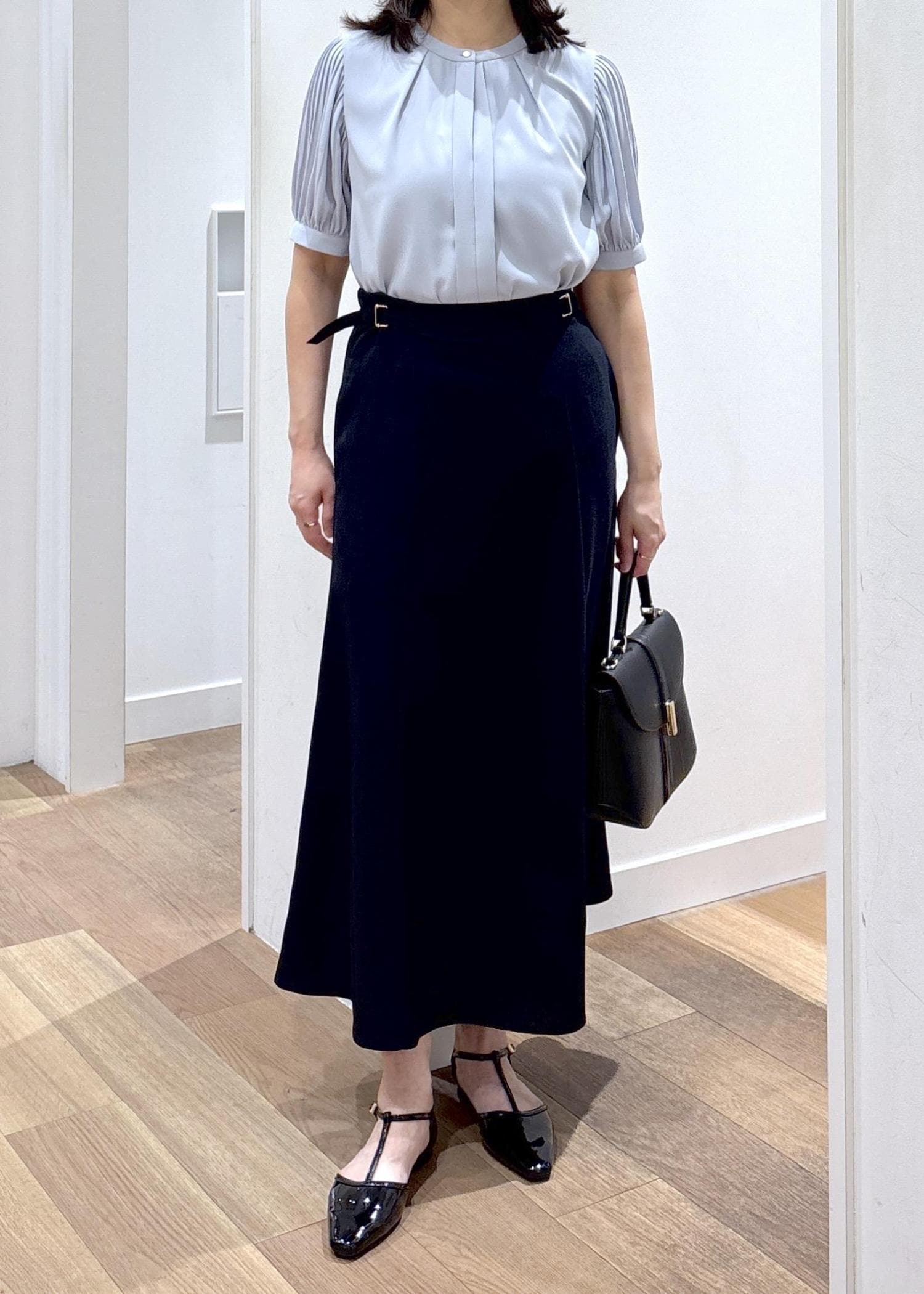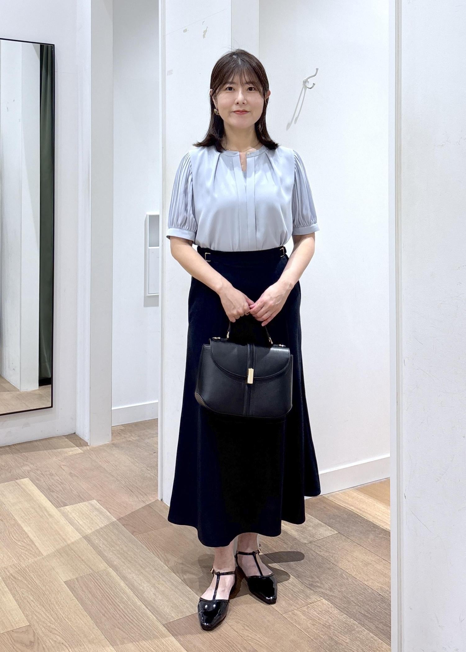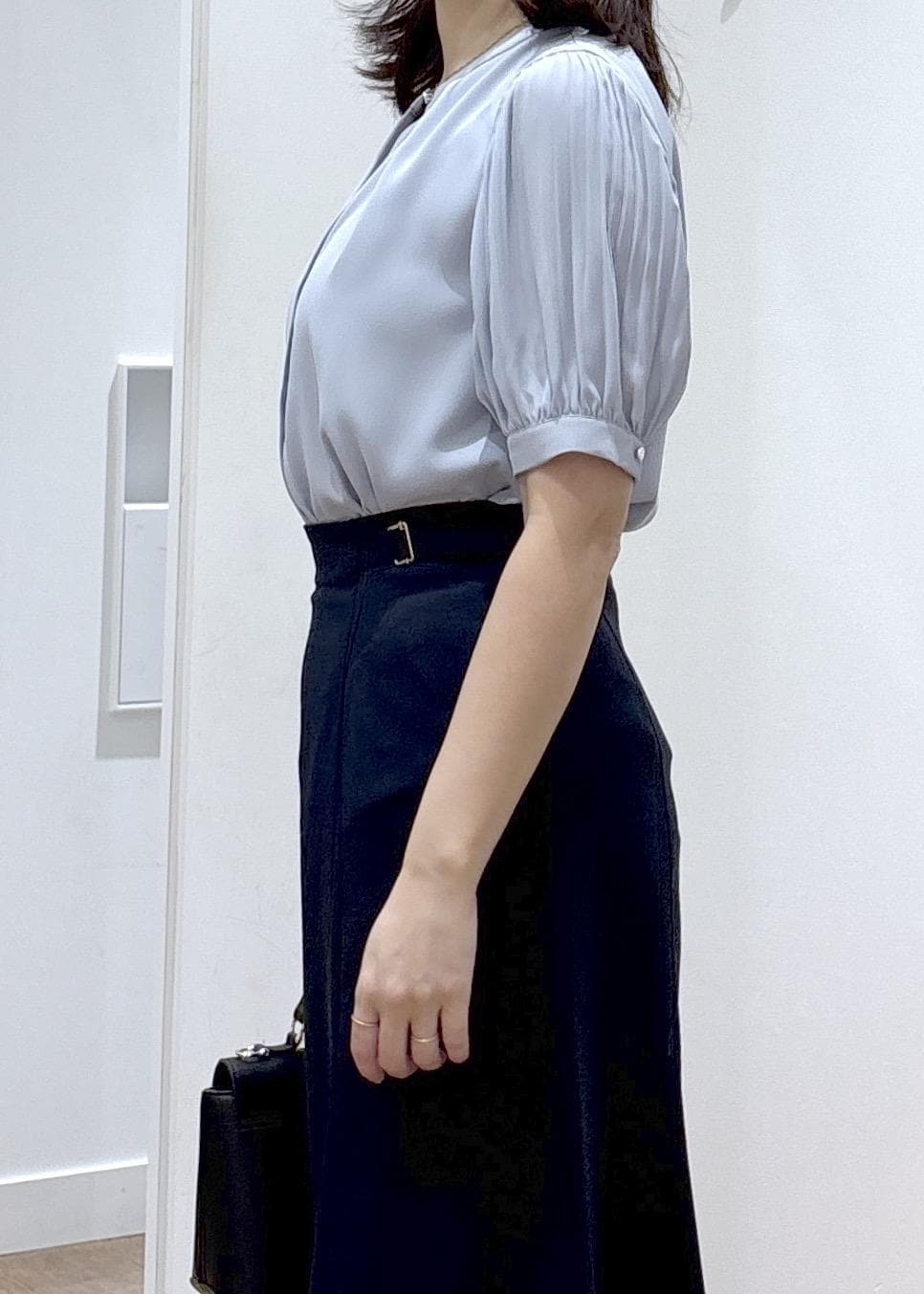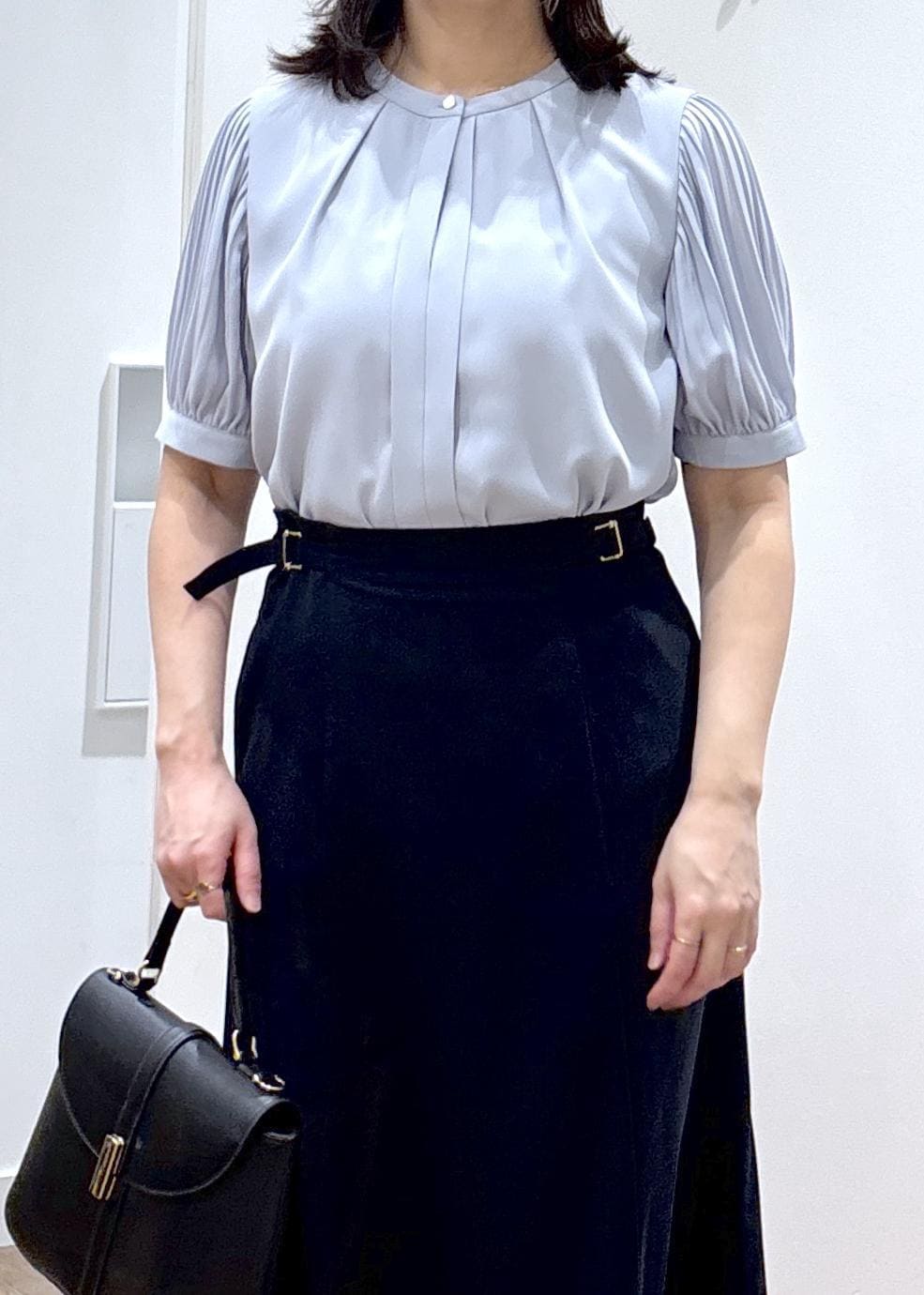 ROPÉ PICNIC袖プリーツハーフスリーブブラウスサックス / F¥4,994レビュー袖が短すぎず、プリーツデザインでゆとりもあるので二の腕をカバーしてくれます。首周りがすっきりした方がお好みの方は、ボタンを外しての着用もできるデザインです。