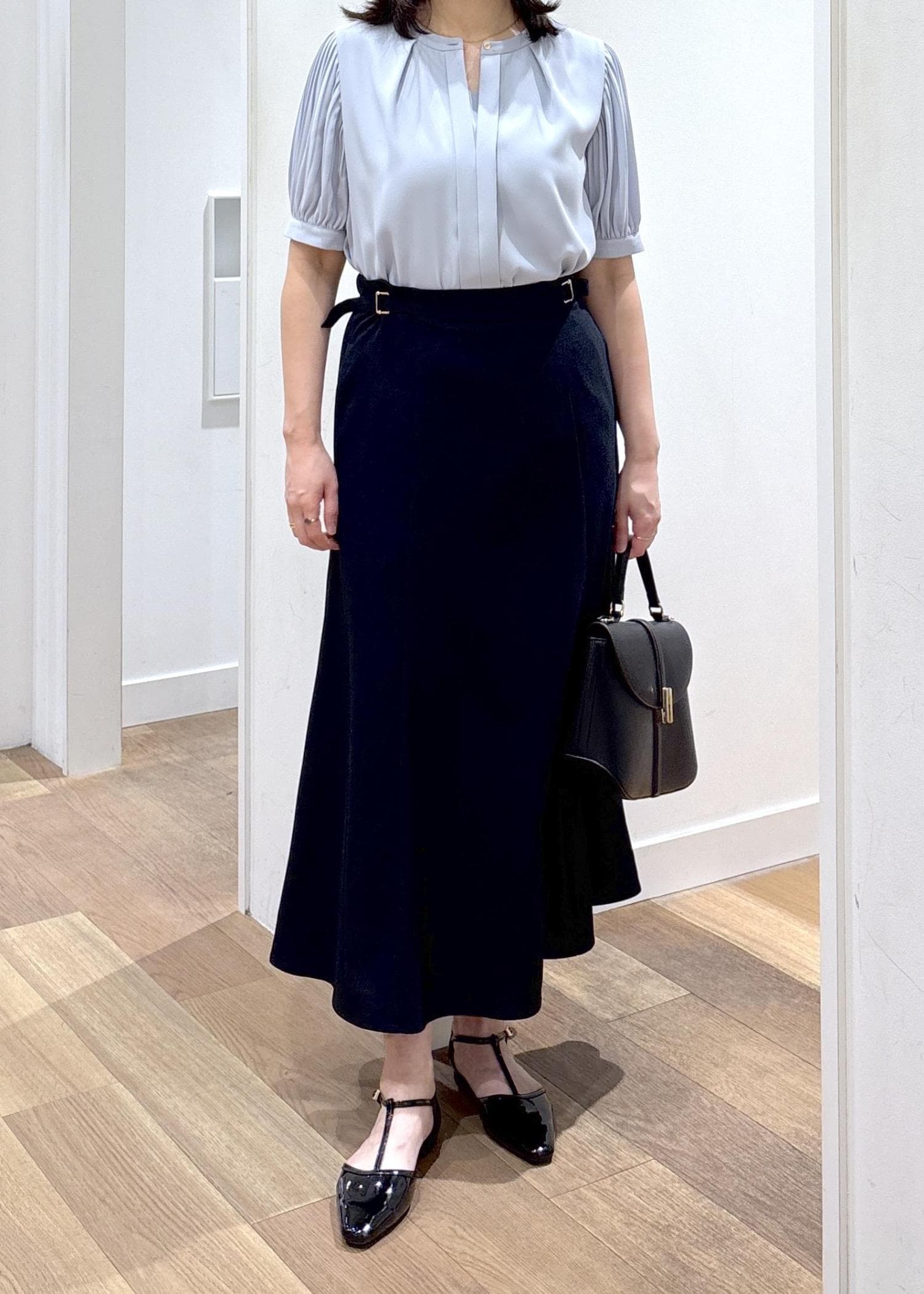 ROPÉ PICNICカナパ サイドベルトマーメイドスカート/セットアップ対応・UV・抗菌防臭・接触冷感ネイビー / L¥5,995レビュー物によってMかLサイズを着用しています。腰回りが張っているのでLサイズの方がジャストでした。162㎝で足首がやや出るくらいの着丈でした。