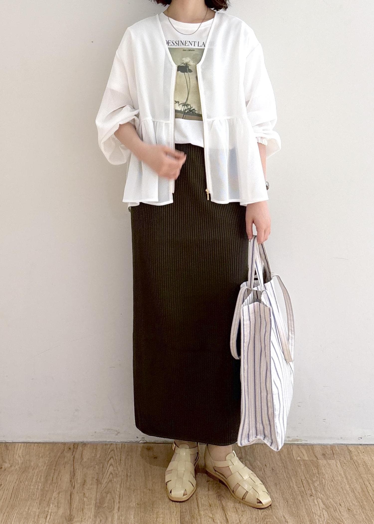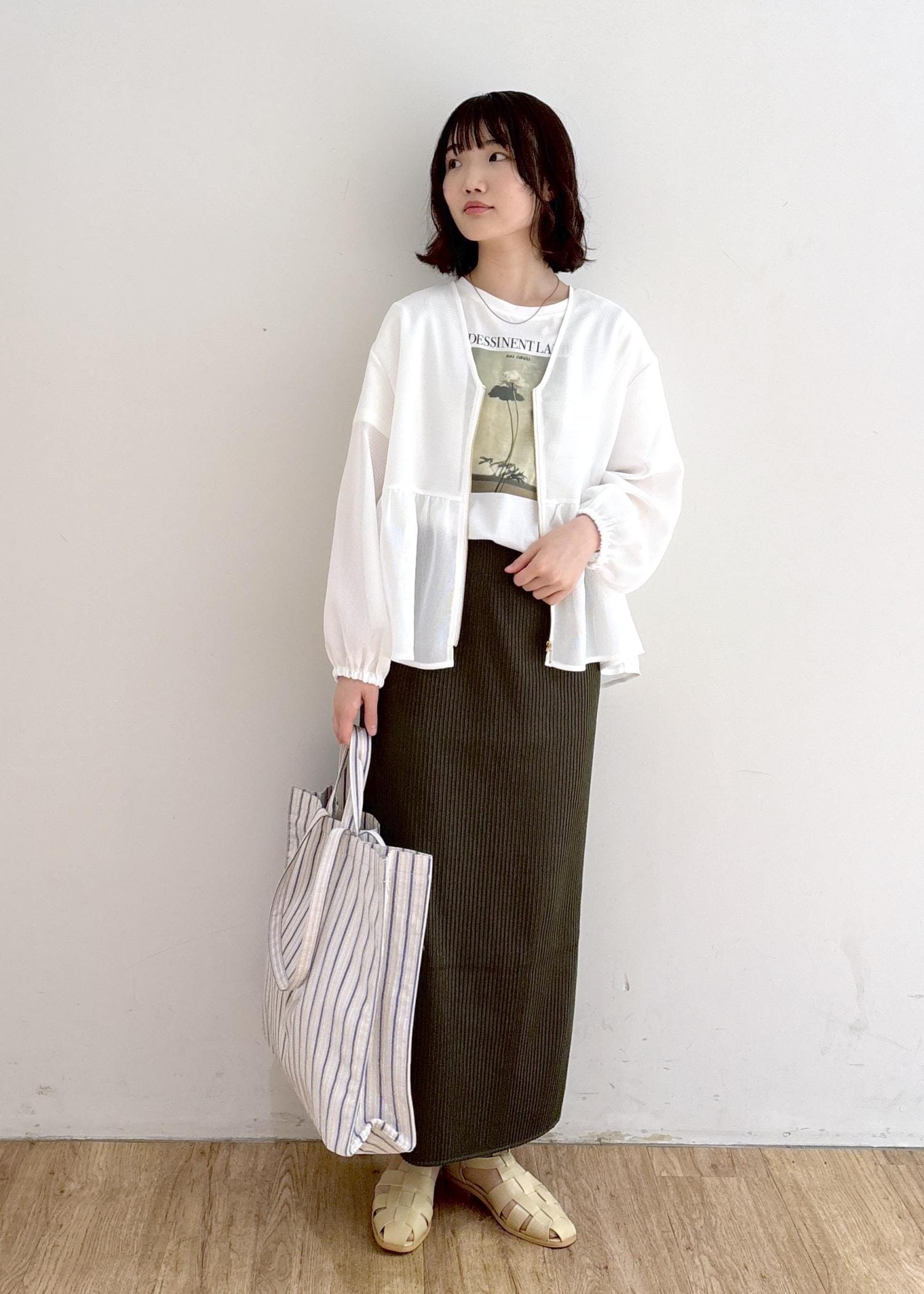 ・ペプラムデザインのライトアウターは体型カバーに◎