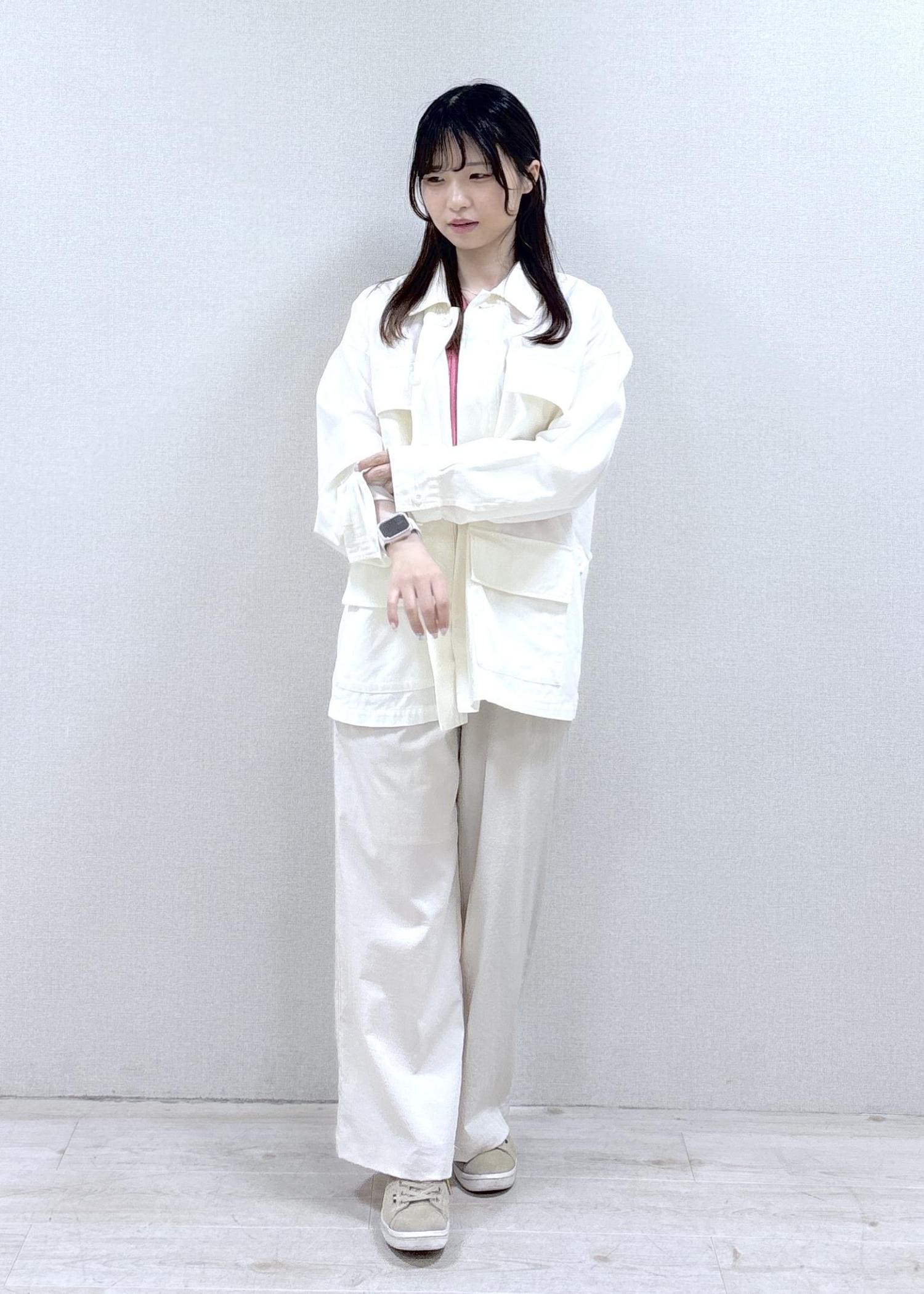 ROPÉ PICNICミリタリーブルゾンオフホワイト / F¥8,492レビュー151cmの私だとおしりまで隠れるような丈感で、インナーを選ばずに着用できます。全体的にゆったりしたサイズ感で、カジュアルライクに楽に羽織ることができます。キレイめなスカートを合わせてフェミニンとカジュアルと両方の雰囲気を演出するコーディネートも素敵だと思います。