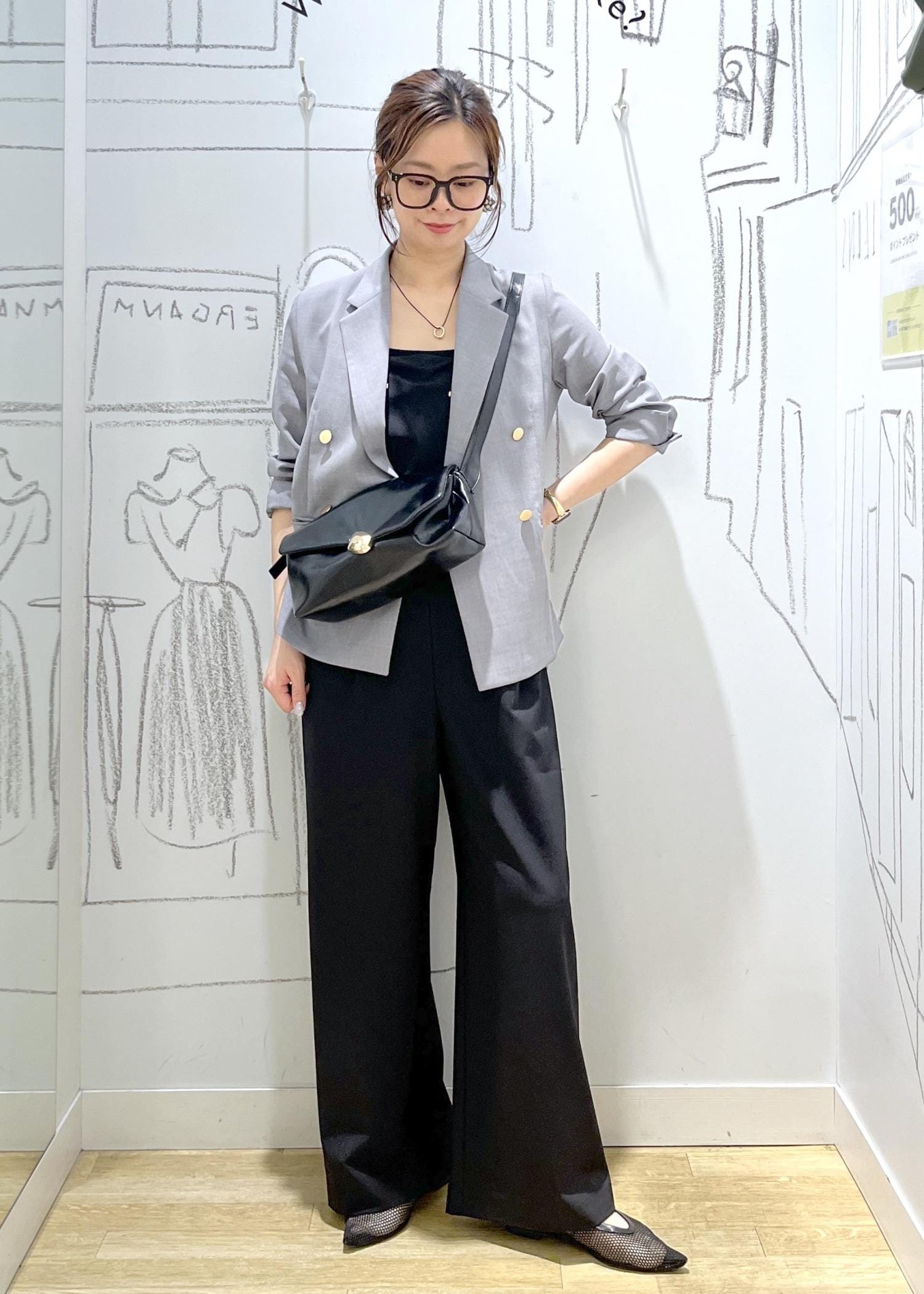 ワイドシルエットでリラックス感を出しつつ、ジャケットで引き締めて大人っぽく。