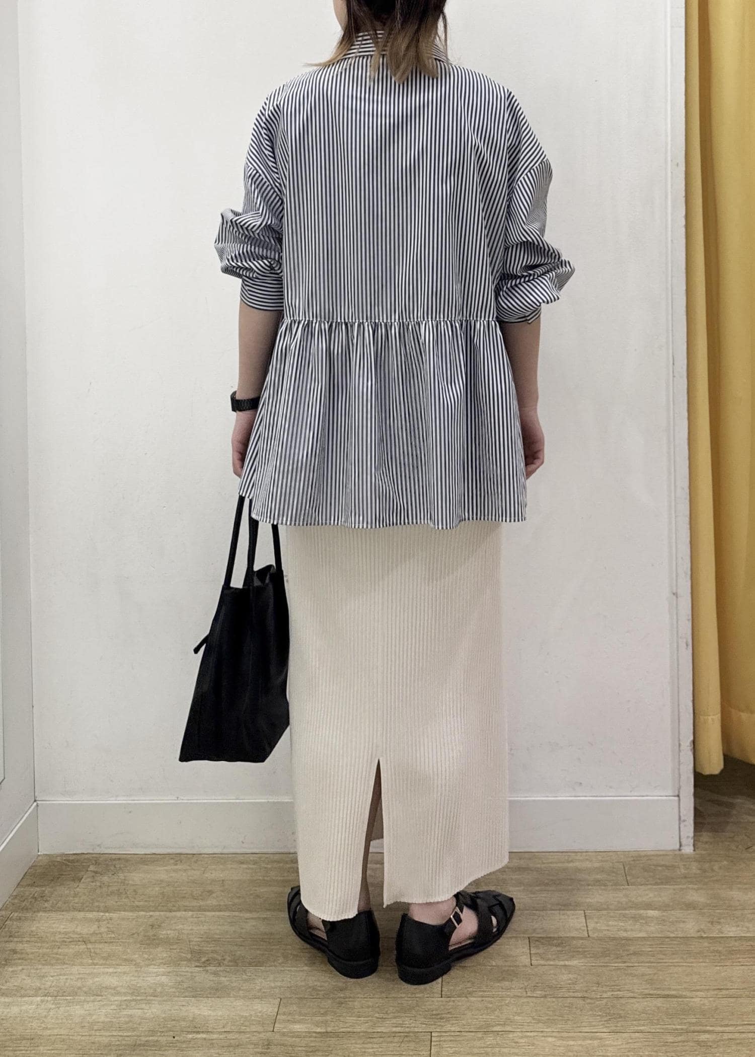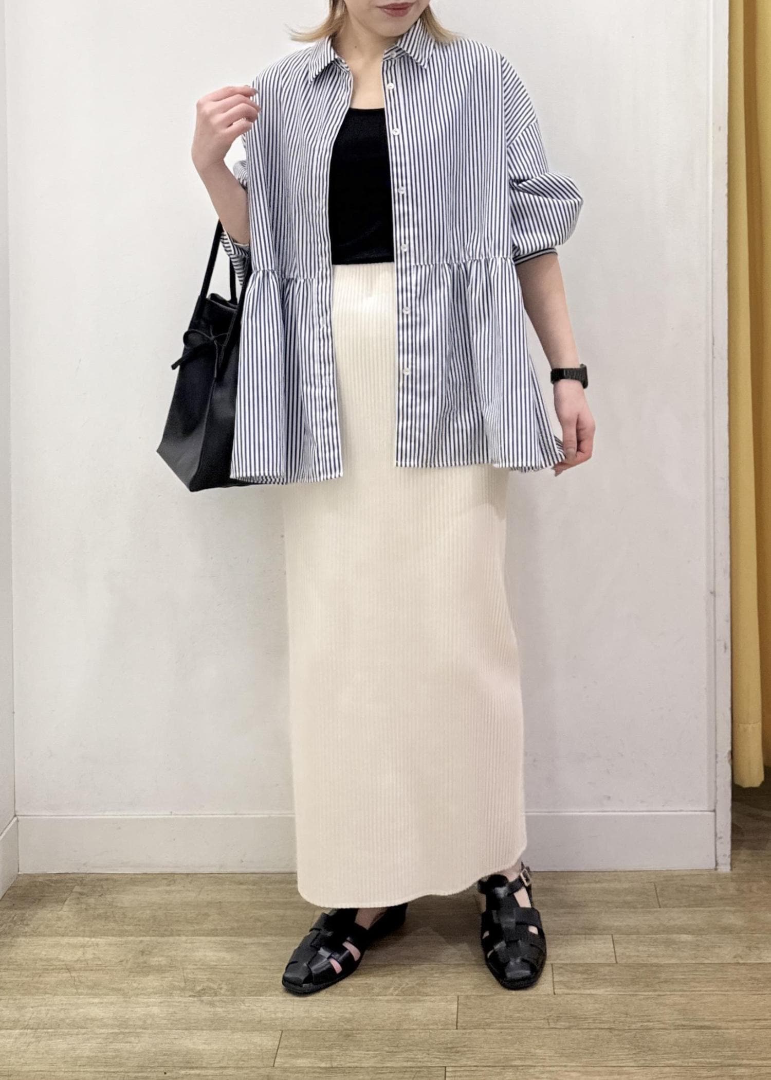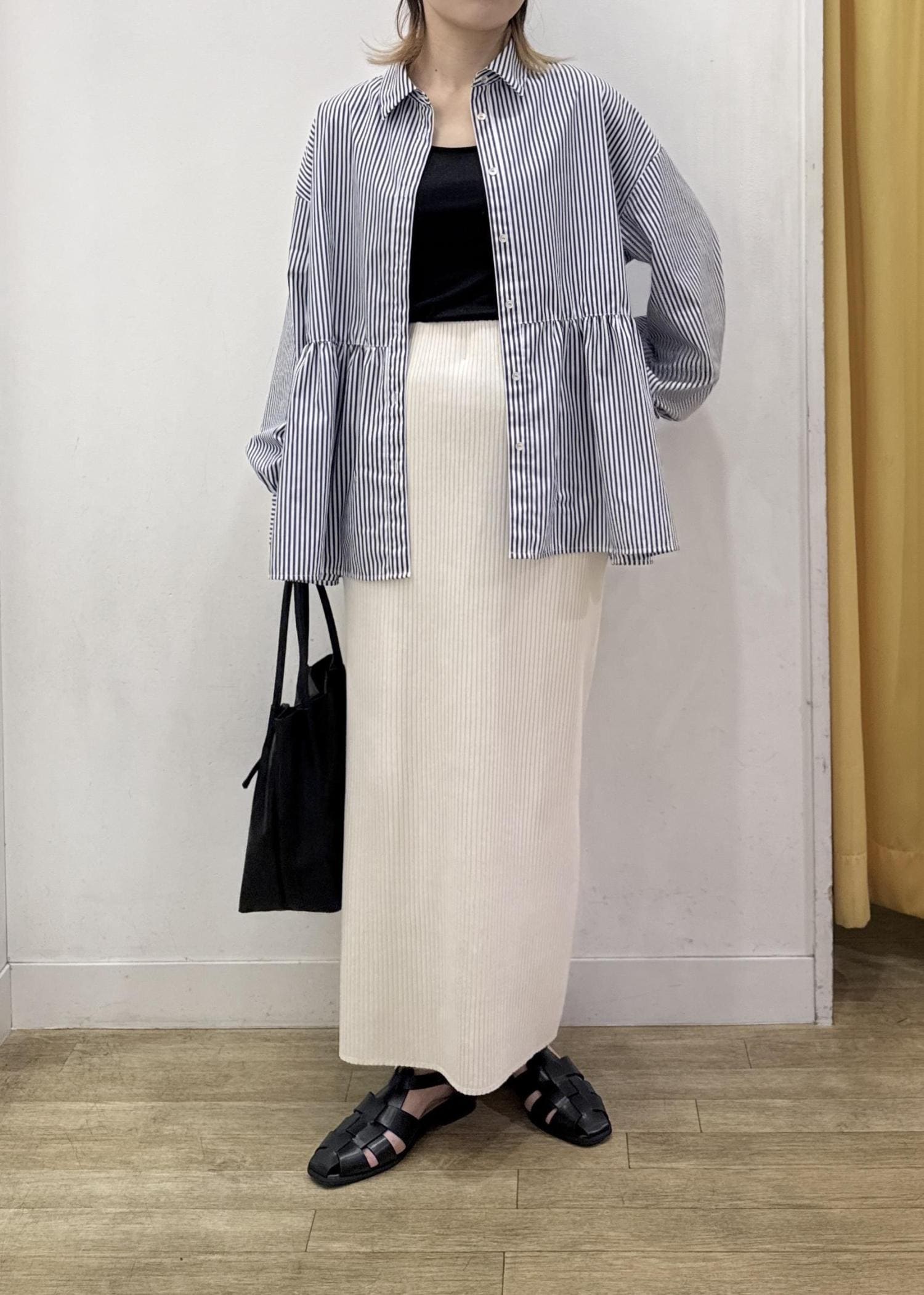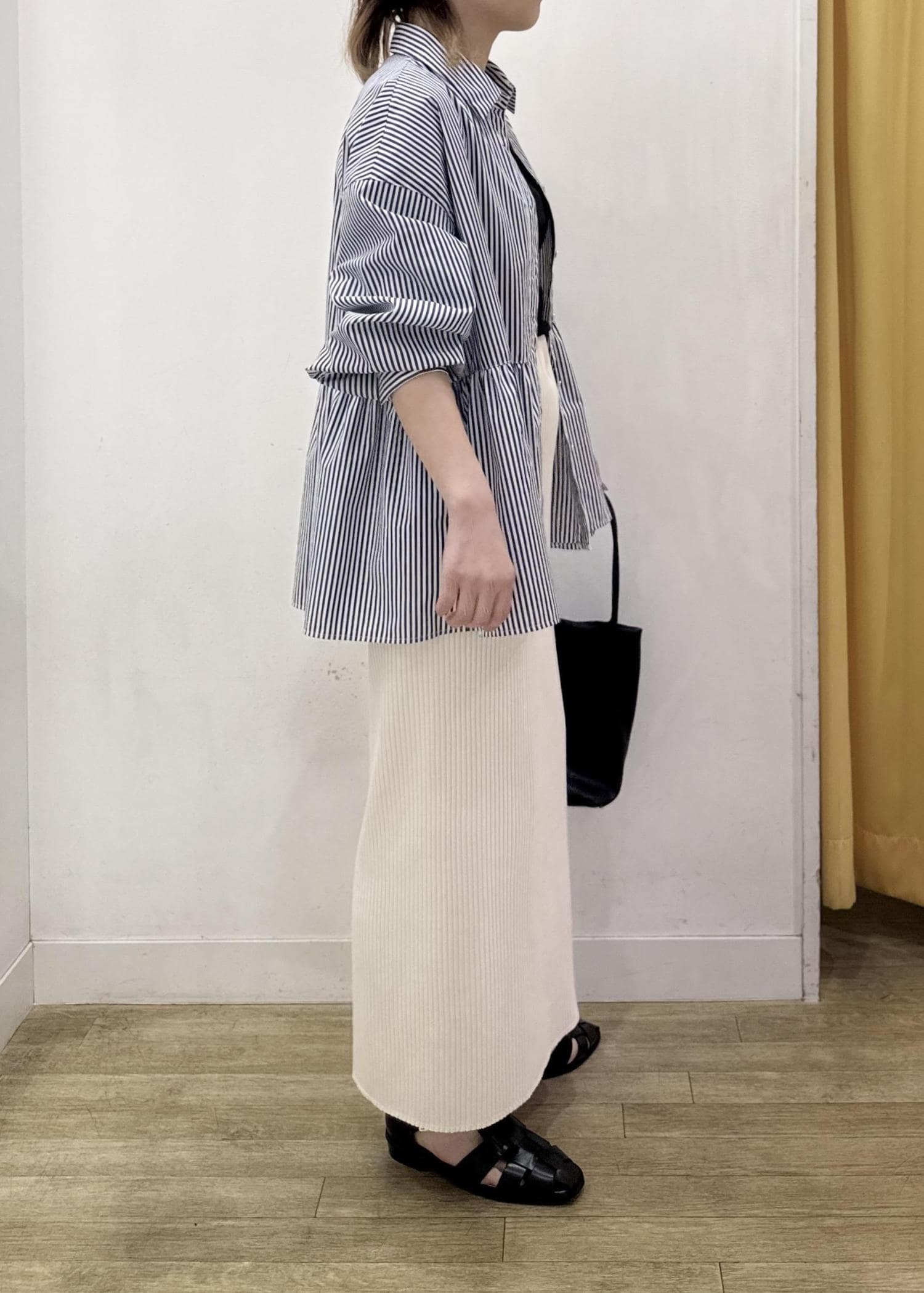 ペプラムシルエットのシャツは羽織としてゆるっと!