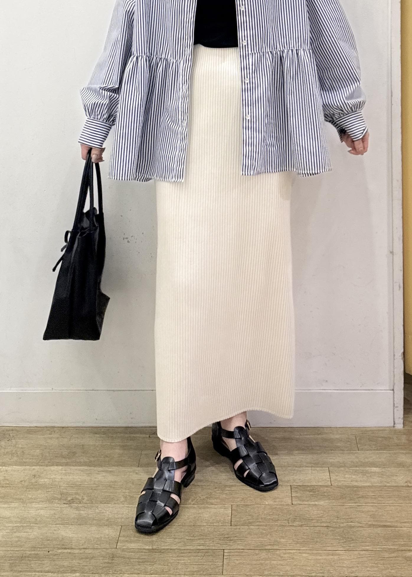 アイラインシルエットのスッキリスカートと合わせてメリハリのある、大人カジュアルコーディネートに☺︎