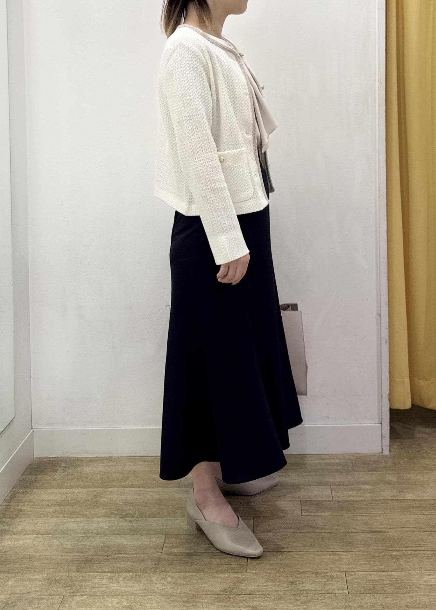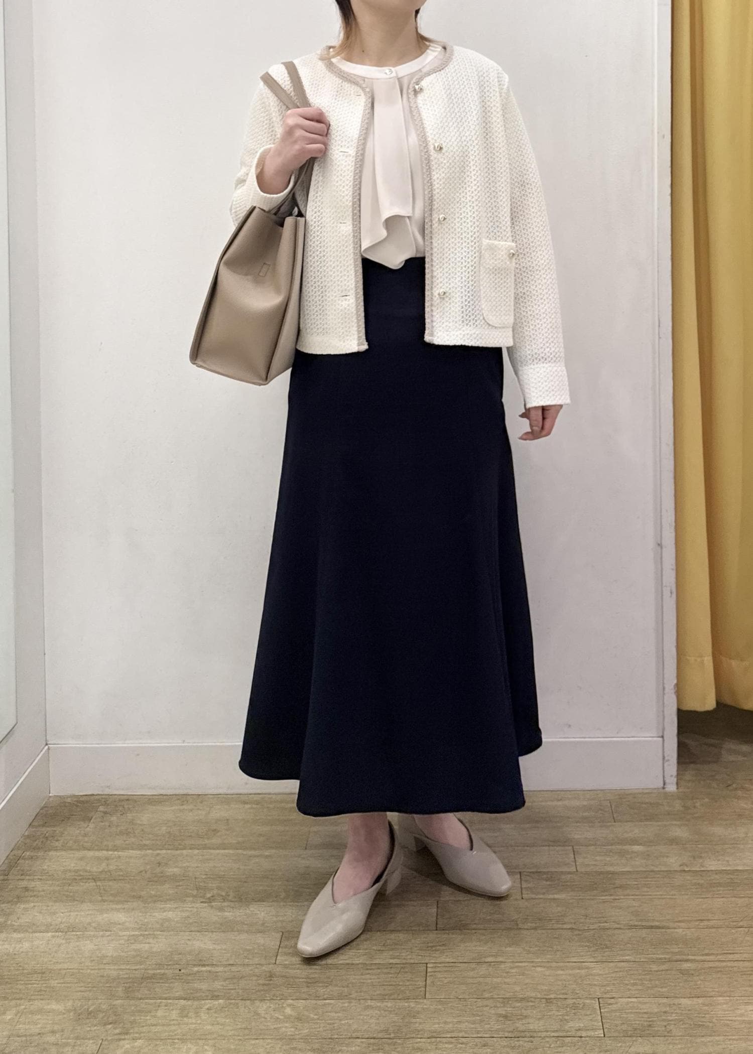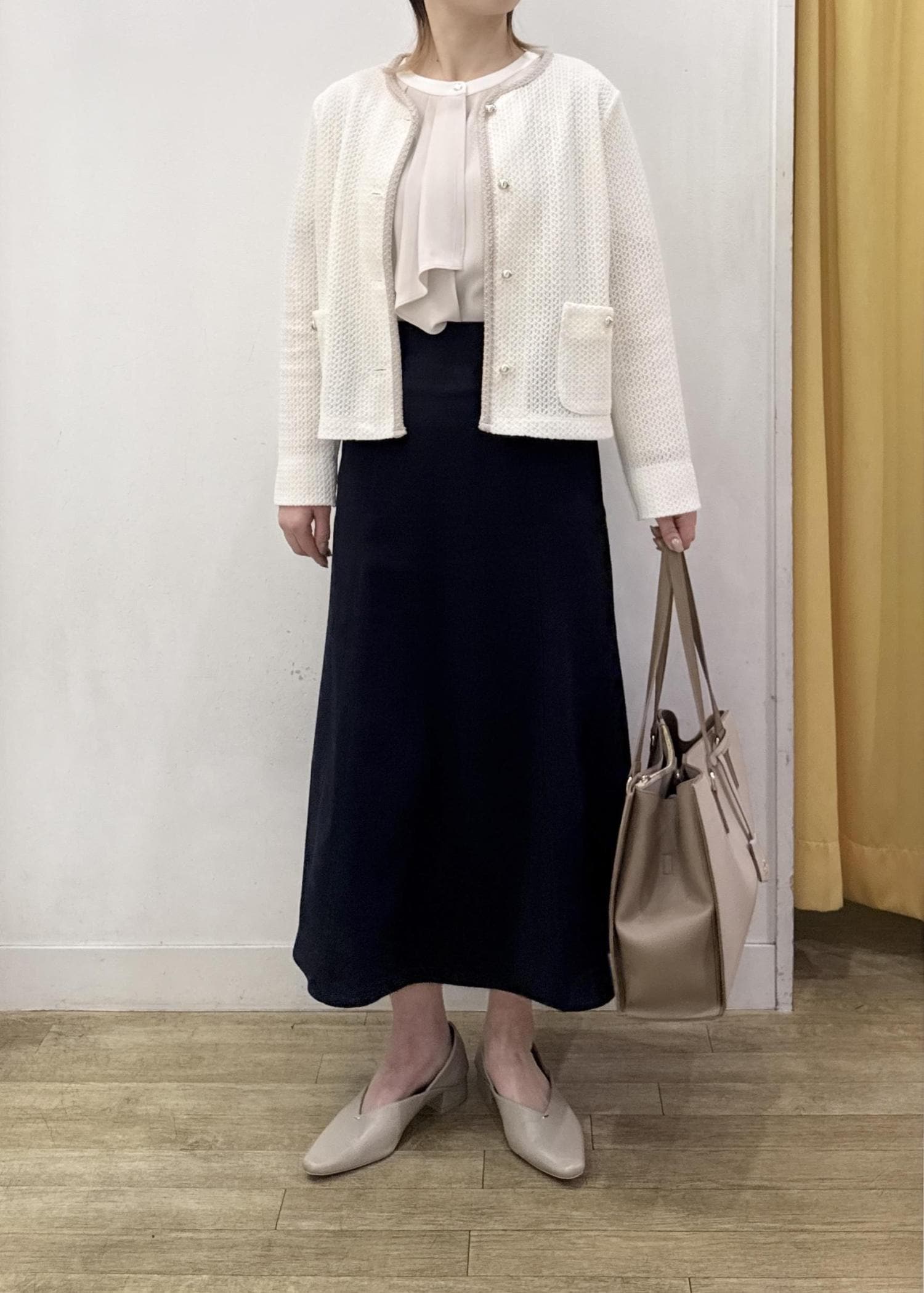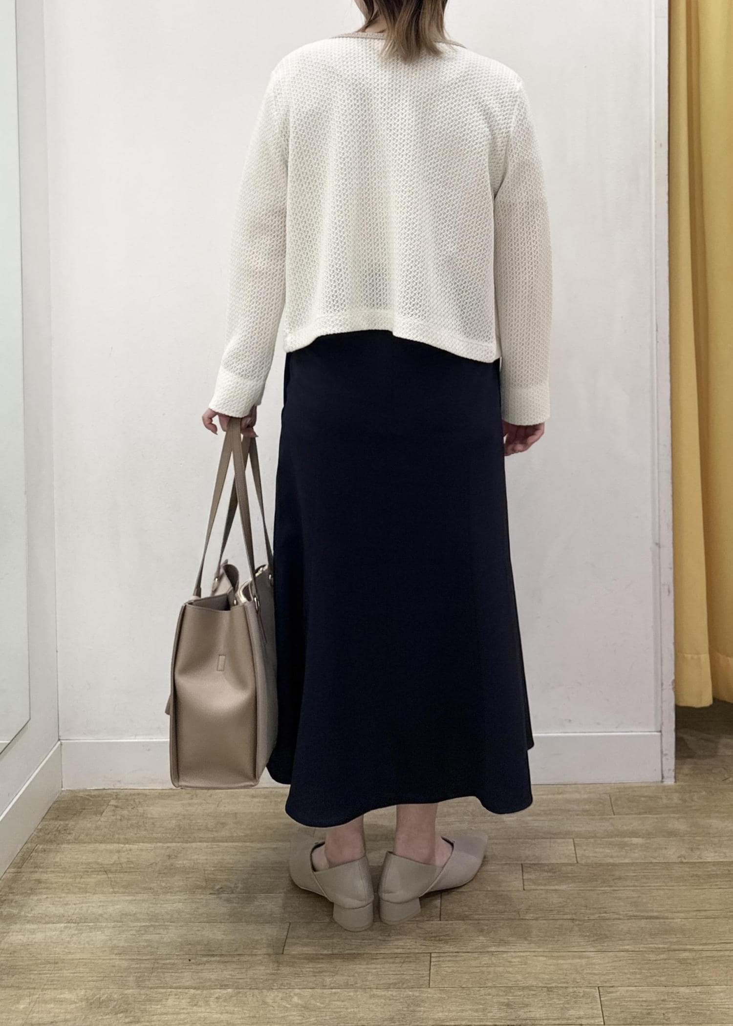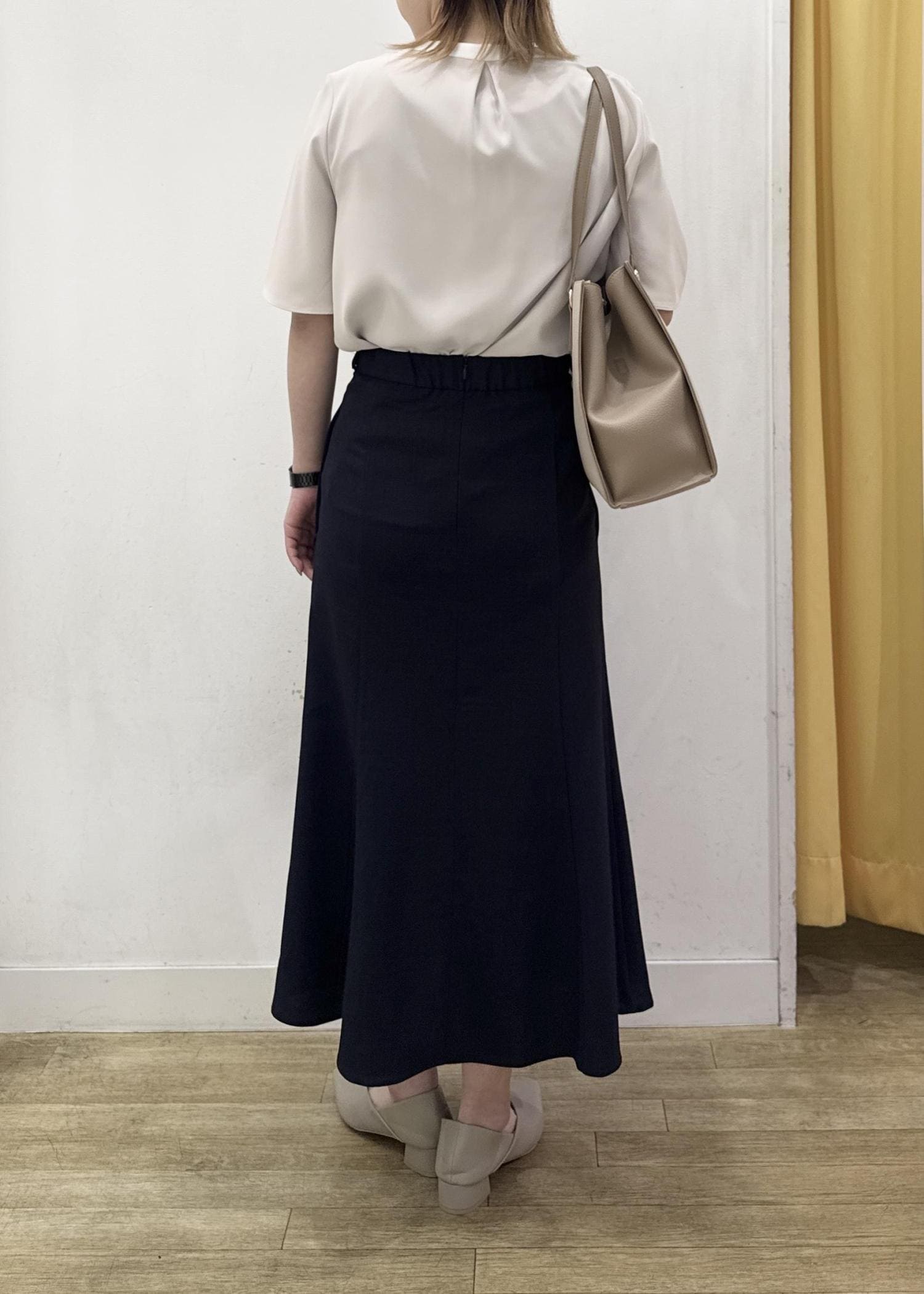サラッとした薄手の素材感で春から秋まで使えるオンオフ兼用のスカートです。 -