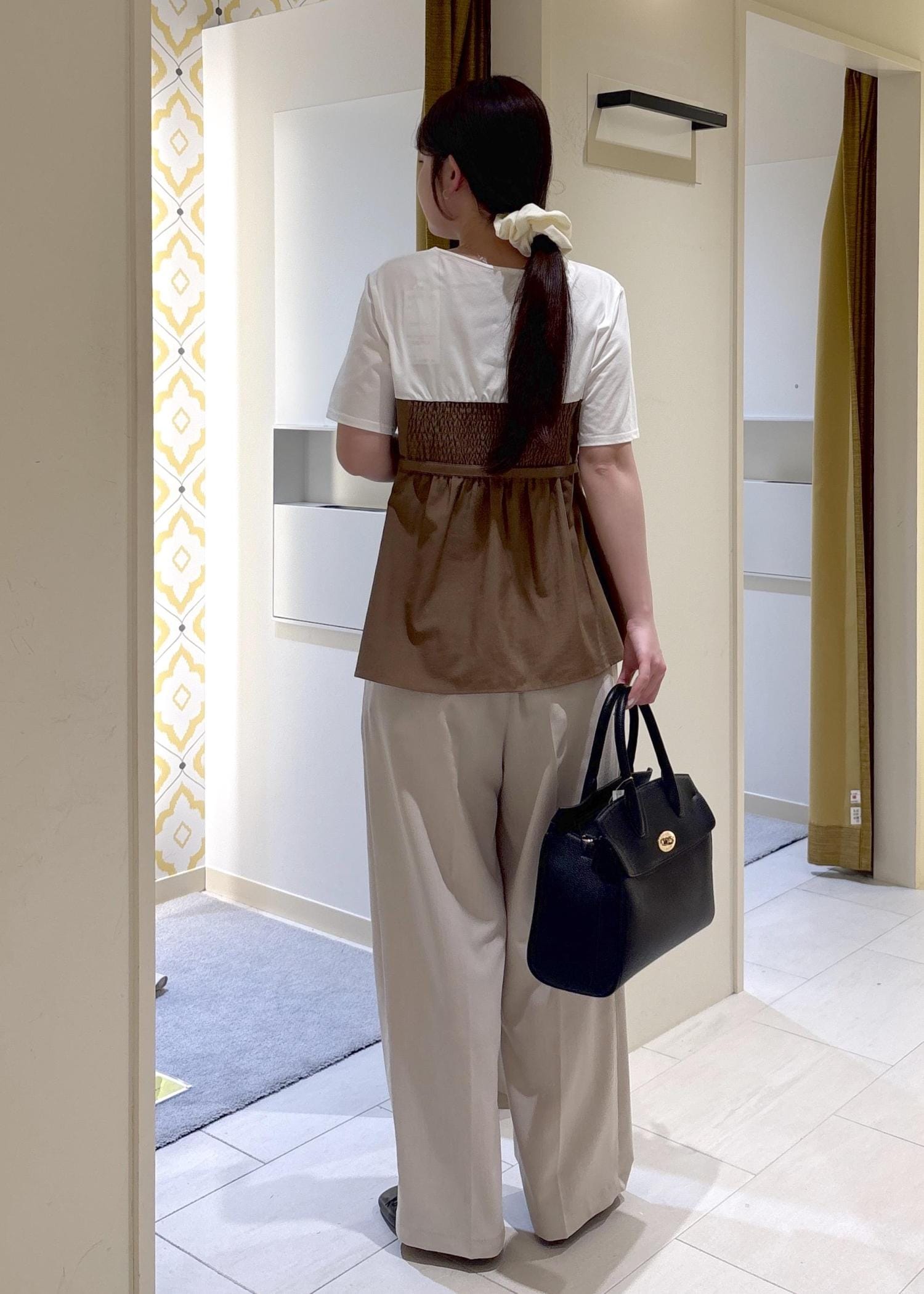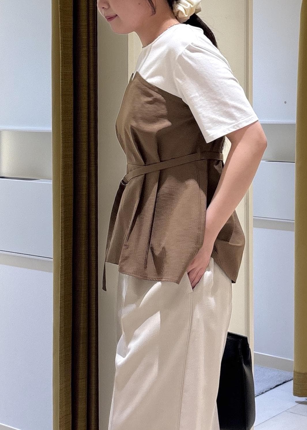 1枚で様見えするドッキングカットソーでキレイめ通勤コーデにしてみました。