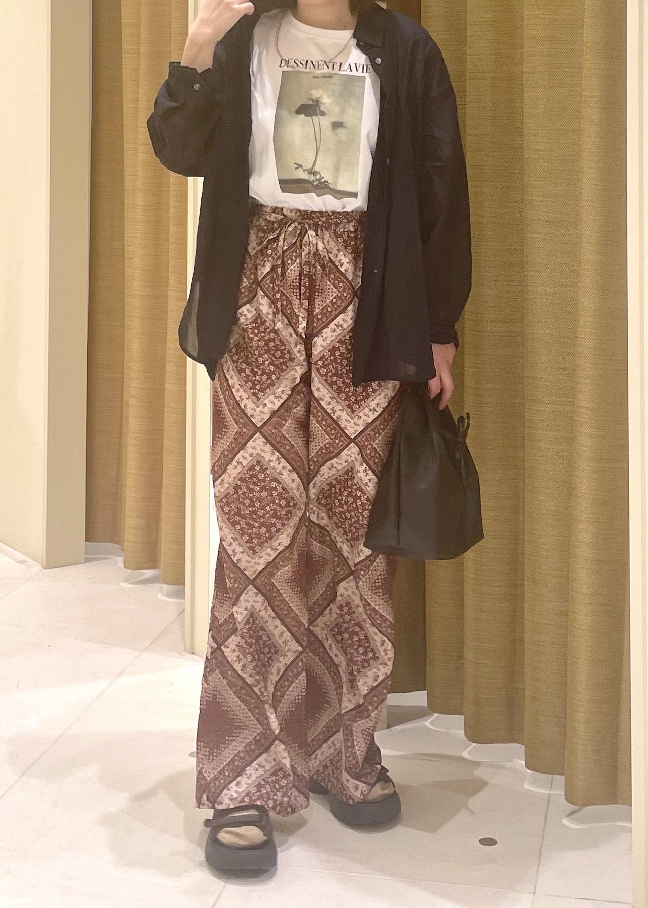 2BUY10%OFFROPÉ PICNICスカーフ柄イージーパンツブラウン系 / S¥6,996レビュー薄手でサラッとした履き心地で夏場も快適です。丈は長めですが、ウエストを紐で絞れるのでしっかり止めれば大丈夫でした。