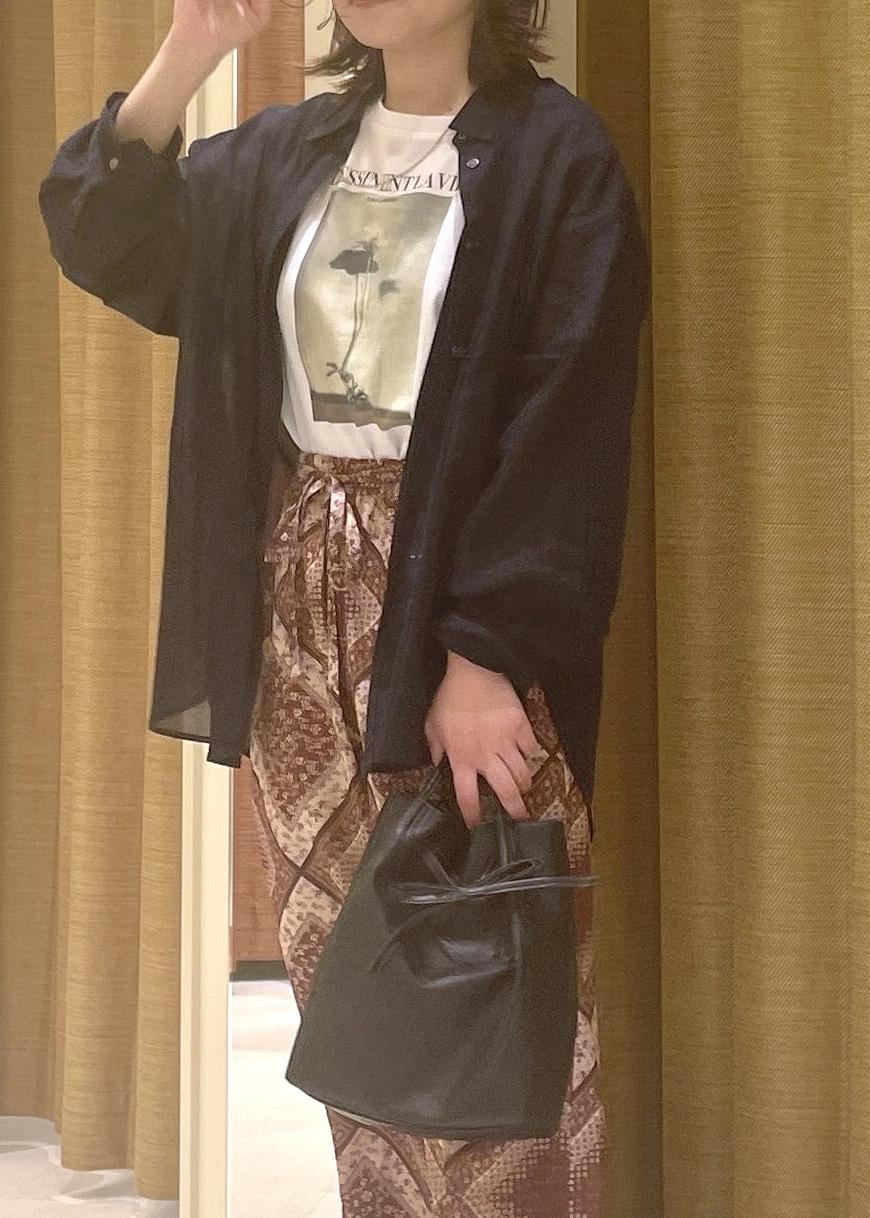 プリントTシャツもシャツのお陰でパンツとごちゃごちゃせず引き締まってまとまります。